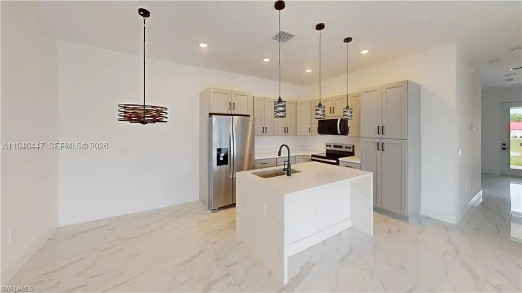 New construction | 4 bedrooms | 2 full bathrooms | 1 half bathroom | 1-car garage | High ceilings | Recessed lighting | 8-foot doors | Tile flooring | Kitchen with granite countertops | Stainless steel appliances | Impact-resistant windows and doors | City water and sewer | No HOA fees.