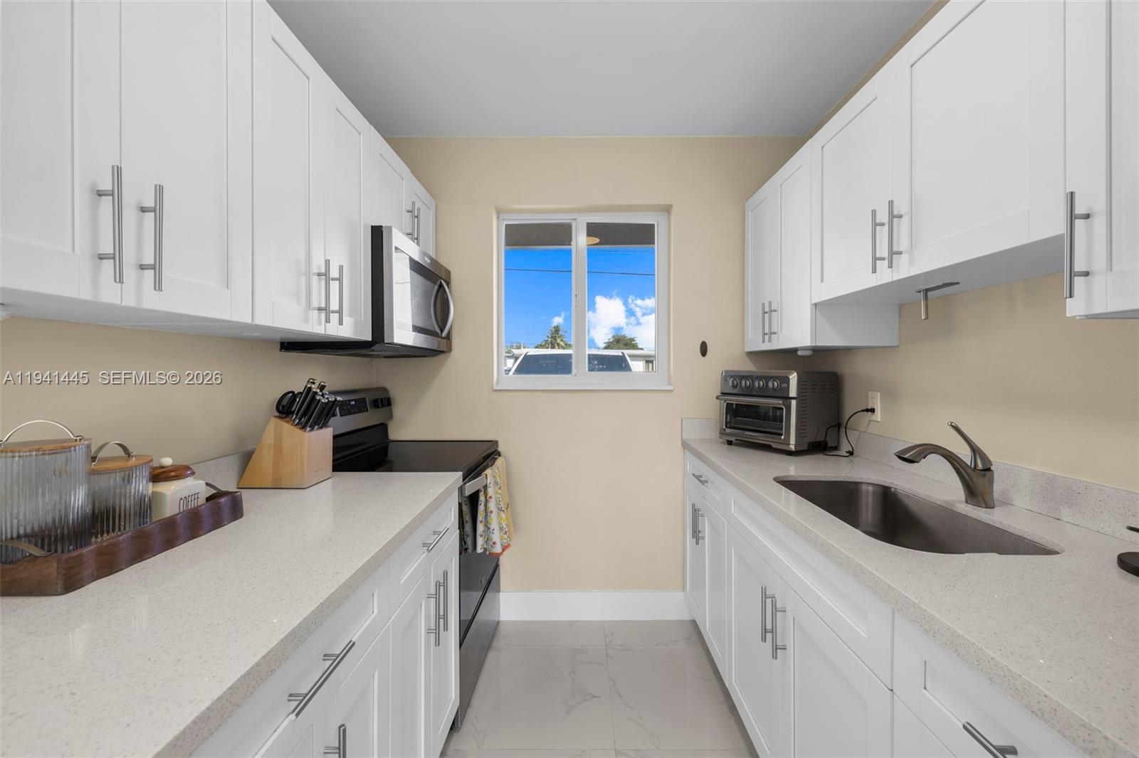 Fully remodeled 3 bedroom, 1 bathroom home located on Westwood Lake. Features tile flooring, custom kitchen cabinetry, quartz countertops, stainless steel appliances, washer & dryer, renovated bathroom/shower and hurricane impact windows. Home also offers 1 carport, spacious backyard with lake view and several parking places to park. Located in prime location, near shopping plazas and great schools!