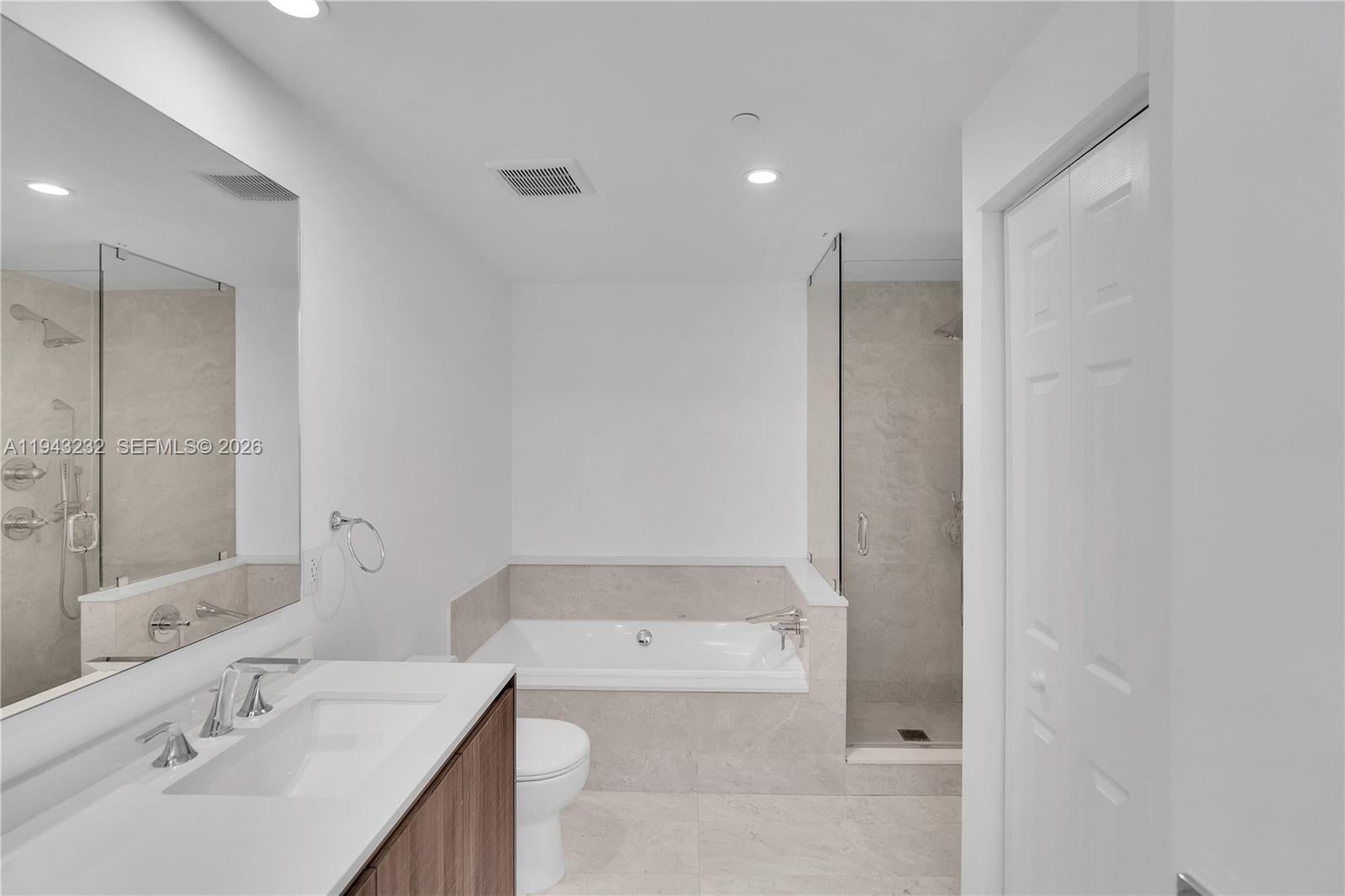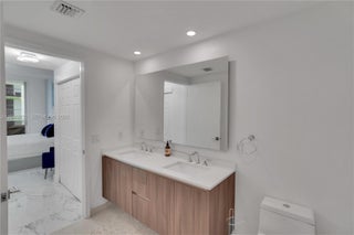 Spacious 1-bedroom plus den, 2-bath residence on the 17th floor showcasing stunning bay views. This thoughtfully designed home features an open-concept layout with floor-to-ceiling windows that flood the space with natural light, a sleek modern kitchen, and expansive 24” x 24” Carrera porcelain flooring throughout the entire unit, including the balcony, creating seamless indoor-outdoor living. The residence has been extensively upgraded with all-new electrical, smart WiFi light switches and outlets, new lighting throughout, brand-new doors, and custom built-in closets with floor-to-ceiling mirrors. Both bathrooms feature new glass shower doors, and a Sonos sound system enhances the living experience, making the home ideal for both everyday comfort and entertaining. Located in a full-service luxury building offering resort-style amenities including multiple pools, a state-of-the-art fitness center, yoga studio, theater, and more. Prime Edgewater location just steps from Margaret Pace Park and minutes from Wynwood, Midtown, Brickell, and the Design District.