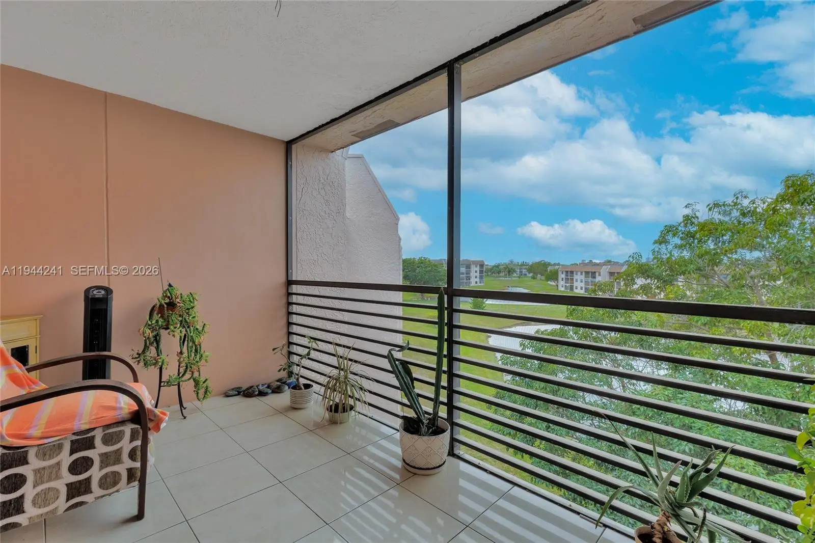 Waterfront/golf course view from your Sunrise Lakes Phase 4 Condo. Screened in room is included in this Large split 2 bedroom/2 baths close to 1400 sq feet. Owner has completely remodeled kitchen and updated bathrooms. Just enjoy playing golf and swimming in heated pools. Complete clubhouse, shows, entertainment, heated pool, gym and much. more. Shopping, bus close by. Elevator next to unit. Washer and Dryer has it's own room and updated. Actual Total sq footage 1370