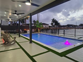 Beautifully updated 4-bedroom, 3-bath modern residence offering porcelain flooring, soaring ceilings, and an expansive open-concept kitchen with high-end finishes. Features include a two-car garage with EV charging, covered terrace, contemporary pool with LED lighting, and serene waterfront views. Move-in ready with outstanding curb appeal, located in a secure, non-HOA community. A truly exceptional opportunity.