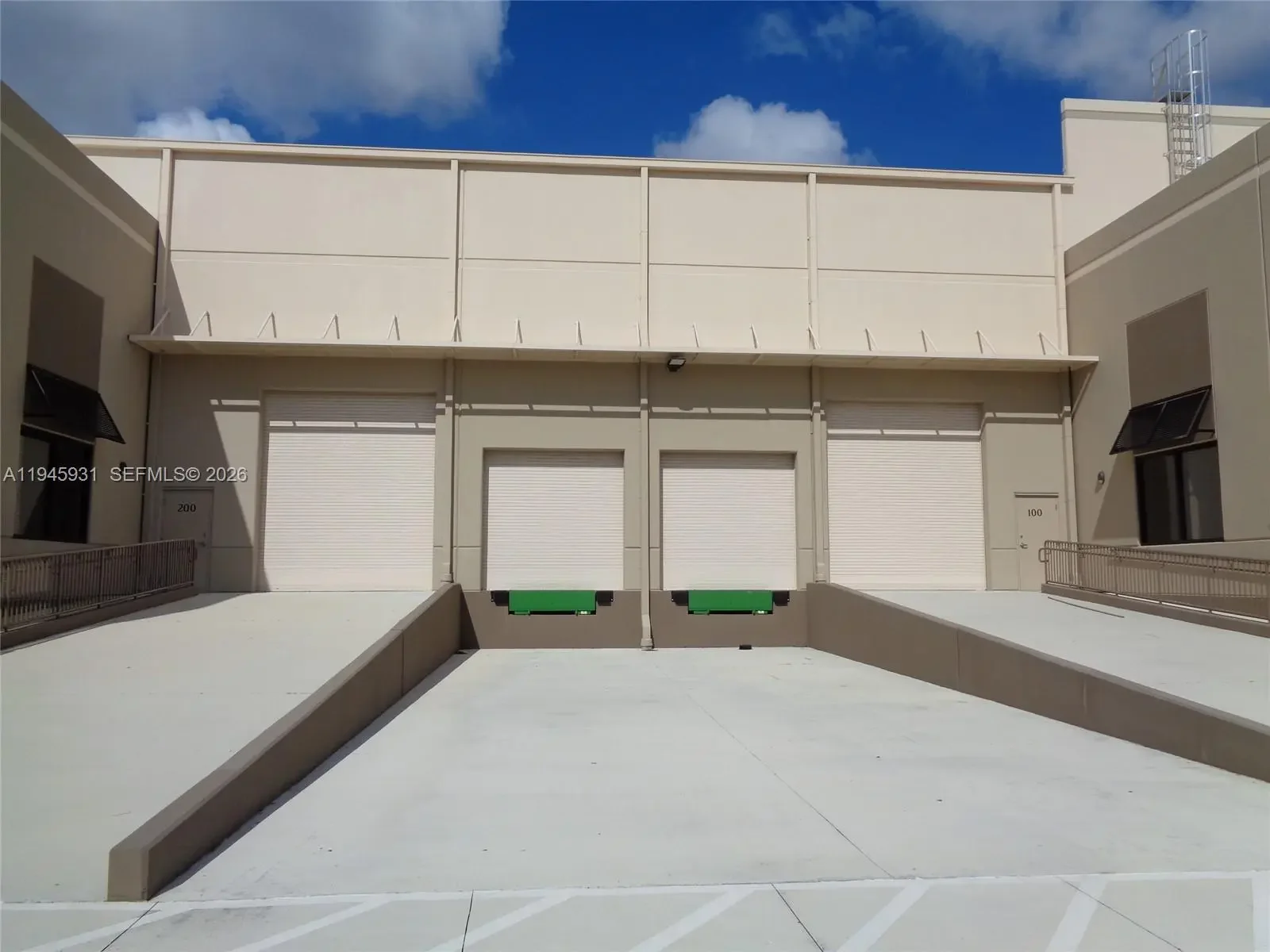 Office/warehouse for lease in Sunrise Industrial Park! This unit is unique in that it includes a dock-high door, a roll-up door with a ramp, and Power 277/480 Volt 3 Phase electric. Ceiling height 32’ clear. Layout: 600 +/- SQFT office / 4600 +/- SQFT warehouse / 800 +/- SQFT courtyard. Additional features include hurricane impact glass windows and doors, tilt-up concrete walls, ESFR sprinklers, and high security with gate and cameras. Zoning is I-1 for an array of businesses. Located right at the intersection of the Sawgrass Expressway and Hiatus Road–this area is easily accessible. Contact today for more information!