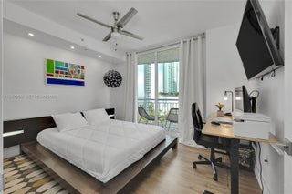 Fully renovated 3-bedroom, 2-bath corner residence with over 1,300 sq. ft. of thoughtfully designed living space. Enjoy two private balconies, including an expansive wraparound terrace—perfect for entertaining or unwinding. The home features a desirable split-bedroom layout, a spacious walk-in closet, and custom closet systems in the bedrooms. Both bathrooms are finished with elegant European fixtures and vanities, complemented by large-format stone on the walls and floors. The modern kitchen is beautifully appointed with sleek stone countertops and matching backsplash, minimalist wood cabinetry, and a clean, functional layout. Additional highlights include impact windows, in-unit washer/dryer, and solid wood doors throughout. Two assigned covered parking spaces complete this exceptional offering.