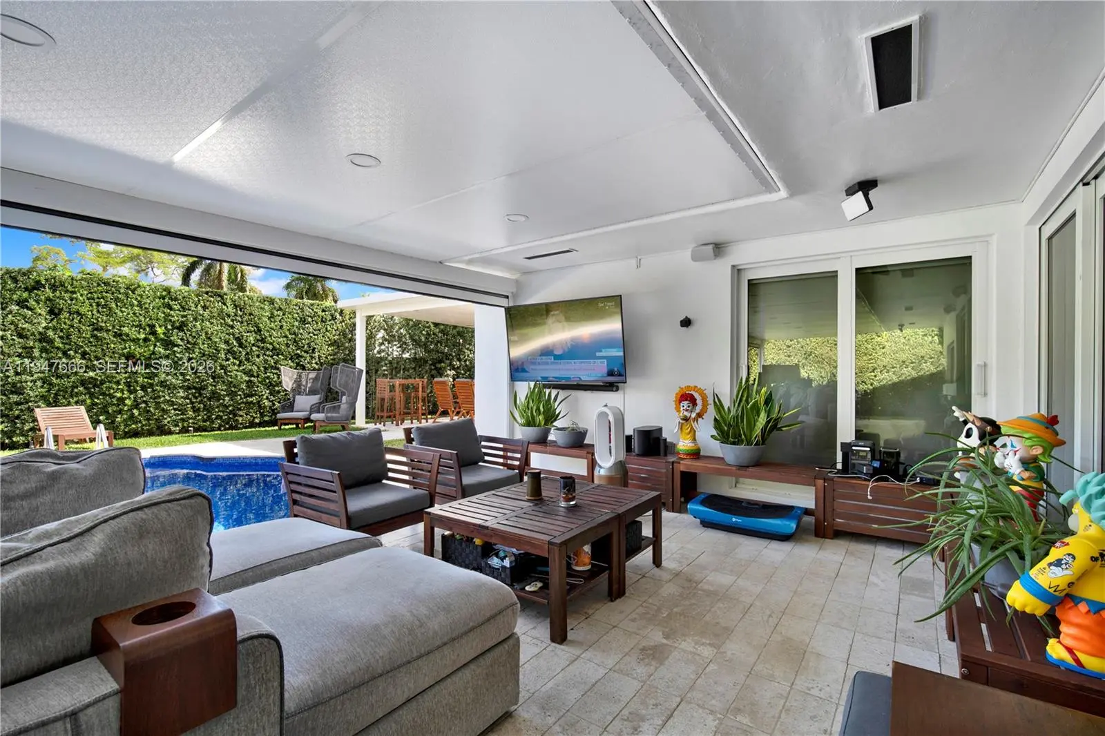 Stunning fully renovated & SMART HOME residence in the desirable Highland Gardens neighborhood. 3 Bedroom, 2 Bath, offering extensive upgrades and high-end finishes throughout. This exceptional home features porcelain flooring, a fully integrated smart electrical and lighting system, brand-new smart-enabled appliances, and a new energy-efficient smart A/C system for minimal energy consumption and exceptionally low electric bills. The bright open-concept layout showcases modern luxury finishes, hurricane-impact windows, and custom-designed built-in libraries. All bedrooms are thoughtfully designed, including a spacious fully remodeled primary suite with designer closets and an expansive updated bathroom. The upgraded gourmet kitchen is equipped with smart appliances and a professional gas range. A wall of windows overlooks the private backyard oasis. Outdoor upgrades include fully remodeled exterior flooring, two beautiful and elegant Terraces, a renovated Pool, smart automatic terrace enclosures, intelligent blinds, a fully landscaped garden, a renovated privacy fence, and a fully automated smart irrigation system. Ideally located near major highways, shopping, dining, and excellent schools. Move-in ready, with countless upgrades, and truly one of a kind.