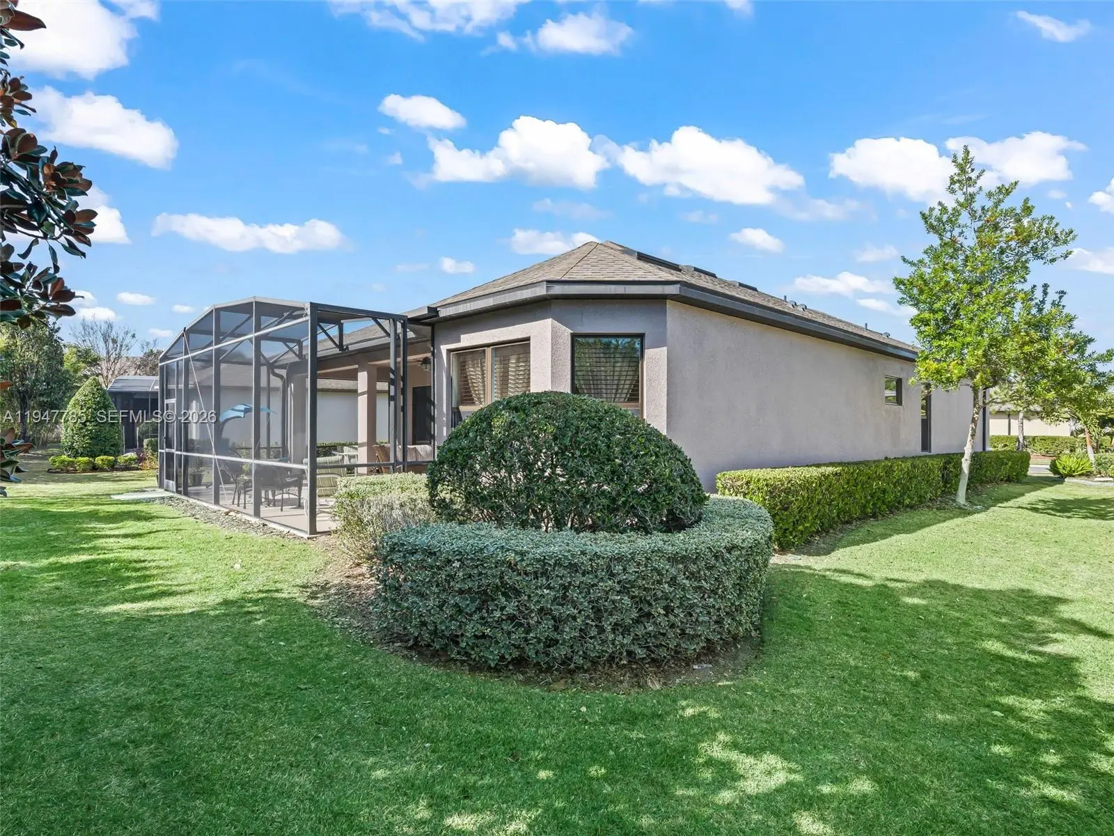 Welcome to Esplanade Highland Ranch, a premier 55+ active adult community in Clermont. This Taylor Morrison custom Pacino model (one of a kind), built in 2017 2 bed/2 bath & den offers premium upgrades including extended bay areas in both bedrooms. The open layout includes 10-foot ceilings with crown molding, large windows, & sliding doors illuminating the space with natural light. The gourmet kitchen features granite countertops, dry bar area & spacious pantry. Upgraded stainless appliances, an oversized island with extra storage & seating. Including recessed lighting/ceiling fans throughout for ambiance. The flexible living area can serve as a dining room, living room, or guest space. The primary suite sits off the main living area for convenient access, two closets, featuring dual granite vanity sinks, beautiful shower, & generous linen storage space. Exterior upgrades include an extended concrete slab & screened in lanai, gutters, updated ac coils, instant tankless water heater, irrigation & lighting! The gated community features street lights and sidewalks ready for your endless walks enjoying the Florida weather.Including resort-style amenities such as a pool, lazy river/exercise area, gym, tennis & pickleball, plus social events. Lovely maintained with landscaped surroundings all contributing to an ideal Florida lifestyle! NO CDD*Located off Minneola Turnpike & lose to shopping, biking trails, schools, hospitals, and near the National Training Center!