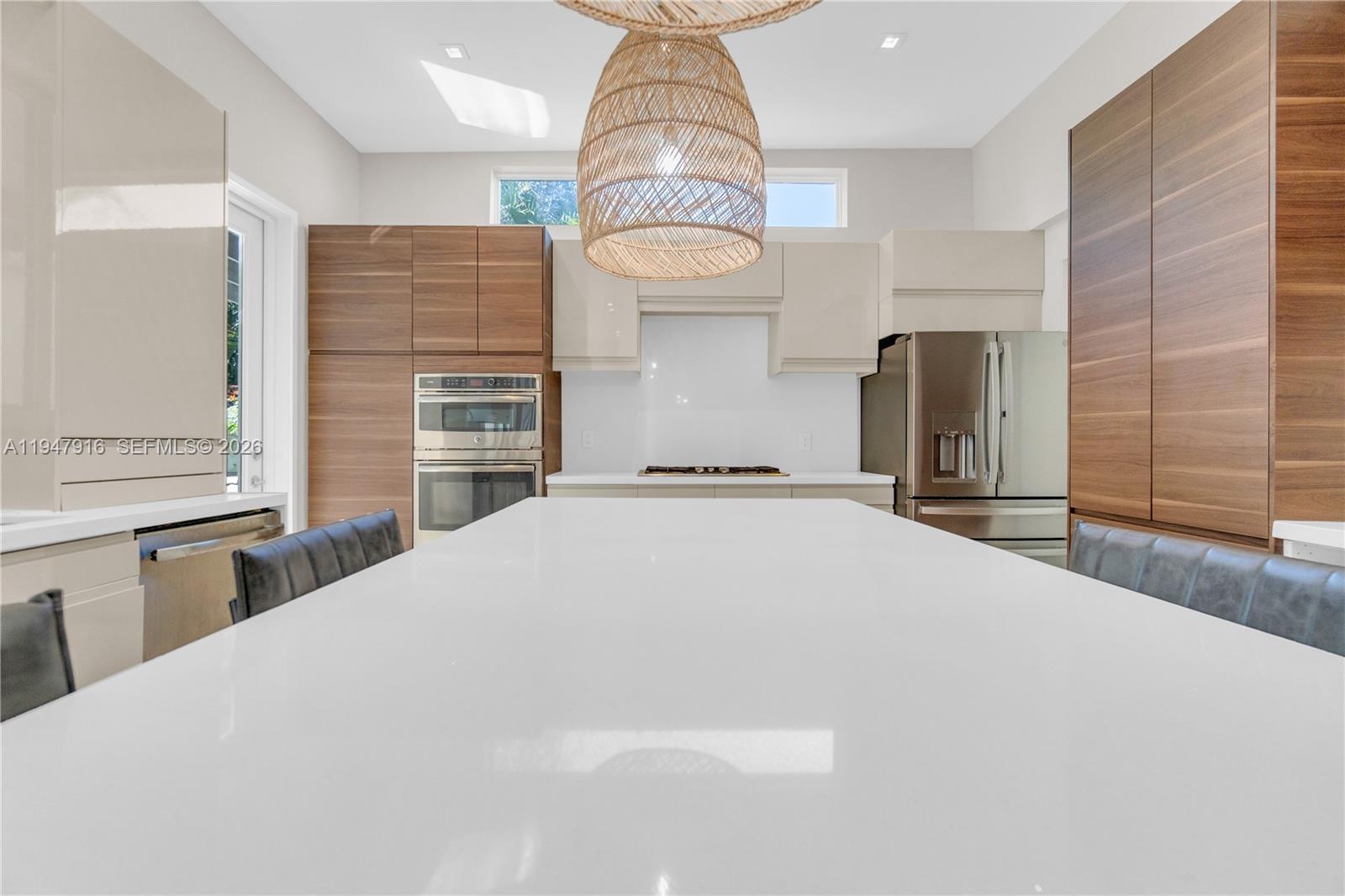 Welcome to one of the most spectacular pool homes in lush Biscayne Park, set on a quiet, tree-lined street and within WALKING distance to Miami Country Day School—one of Miami’s most prestigious and top-rated private schools. This exceptional location offers families the rare luxury of a true walk-to-school lifestyle while enjoying the charm, safety, and strong community Biscayne Park is known for. Beautifully remodeled with no expense spared, this 2,800 SF residence offers 5 bedrooms and 3 baths with soaring ceilings, expansive living spaces, and a spacious primary suite featuring a large walk-in closet and serene pool views. The chef’s kitchen with custom German cabinetry overlooks a meticulously landscaped backyard, creating a seamless indoor-outdoor flow ideal for entertaining and everyday living. Step outside to your private tropical oasis complete with a resort-style pool, covered patio with BBQ, and tranquil garden setting enhanced by a MosquitoNix system for year-round outdoor enjoyment. Recent upgrades include two new HVAC systems and a new pool heater (2025), custom closets (2025), updated fans and chandeliers (2024), and new front and back irrigation (2023). Additional highlights include custom bathrooms, tile floors throughout, a private laundry/utility room, and proximity to the neighborhood park and community center on 113th Street.