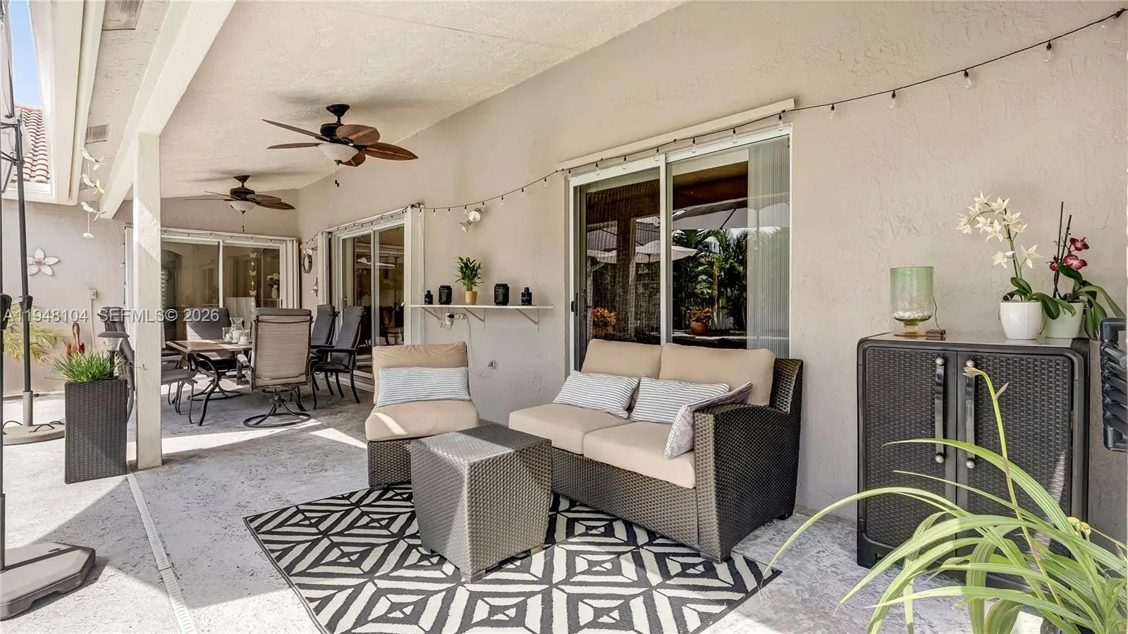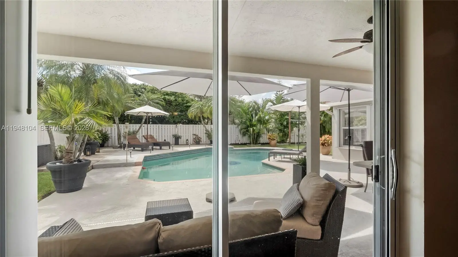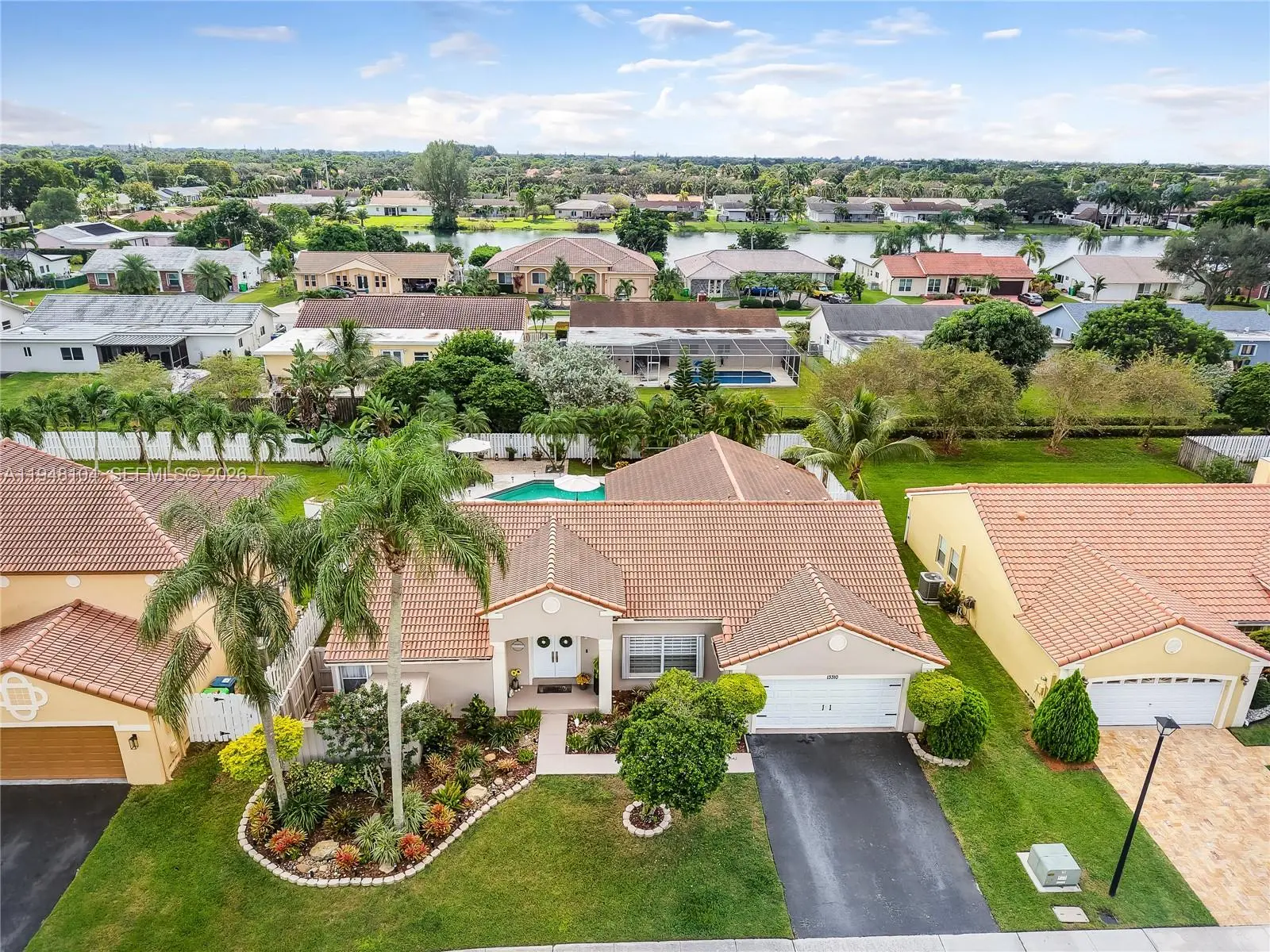LOVINGLY MAINTAINED 4-bedroom, 2.5-bath home that has been lived in with pride and care. This warm and welcoming residence is where memories were made and children were raised. Located in THE ESTATES at the RESIDENCES OF SAWGRASS. A neighborhood of estate-style, private homes. ENTERTAIN IN STYLE in the oversized POOL AREA, designed for fun, relaxation, and unforgettable gatherings. Enjoy a HUGE COVERED PATIO AREA perfect for lounging, dining, or hosting year-round, plus extra grassy space ideal for play, pets, or outdoor games. This backyard offers the perfect blend of comfort, space, and resort-style living. The living areas feature elegant 24x24 tile flooring, while the bedrooms offer wood parquet floors and walk-in closets with custom built-ins. ZEBRA BLINDS, NO POPCORN ceilings throughout. Exterior painted in 2023. Equipped with a portable generator connection, NEW POOL PUMP, NEW HEATER and A NEW SPRINKLER TIMER. Multiple sheds and covered storage areas in backyard, Garage is AIR CONDITIONED. The complete accordion shutters provide excellent hurricane protection. Roof 2005, AC 2016, WH 2021. Spacious laundry room with washer and dryer with built-in drawers. Located in a great neighborhood with convenient access to major highways, Sawgrass Mills Mall, restaurants, and schools. Furniture can convey with exceptions. Low HOA fee, Big backyard vibes, Endless Entertaining— PLUS seller open to concessions. Don’t miss this one!
