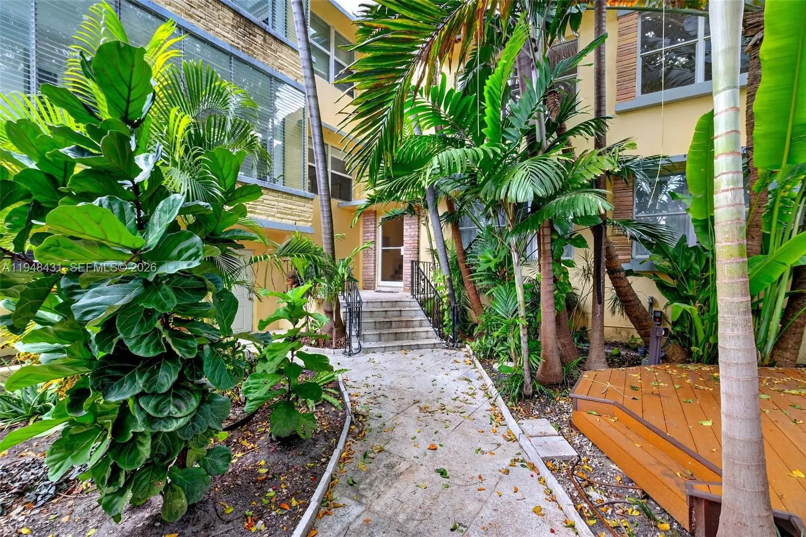 Charming tropical retreat nestled in a lush garden setting within an intimate boutique building of only 8 residences. This top-floor walk-up 2BD/1BA tastefully upgraded with granite kitchen, stainless steel appliances, hardwood floors, faux deco fireplace, the convenience of an in-unit full-size WASHER & DRYER and NEW CENTRAL AC. Furniture may remain or be removed. Easy Zone 3 residential permit parking directly in front of the building (24-hour residential zone). Centrally located with exceptional walkability within 2 blocks of Lincoln Road, Flamingo Park, Espanola Way, all the vibrant local shops, restaurants, and the beach. PET FRIENDLY! Easy to Show! Move-in ready. CHECK OUT THE WALK THROUGH VIDEO