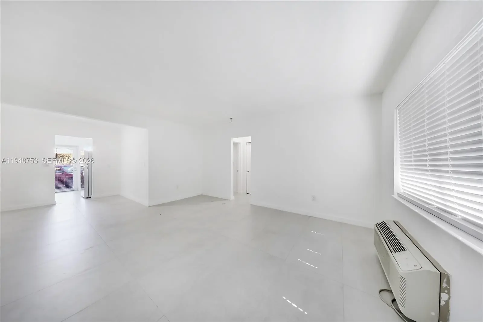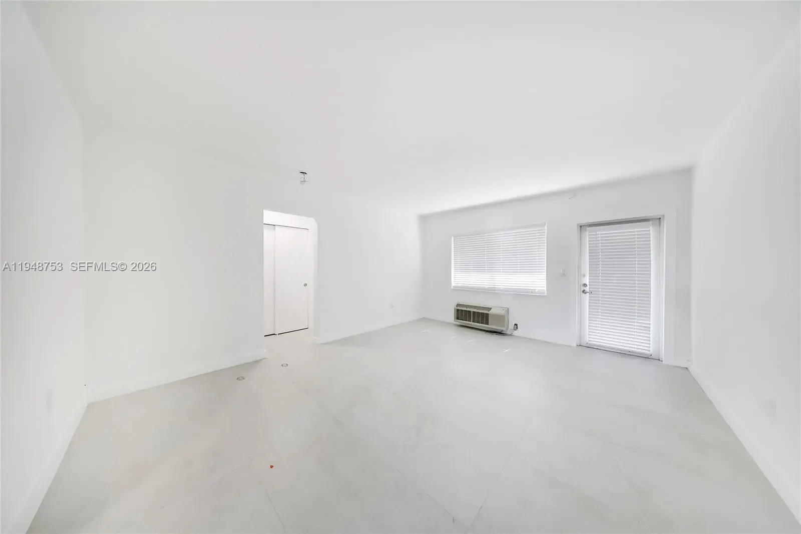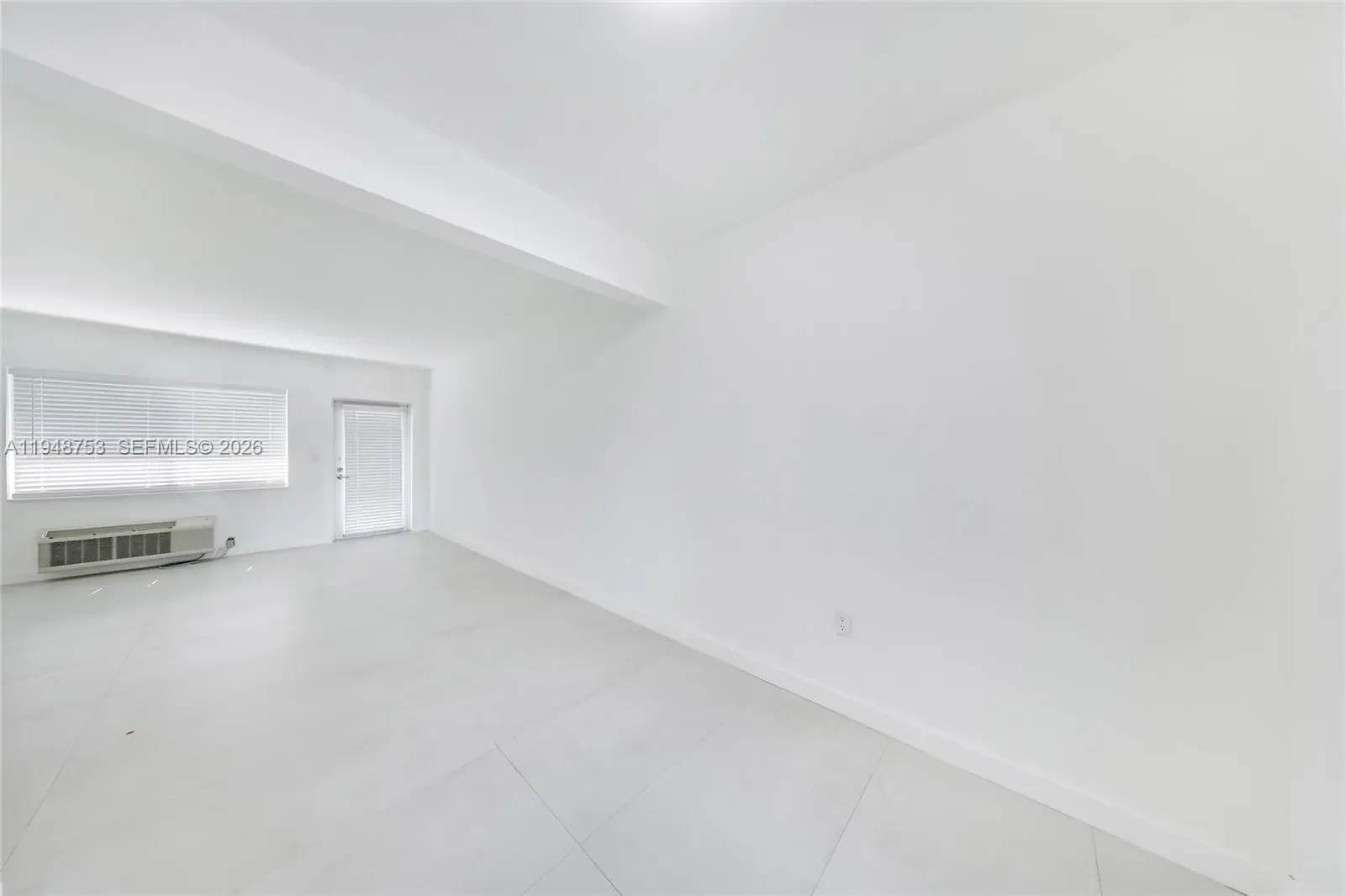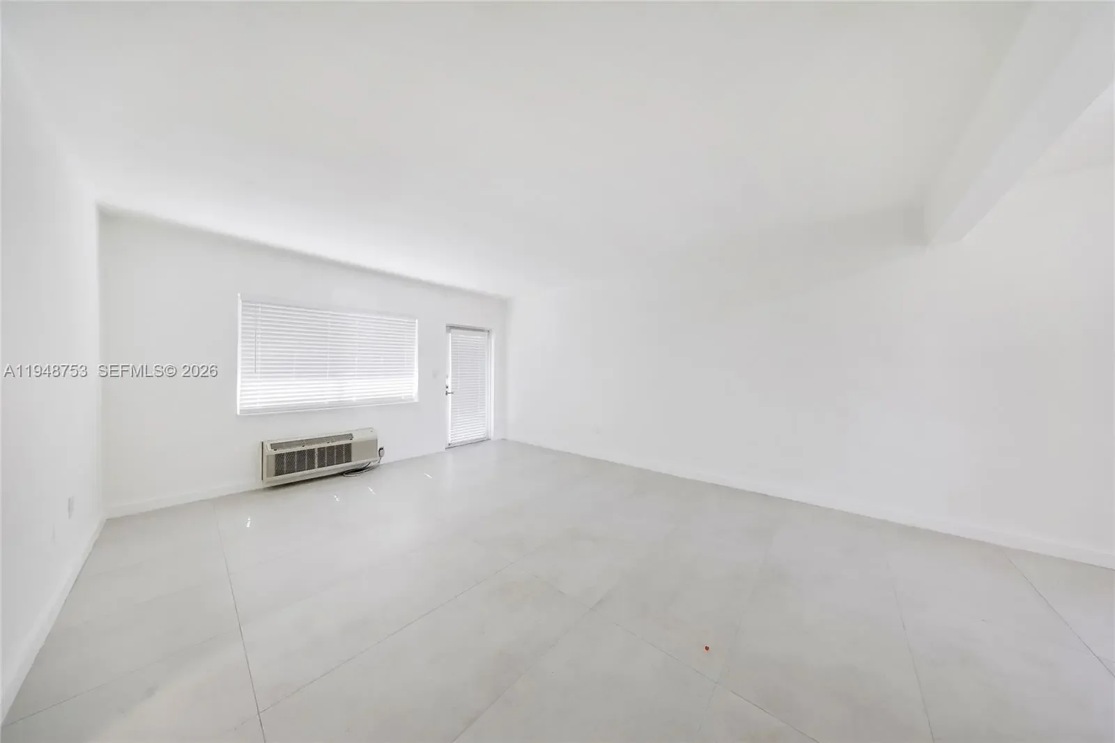 First floor spacious unfurnished 1 bedroom/1 bath, totally redone with porcelain floors, new kitchen, new bath, newer air conditioner. Great 2-story courtyard building with impact windows and doors. Great location on the corner. Assigned parking available. Laundry facilities on-site. Credit and background check required.