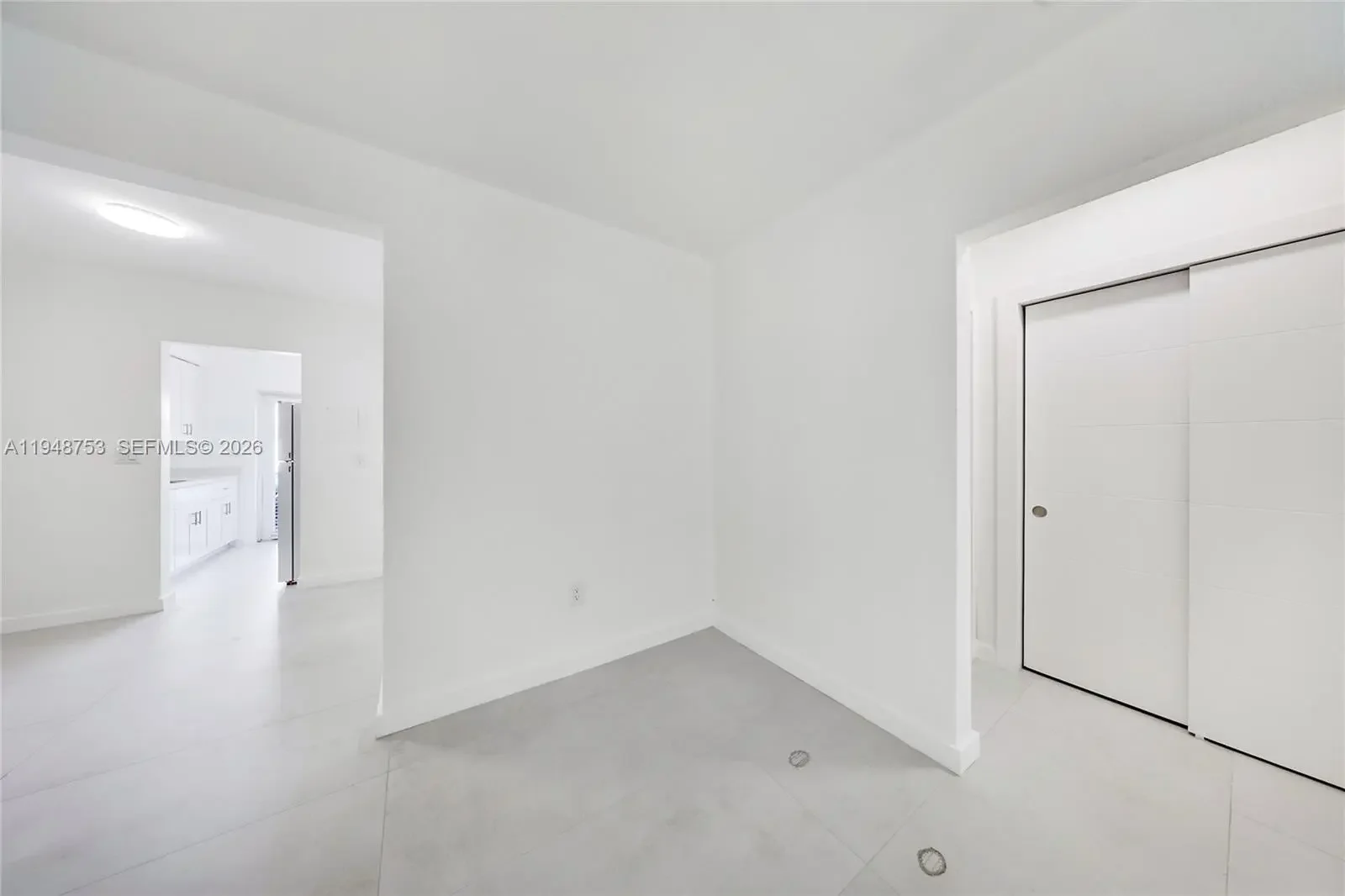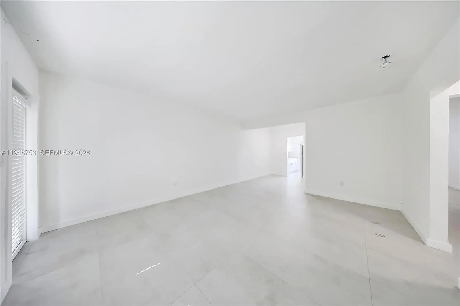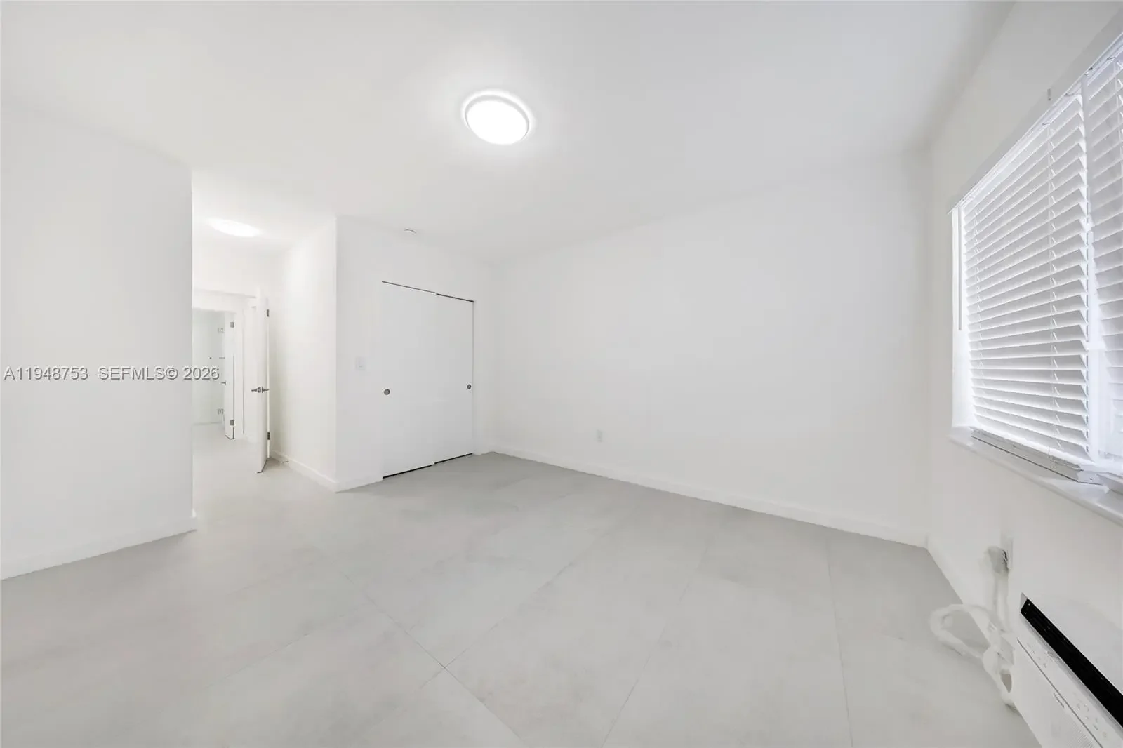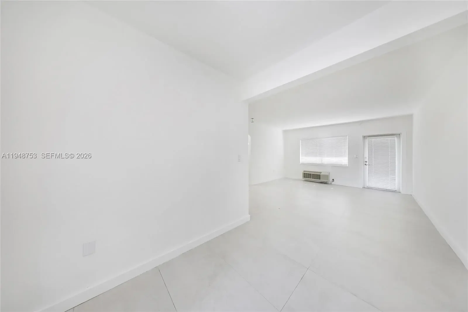 First floor spacious unfurnished 1 bedroom/1 bath, totally redone with porcelain floors, new kitchen, new bath, newer air conditioner. Great 2-story courtyard building with impact windows and doors. Great location on the corner. Assigned parking available. Laundry facilities on-site. Credit and background check required.