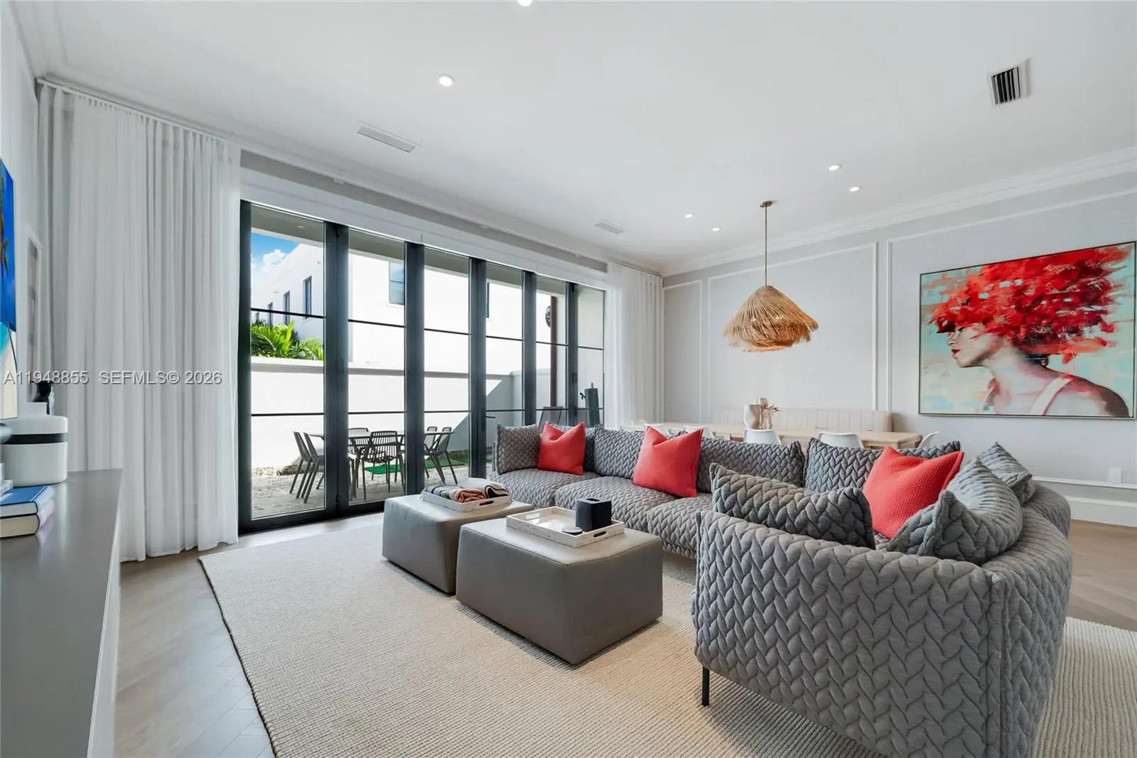 Better than new, fully furnished Biltmore Row luxury townhome in the heart of Coral Gables. This three-level residence with elevator offers 4 en-suite bedrooms, 4.5 baths, and a rare 4-car garage with electric vehicle charging outlets. The main level features a stunning waterfall marble kitchen island, custom cabinetry, premium appliances, and a separate, discreet dirty kitchen ideal for entertaining. Light-filled interiors showcase soaring ceilings and exquisite finishes throughout. Enjoy seamless indoor-outdoor living with three private outdoor terraces, including one with a summer kitchen. Truly move-in ready, offering the ease of new construction with elevated design and style.