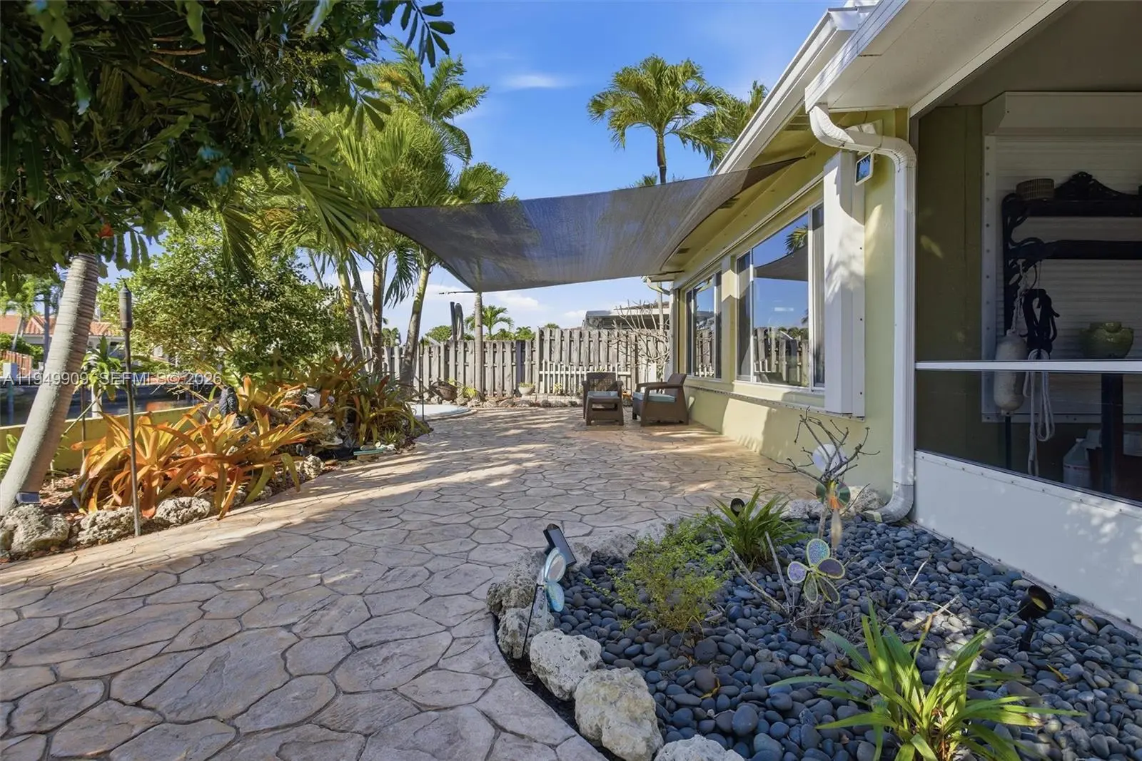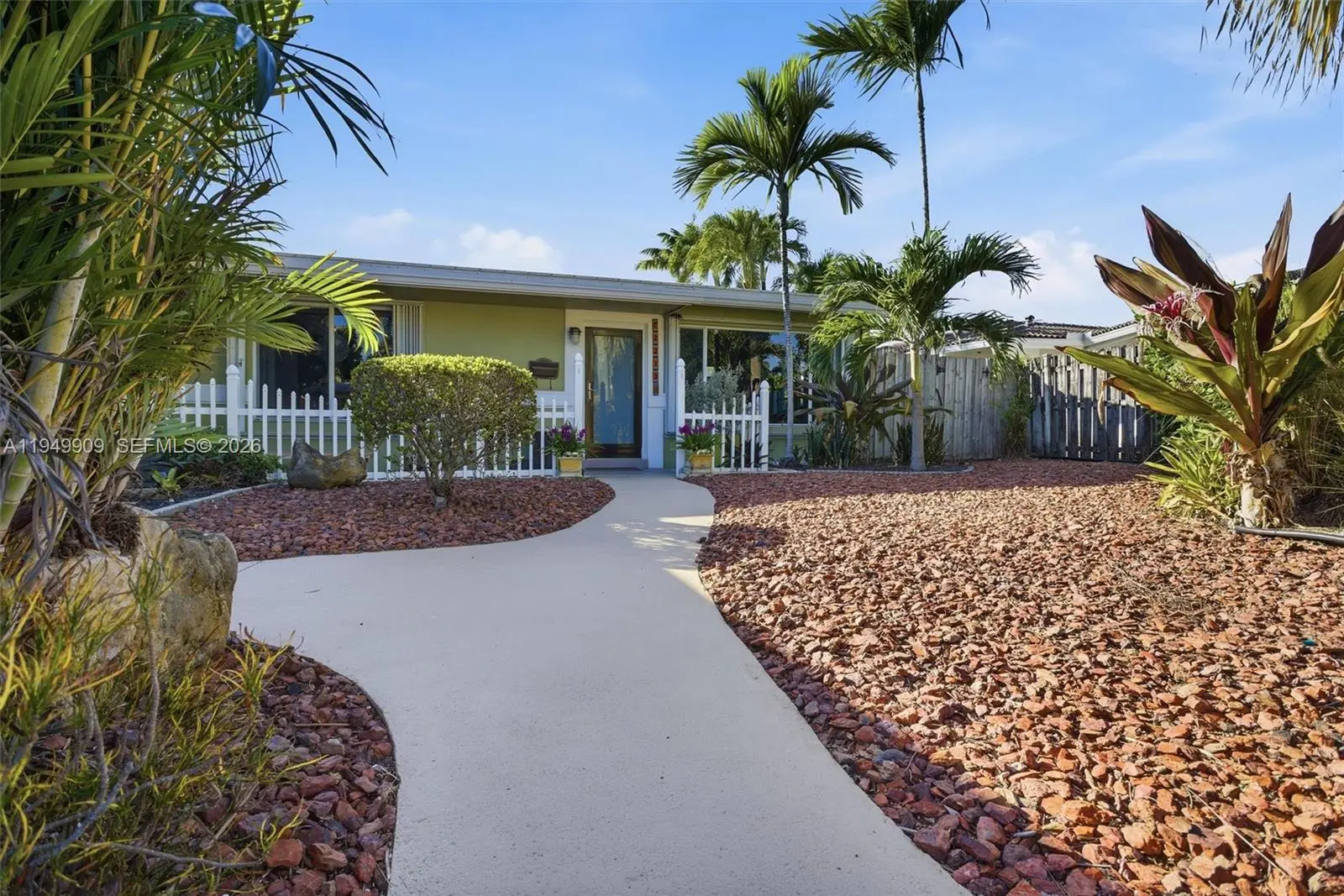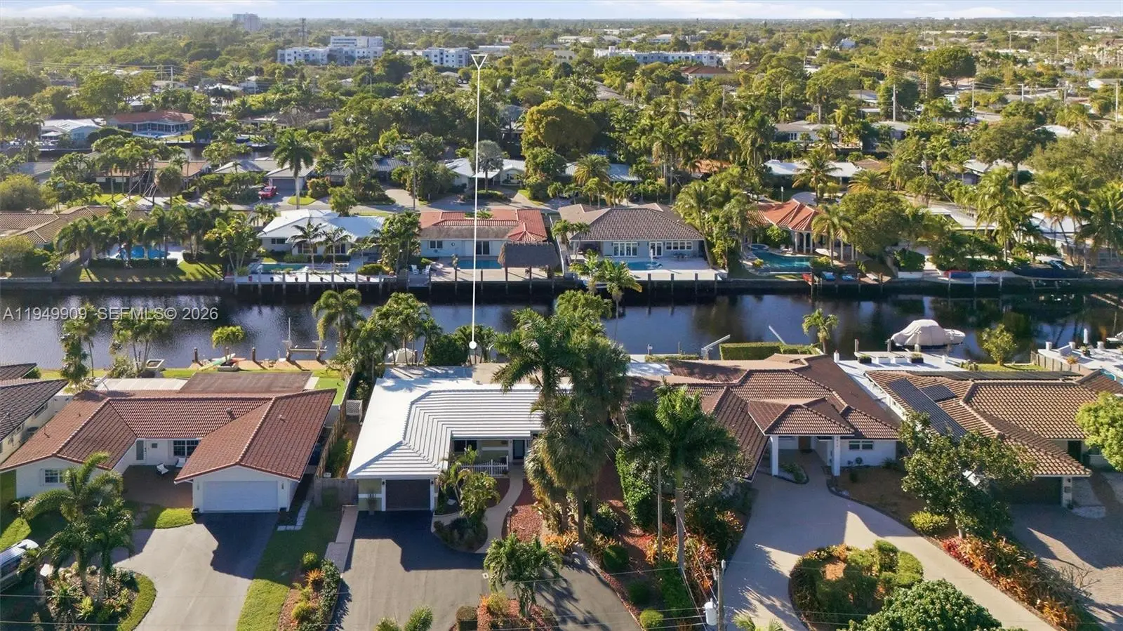 Impeccable and charming Wilton Manors waterfront retreat with ocean access. This 3 bedroom 2 bath residence features an elegant transitional style open concept kitchen with honey toned wood cabinets, glass fronted upper cabinet sections, matched granite countertops, mosaic tile backsplash, stainless steel appliances and under cabinet lighting. The primary bath has a bright, coastal inspired design with a fresh blue-and-white color scheme with a frameless glass enclosure shower. The spacious primary suite has abundant natural light. The secondary bath offers a large frameless glass enclosure shower finished in large format travertine tiles, and a mosaic tile shower floor. Porcelain tile throughout the living areas, wood floors in the bedrooms, smooth ceilings and recessed LED lighting throughout. No detail has been overlooked. Have peace of mind knowing that the roof was replaced in 2018 additional straps were added during installation, electrical updated in 2014, new a/c, ductwork and insulation in 2024. Experience the best of South Florida living with an oasis inspired patio with natural stone pavers and a large in-ground freeform hot tub. From there you are a few steps away from your dock where you can experience waterfront lifestyle with access to davits with a total capacity of 8,000 lbs and a floating dock, perfect for launching your watercraft.