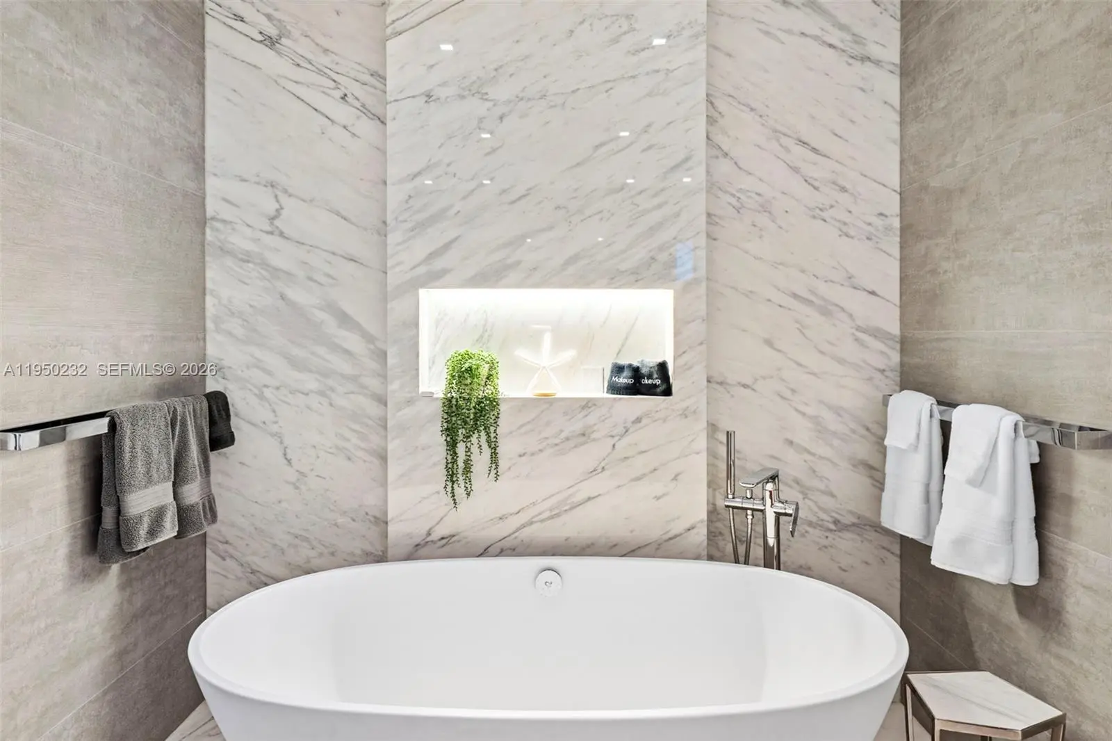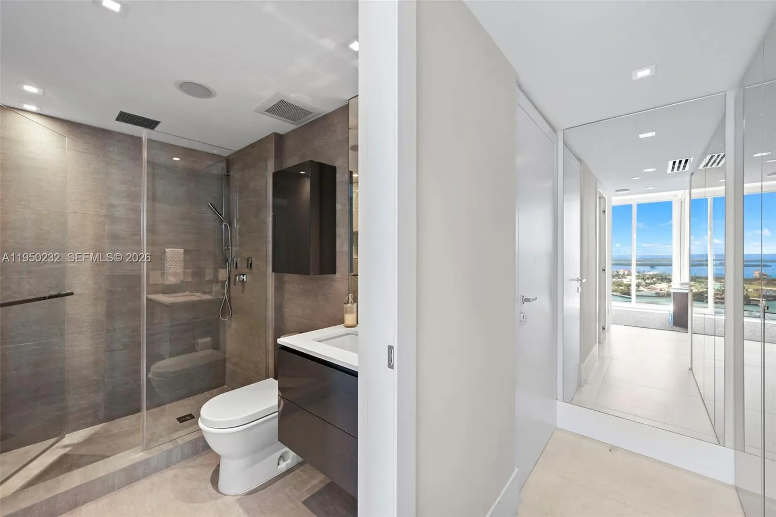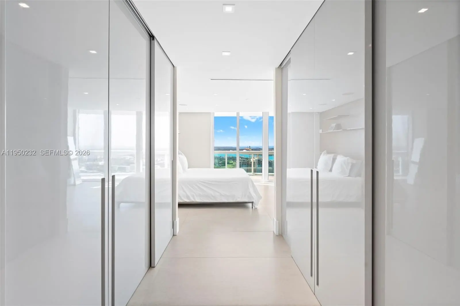 Presenting a rare high floor 02-line at Murano Portofino, ideally located in the coveted South of Fifth enclave. This flow-through home offers breathtaking ocean and bay panoramas from every room, including stunning views of Fisher Island, Downtown Miami and the Port of Miami. The elevator opens into your private foyer, unveiling a fully renovated, thoughtfully curated residence. The home features porcelain flooring throughout, custom built-in bookshelves in the living area, and beautifully remodeled bathrooms, including a spa-inspired primary bath. Additional refinements include linear vents, an integrated speaker system, automatic blackout shades, and custom lacquer-finished closets. The residence offers two expansive terraces with sweeping water views, ideal for seamless indoor-outdoor living. The gourmet kitchen is impeccably appointed with custom blue cabinetry, Sub-Zero, Wolf & Miele appliances. Renowned for its exceptional service, the building is currently undergoing a $60M transformation, introducing new tennis/padel/pickleball courts, a cold plunge, a two-story gym/spa, a private beach club, and an on-site restaurant that is now open. 1 assigned parking and 1 valet included and 1 storage unit. The special assessment has been paid in full by the seller. Don’t miss your opportunity to own a premier waterfront residence in one of Miami Beach’s most prestigious addresses.