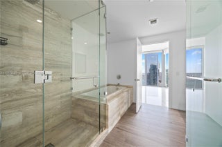 Corner Unit with Endless Views! Spacious 1BD + den, 2BA on the 40th floor with stunning views of Biscayne Bay and Miami skyline. Features private elevator and foyer, marble floors, anti-slip marble balcony, custom closets, blackout drapes in bedroom, and sheer vanilla curtains in living room. Floor-to-ceiling 10’ windows bring in natural light. High-end Miele appliances, washer/dryer, and premium finishes. Large balcony accessible from living and bedroom. Enjoy top amenities: beach club, 2 pools, man-made beach, tennis, volleyball, gym, spa, dog park, business center, and more!