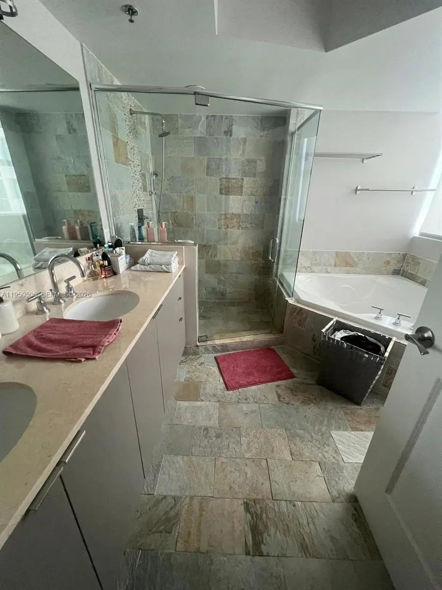 Desirable 3 Bed + 3 Bath corner unit with spacious kitchen, w/cabinets, stainless appliances, granite counter tops, windows shades, ceramic tile floor throughout unit and very spacious master bedroom, 2 assigned parking spaces, high rise property and the best resort style, covered parking, full amenites, jacuzzi, child play area, tennis court, bbq/picnic area, pool room, putting green, modern fitness center with state-of-the-art cardiovascular & strength training equipments, business center with computer and conference room, spa/hot tub.