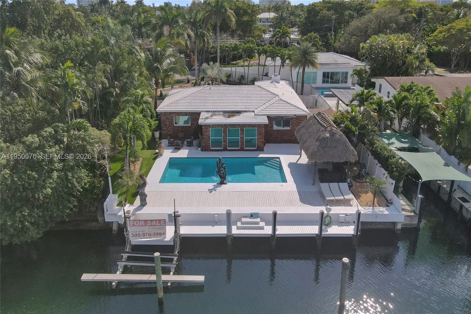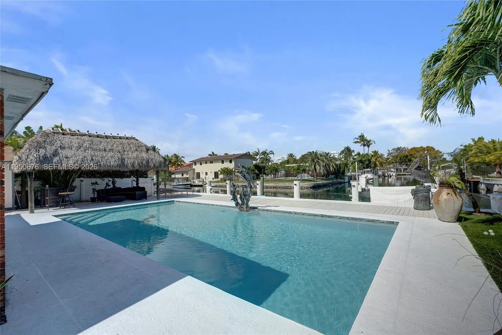 Beautiful, tropical waterfront home in the gated community of Keystone Point. This unique property is situated on a huge 13,803 SF lot & offers an open & bright floor plan, pool, 3 bdrms, and 2 baths. Be greeted by a luscious landscaped pond with fountain, making a grand impression as you pull into the property. Spacious bedrooms, renovated kitchen and open living areas with an office/den flowing into the sun room… overlooking the pool & canal. Never want to leave your private backyard featuring a large pool, tiki hut and brand new 75ft dock w/boat lift. Broad canal with no fixed bridges to the open bay! Minutes to the Haulover Inlet and ocean. Additional detached AC'ed Mancave/storage space. Separate laundry. Property is minutes to Bal-Harbor shops, beaches, 5 star restaurants, grocery stores and more!