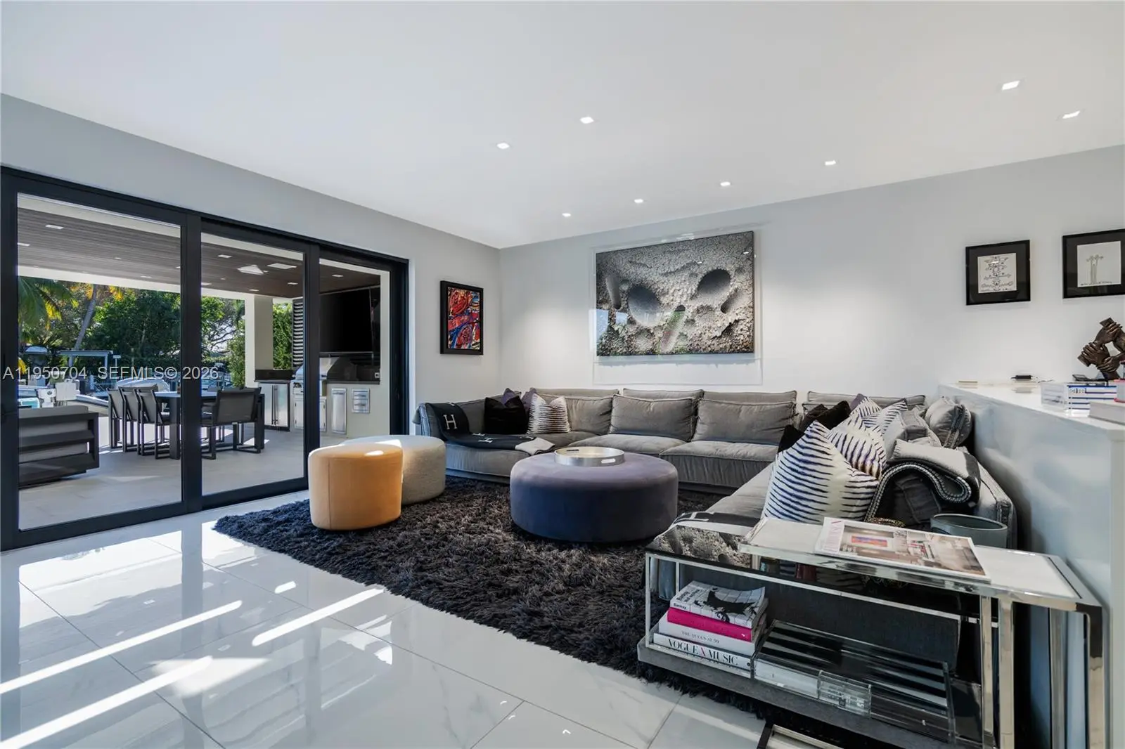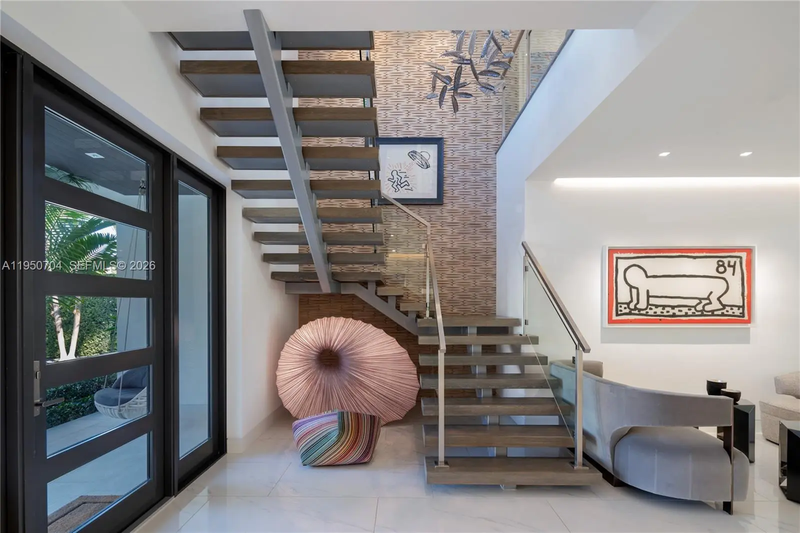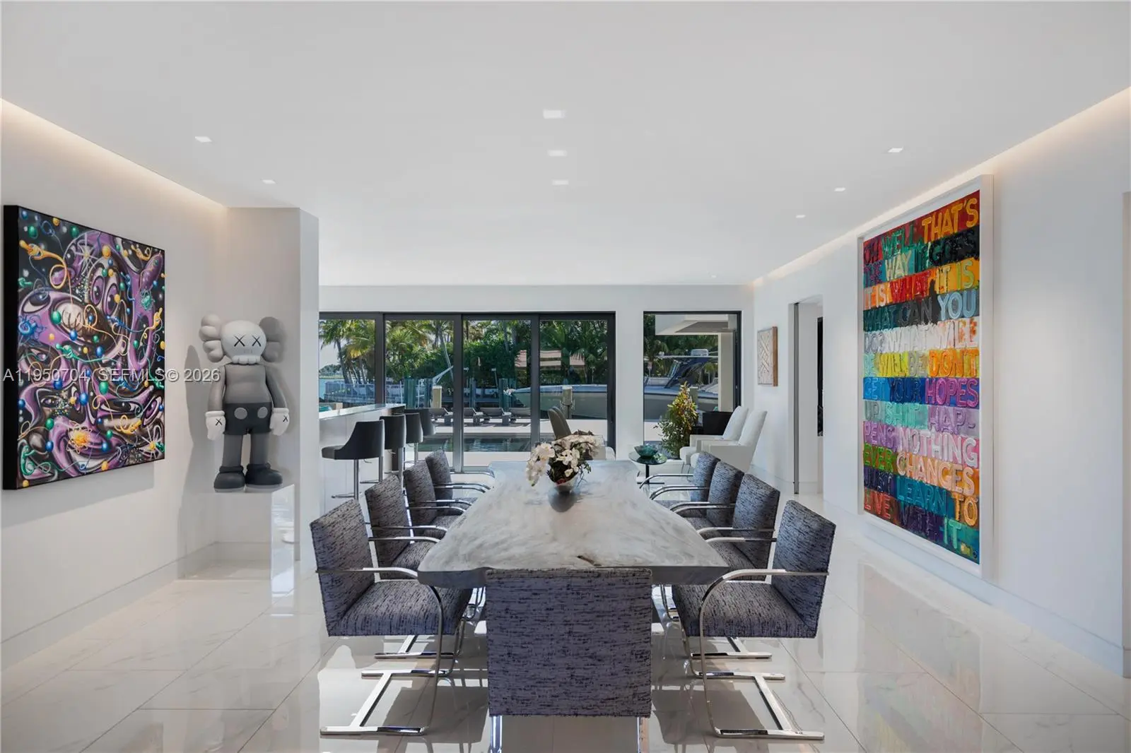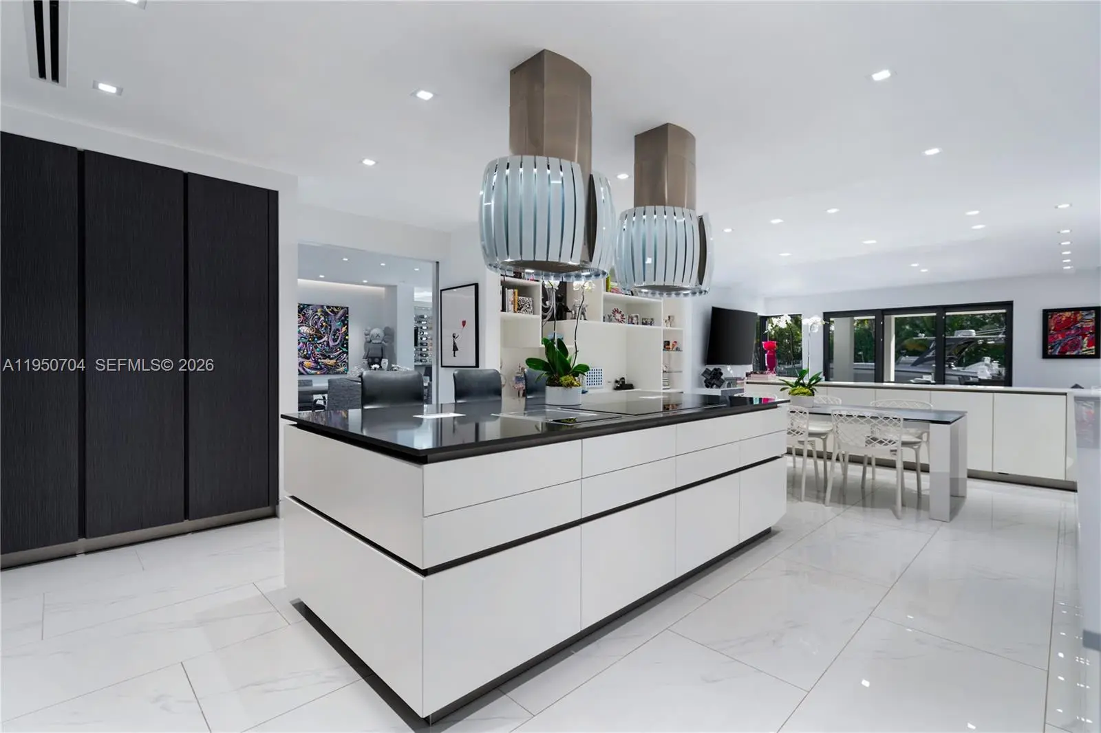 Modern luxury living in security gated Keystone Point with partial open bay views. Built in 2018 this 6 bed, 6.5 bath home has open plan indoor and outdoor living, and living areas bathed in natural light through floor-to-ceiling windows. European kitchen equipped with top-of-the-line Sub-Zero & Wolf appliances, and sliding doors to close off when entertaining. Entertain effortlessly with fully stocked bar area, temperature-controlled wine storage, and telescopic doors that open living areas to the outdoor pool area. Primary suite features a custom walk-in closet and breathtaking sunset bay views. Crestron smart home. 75 feet of water frontage with easy access to the open ocean. Minutes away from Whole Foods, nearby world-class shopping and fine dining in Bal Harbor Mall.