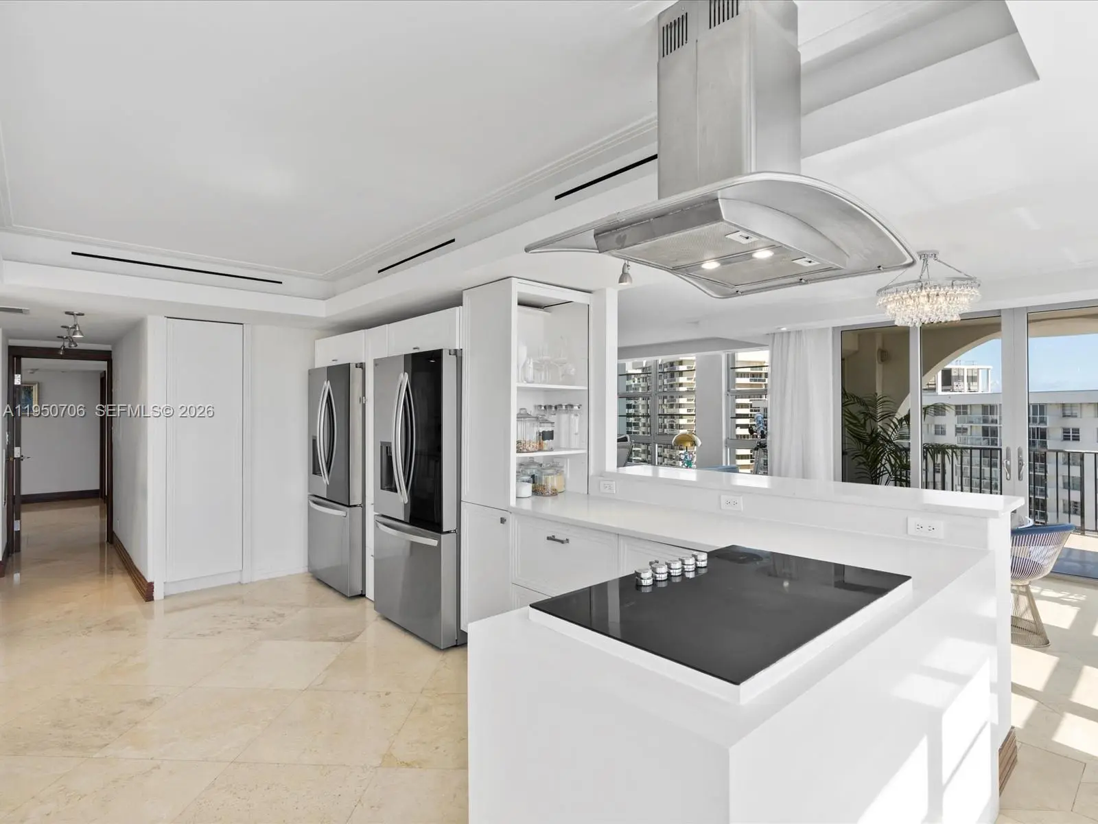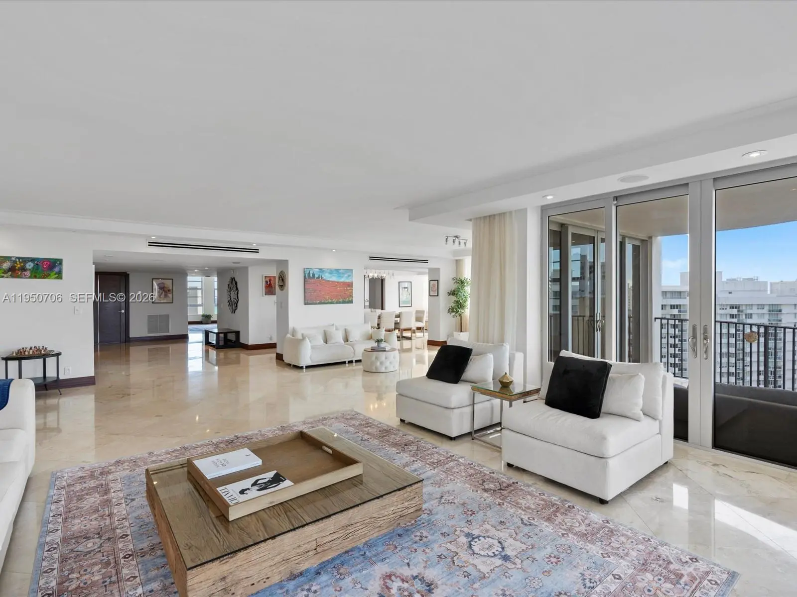 Penthouse-style living in the heart of Miami Beach, overlooking the ocean and the Miami skyline on prestigious Millionaires Row. This exceptional residence consists of two merged units, offering expansive interiors and the feel of a private penthouse. The home features 4 bedrooms, 4.5 bathrooms, a den, family room, formal living room, and a dedicated dining area. The double kitchen is outfitted with new appliances, including two refrigerators, two ovens, two sinks, and two dishwashers, ideal for entertaining and large-scale living. Recently renovated bathrooms and flooring elevate the home with a modern, refined finish throughout. An integrated SONOS sound system enhances the living experience across the residence. Enjoy a gigantic private terrace with breathtaking views and seamless indoor-outdoor flow. Building amenities include 24/7 security, gym, pool, private dock with boat slip, elevator, and two assigned garage parking spaces. Prime location just minutes from the beach, dining, parks, and with easy access to major highways. A rare opportunity to own a truly unique luxury residence in Miami Beach.