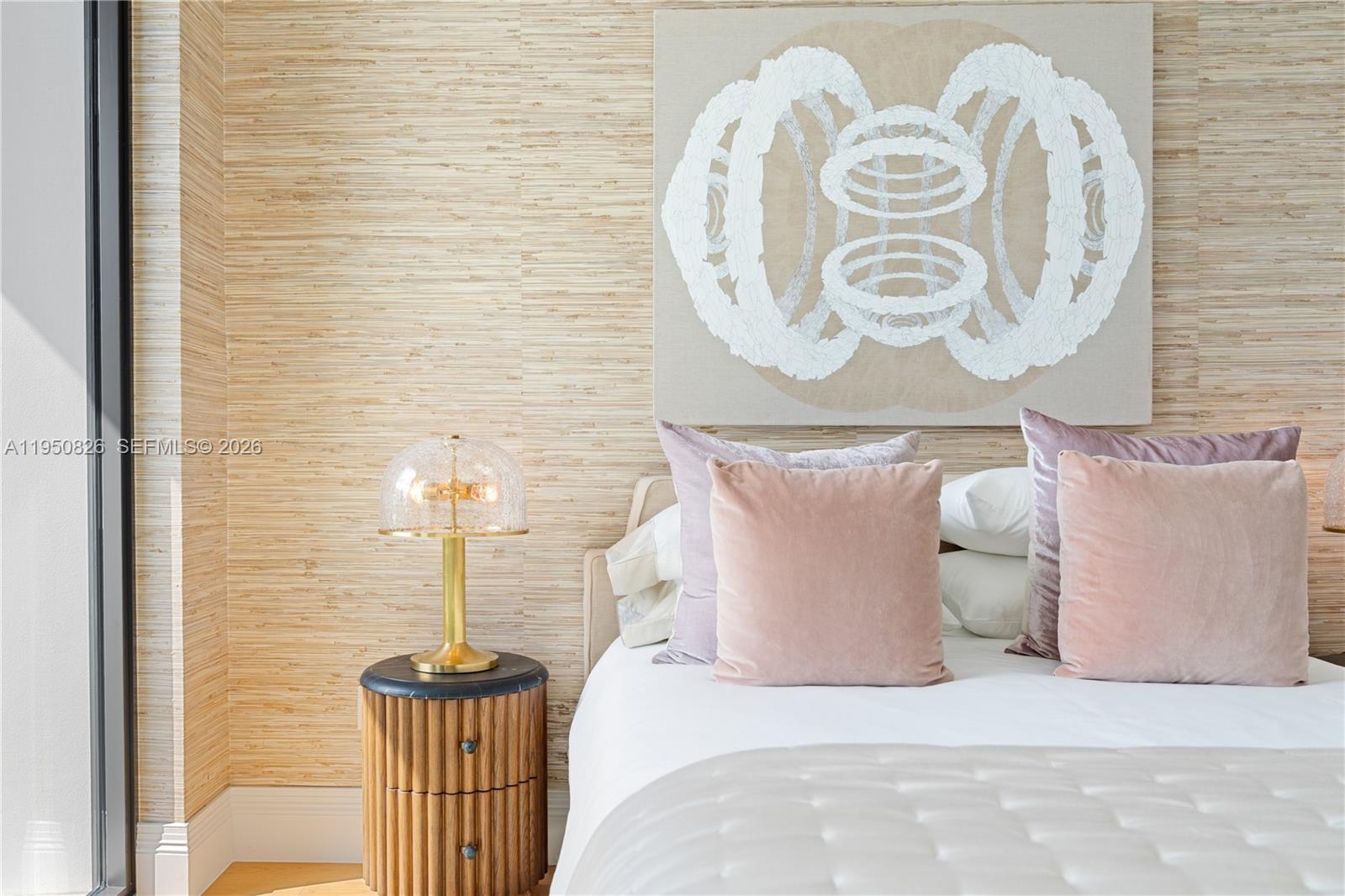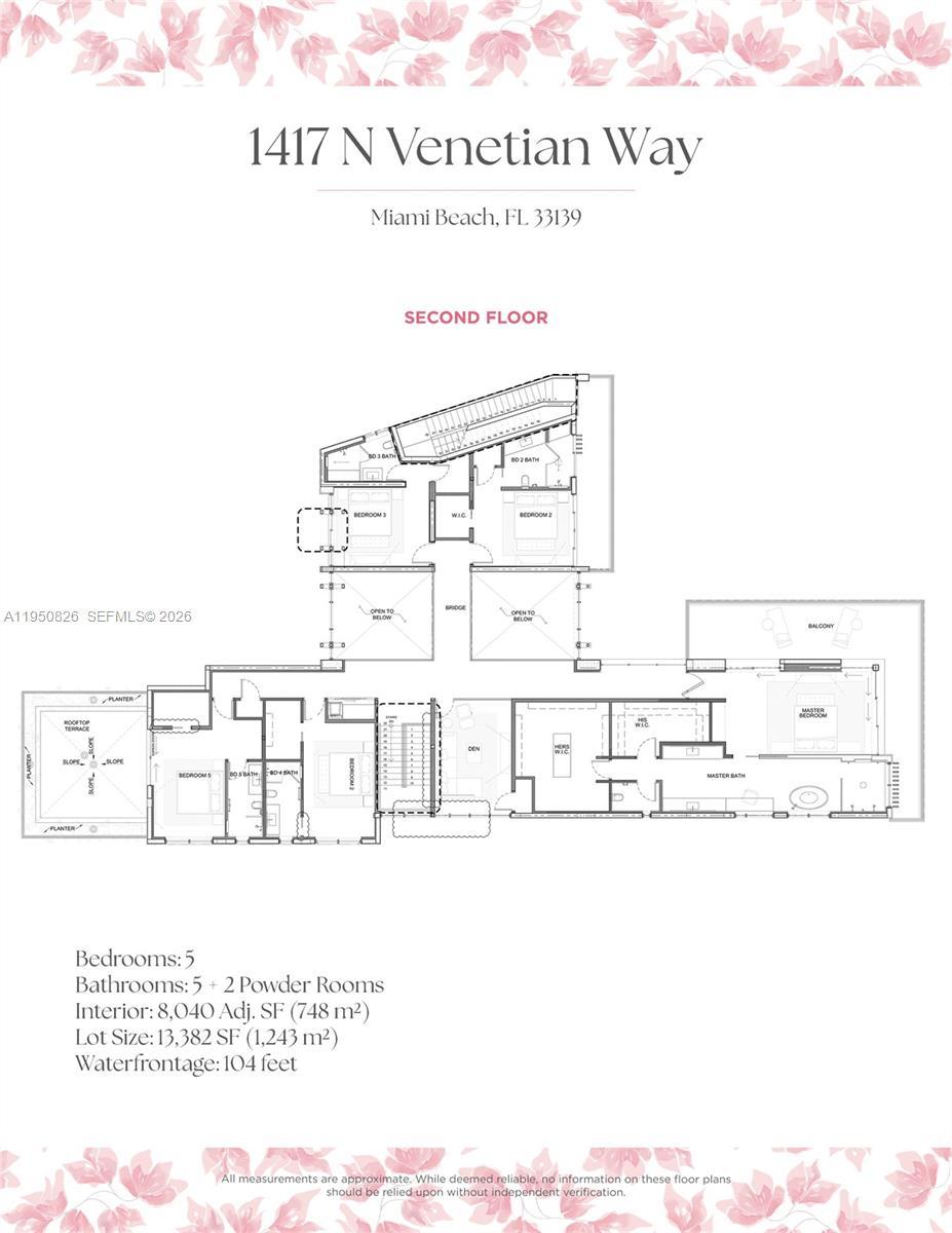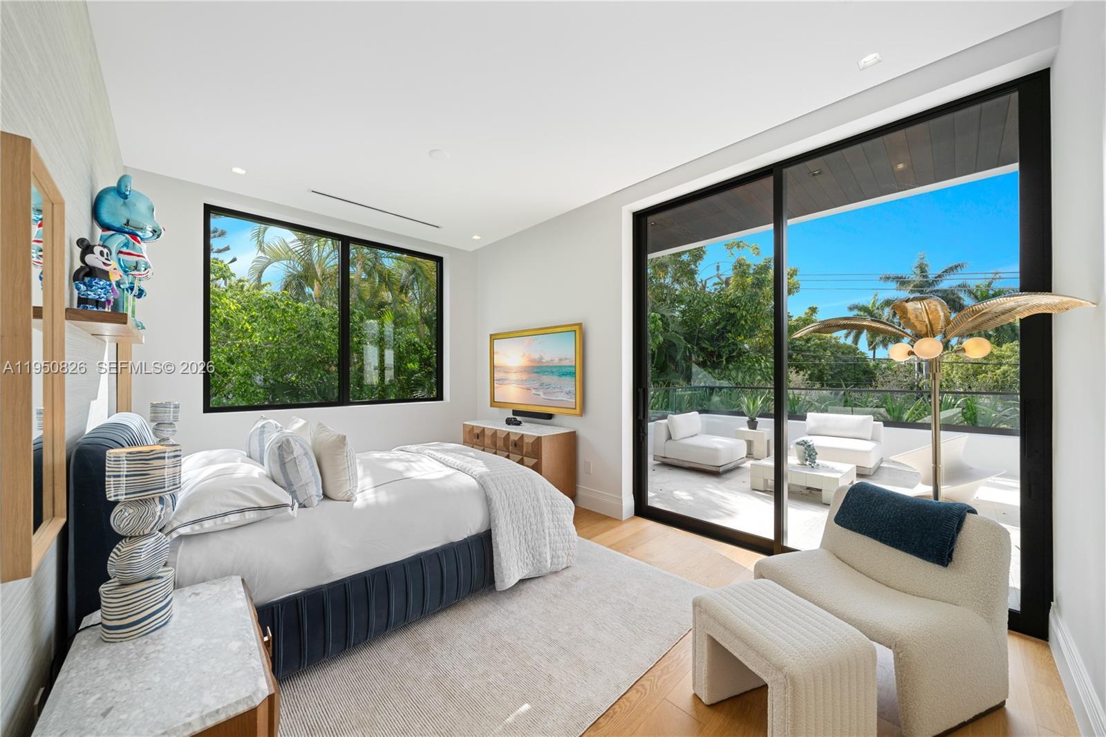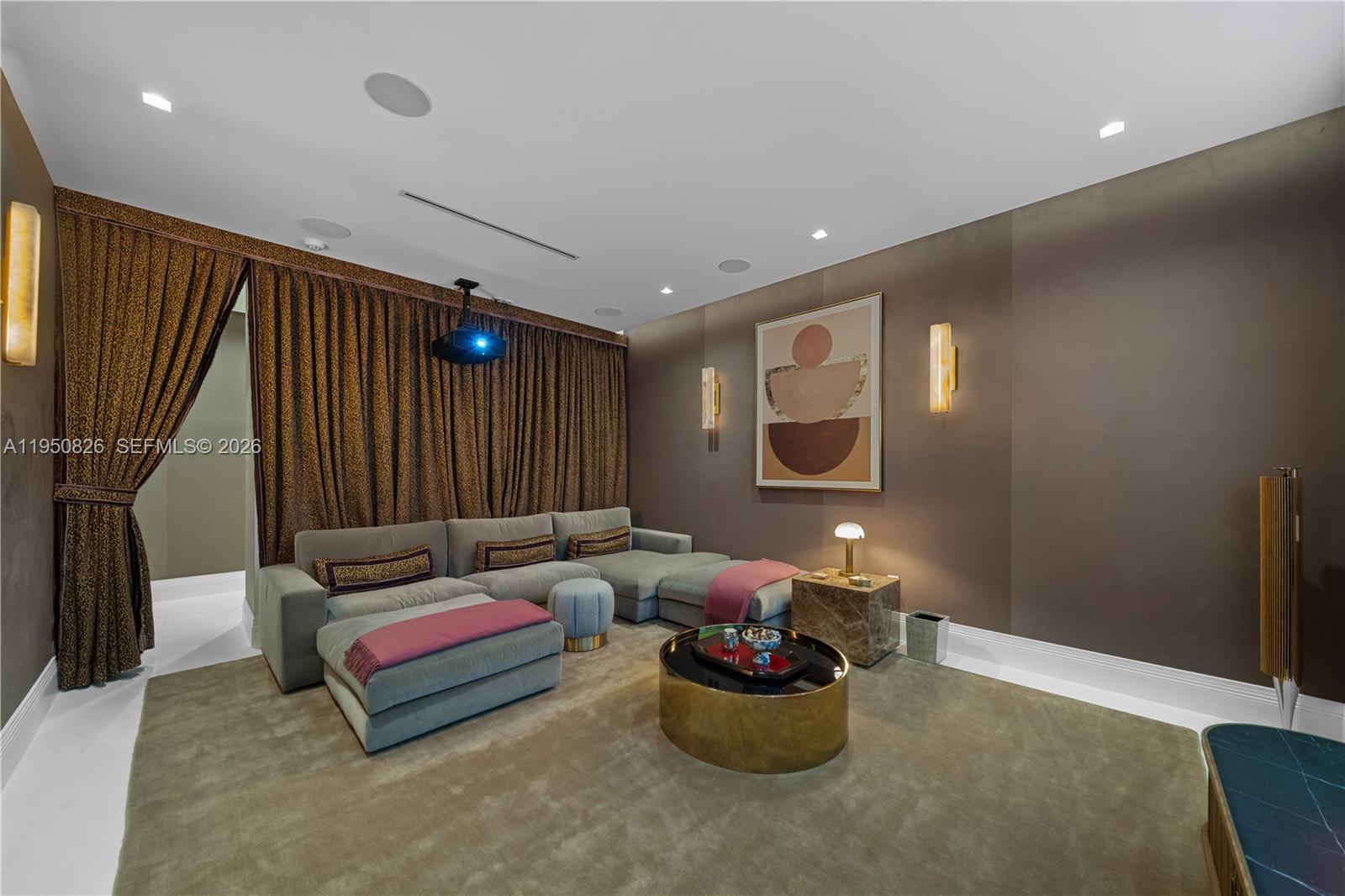 MODERN WATERFRONT RESIDENCE FEATURING CURATED LUXE INTERIORS SITTING ON THE OPEN BAY + CITY VIEWS ON THE EXCLUSIVE VENETIAN ISLANDS BY STRANG DESIGN! 5 beds + double offices & theater, 5 full baths + 2 powder rooms spanning 8,048 Adj SF living area on a 13,382 SF LOT w/ 104 FT of waterfront. Dramatic double-height entry & entertaining areas feature 25’ ceilings w/ custom Bocci chandelier & Nella Vetrina Italian doors + custom hidden bar. Chef’s kitchen w/ Wolf appliances, including gas range, double oven & coffee station. Sub-Zero fridge & wine storage. Ground-floor office, convertible to a bedroom, wrapped in Phillip Jeffries wallpaper + floor-to-ceiling built-in bookcases. Theater w/ State-of-the-art AV system featuring Bang & Olufsen surround sound system, Sony 4K HDR projector + separate wet bar & fridge. Primary suite w/ private terrace overlooking the Bay & City lights. Dedar wallpaper + dual walk-in closets. Primary bath w/ double vanity & electric frosted smart glass for privacy. Gym w/ PENT Equipment. Expansive Outdoor area w/ infinity-edge pool, outdoor kitchen w/ gas range + ipe dock. Rooftop terrace w/ open views of Miami and the Bay w/ storage & drink fridge. Smart Home technology includes Control4 automation, Sonos, Lutron lighting & fully motorized blackout shades in bedrooms & common areas. Fully secured w/ a wired alarm system, leak detection, a multi-camera security system & a whole-home gas generator. Gated Driveway for up to 4 cars + 2-car garage.