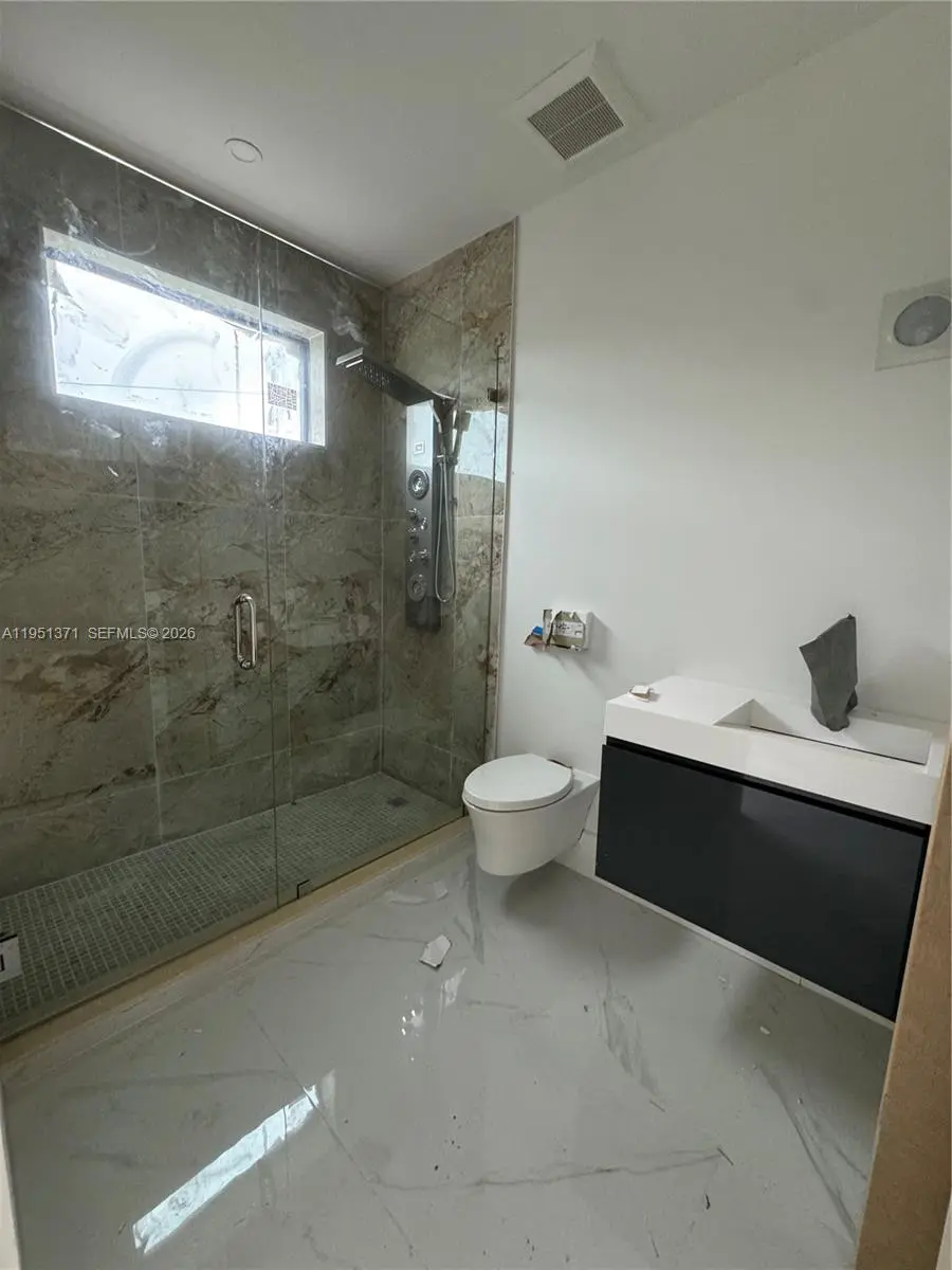 A rare opportunity to own a newly completed modern estate in the heart of prestigious Pinecrest. Set on a quiet, tree-lined street, this architectural masterpiece blends bold contemporary design with refined luxury and exceptional craftsmanship. Walking above the reflection pond entrance feature, taking in the striking façade and through the dramatic solid-wood pivot door into the grand double-height entry, the home makes an immediate impression. Walls of glass flood the interiors with natural light and create a seamless connection between expansive living spaces and the outdoors—ideal for both everyday living and elegant entertaining. The residence offers eight spacious bedroom suites, each with a private spa-inspired bath. The primary suite is a true retreat with a lavish bathroom, oversized custom closets, huge balcony and serene views. The chef’s kitchen is a showpiece, featuring brand new appliances, custom cabinetry, an oversized island, and walk-in pantry, opening to sophisticated family and dining areas. Designed for indoor-outdoor living, the resort-style backyard features a stunning resort style pool with swim-up bar and spa, a concrete gazebo with summer kitchen, and lush landscaping—your own private oasis. Additional highlights include a dramatic skeleton staircase, media room, huge laundry, service quarters and a multi-car garage. Minutes from top-rated schools and parks, this is not just a home—it is a statement.