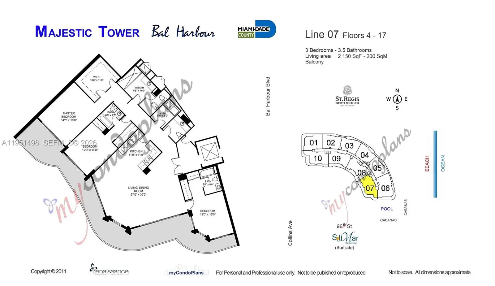 Breakfast Area, Living/Dining Room, Walk-In Closet(s), Elevator, Bar