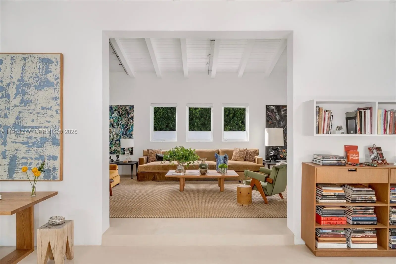 Modern, refined, and beautifully updated, this two-story, three-bedroom residence on Pine Tree Drive blends architectural calm with a warm welcoming aesthetic. Set on a corner lot with dual frontage, the property is fully enclosed by a solid concrete perimeter wall and gated entry, offering exceptional privacy, security and a sense of scale rarely found in dry-lot Miami Beach homes. All exterior elements have been thoughtfully redesigned, including new landscape, hardscape, architectural lighting, and gated entry, creating a composed and serene arrival experience. Inside, bright interiors are highlighted by white beamed ceilings, open living areas, and a clean architectural aesthetic. The upstairs primary suite offers elevated privacy, treetop views, and separation from social spaces, while two additional bedrooms downstairs provide flexibility for guests or office use. The property offers an unusually expansive outdoor environment made possible by its corner-lot setting. Three distinct garden areas—including a front garden, a rear garden with pool, and a private side garden—create a layered sense of openness, light and privacy rarely achievable on mid-block properties. Thoughtfully designed exterior circulation and perimeter walls transform the residence into a true private compound. Ideally located in prime Miami Beach, close to temples, schools, beaches and walkable neighborhood amenities, this is a private and elegant residence defined by design, serenity, and discretion.