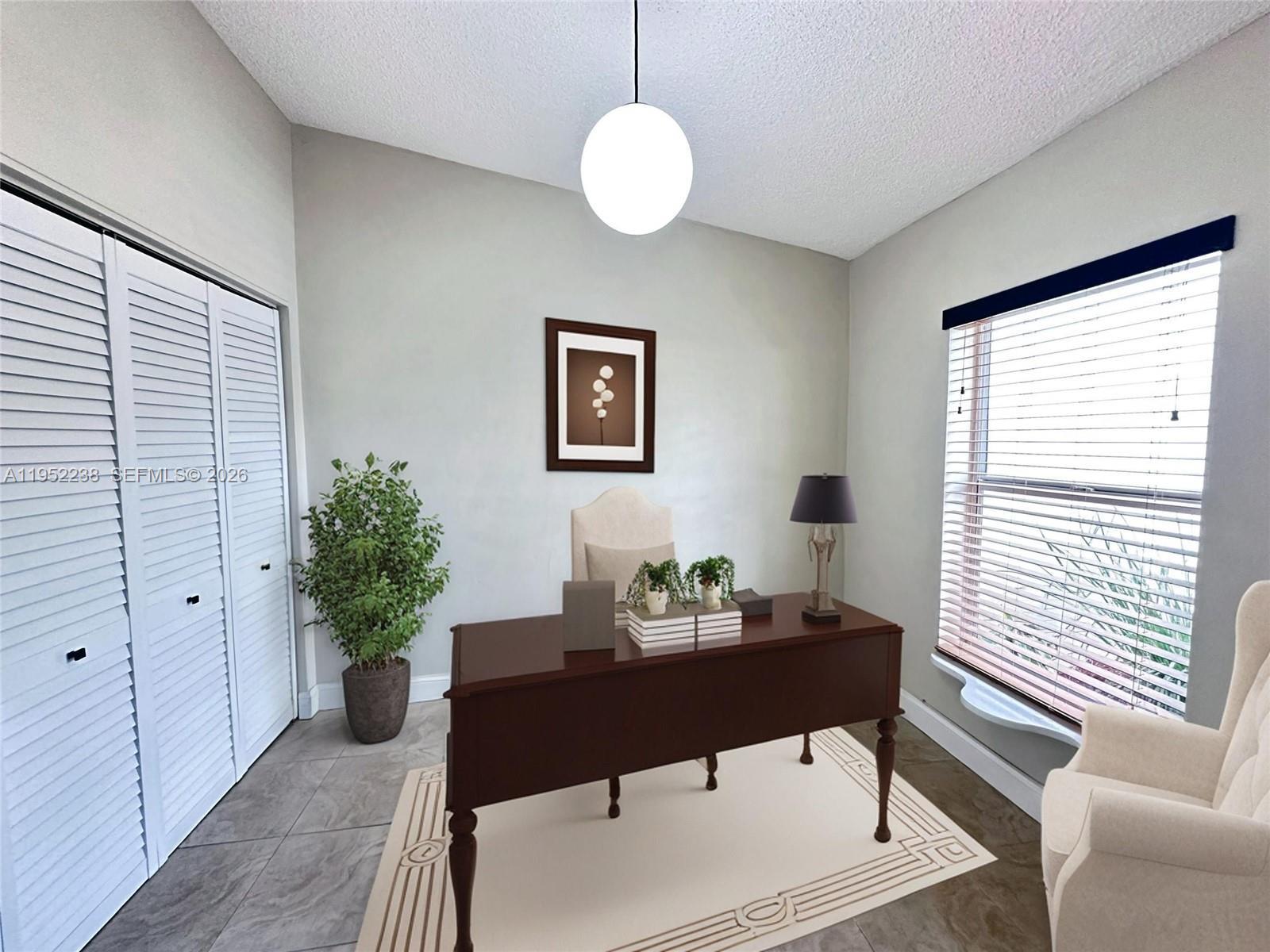 COOPERATING BROKERS ENCOURAGED - BRING YOUR STRONGEST BUYERS! Move-in ready 3BR/1BA in a quiet neighborhood perfectly located just 5 minutes from shopping, parks, and the Turnpike. Freshly painted inside & out, completely updated with ceramic tile floors, wall-to-wall closets, impact windows, and amazing natural light throughout. The home features 3 bedrooms/den and 1 spacious bathroom. The current layout offers potential for a second bathroom, subject to buyer verification and obtaining all necessary permits. The property includes two assigned parking spaces plus guest parking, an oversized covered lanai, and lush fruit trees including mamey, bananas, and papaya. Laundry room with washer & dryer included. Low $55/month HOA and a peaceful walking path just steps from your door! We are accepting only buyers with proof of funds for cash offers or financing with a pre-approval letter from a financial institution, ensuring a smooth process for qualified buyers.
