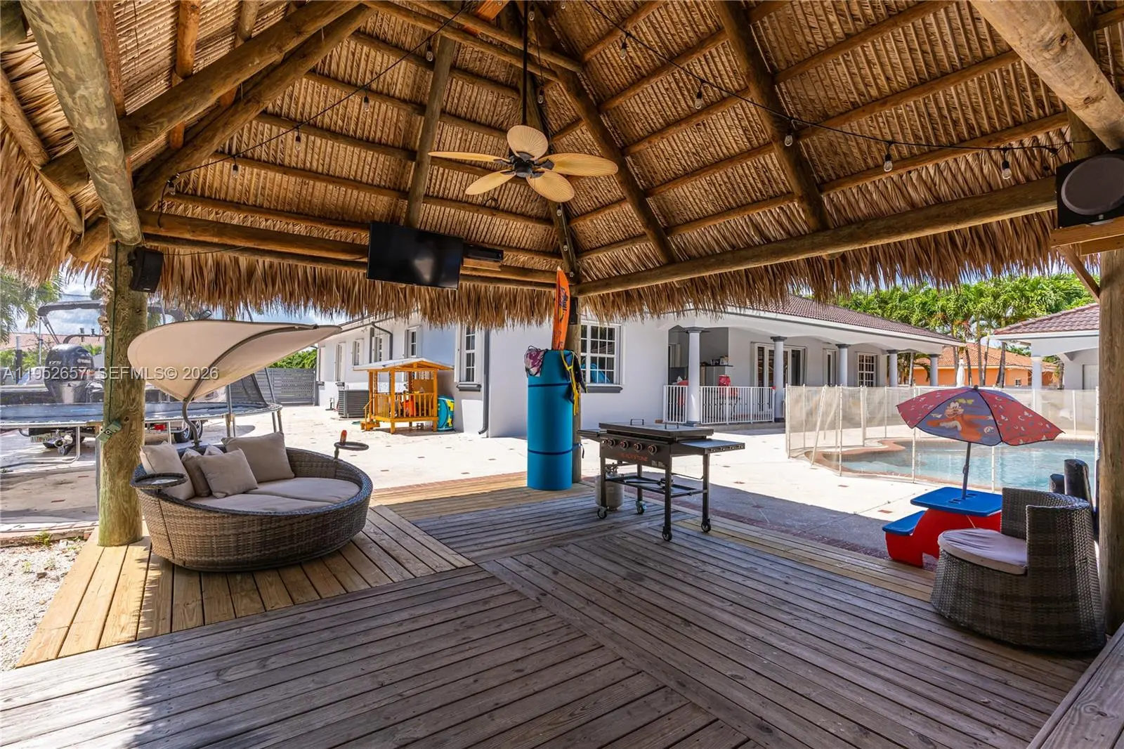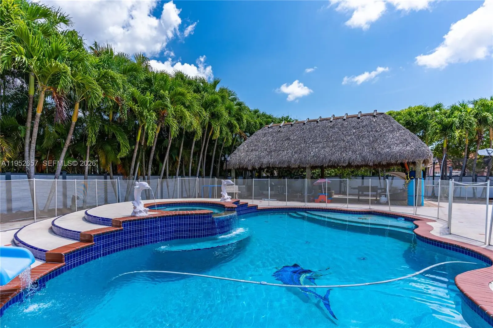 Here's an amazing opportunity to buy this stunning estate luxury home! It boasts 5 bedrooms, 4 bathrooms, and sits on a spacious 21,000 sq ft lot with an actual living area of 4,688 sq ft. There's a guest house with a pool and a large, heated pool as well, with two new a/c units. The outdoor space is perfect for entertaining friends and family, featuring a chef's kitchen, a heated pool with a spa, paved flooring, a tiki hut, and even room for your boat. Plus, the home is equipped with electric panels for significant electricity savings. It's easy to show and ready for you to move in!