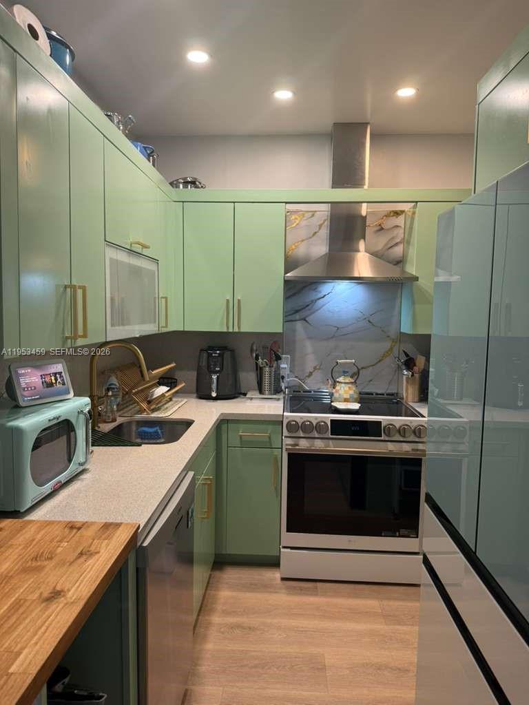 Dryer, Dishwasher, Electric Range, Refrigerator, Washer