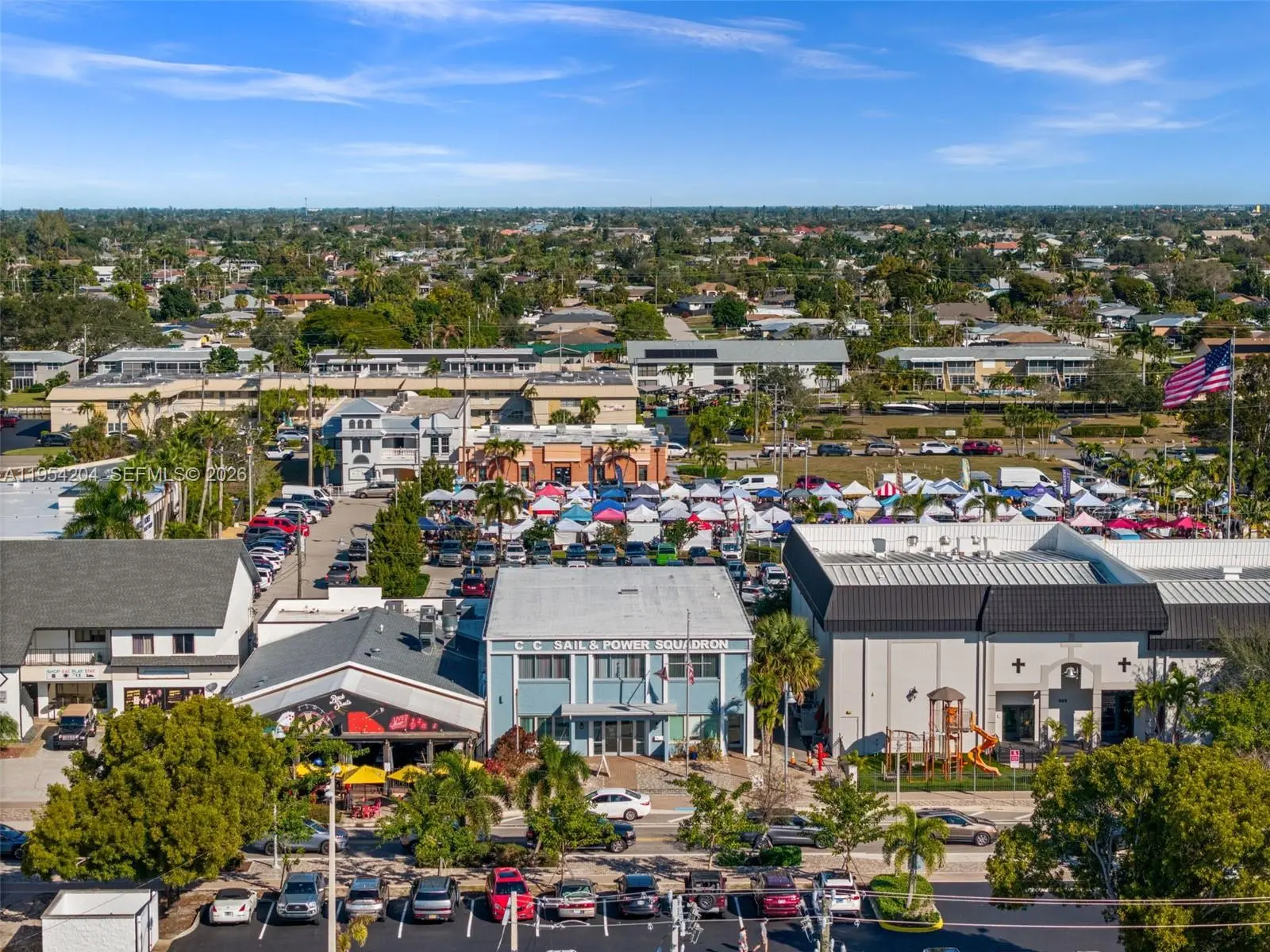 For Sale – Prime Downtown Cape Coral Opportunity Located in the heart of Cape Coral’s vibrant and rapidly growing downtown entertainment district, this well-maintained landmark building offers an exceptional opportunity for investors, owner-users, or developers seeking a high-visibility commercial asset. The approximately 8,600 sq ft, two-story concrete building is thoughtfully configured to support a wide range of uses. The first floor is currently operated as a banquet hall and features a full commercial kitchen with pantry, conference room, reception/office area, four restrooms, and ample storage—ideal for events, hospitality, restaurant, or adaptive commercial use. The second floor includes three large classrooms, additional office space, and two restrooms, making it well suited for professional offices, education, medical, wellness, or co-working space. The building offers two separate entrances and stairways, allowing the floors to be easily separated—perfect for an owner to occupy one level while leasing the other. Ample front and rear parking is a rare downtown advantage. Recent capital improvements include a new roof (2023), new AC units, impact-resistant glass, and new flooring and ceiling tiles on the second floor. The seller may consider financing options and a partial leaseback, offering immediate income potential. Prime location, flexible layout, and strong construction make this a rare downtown Cape Coral opportunity.