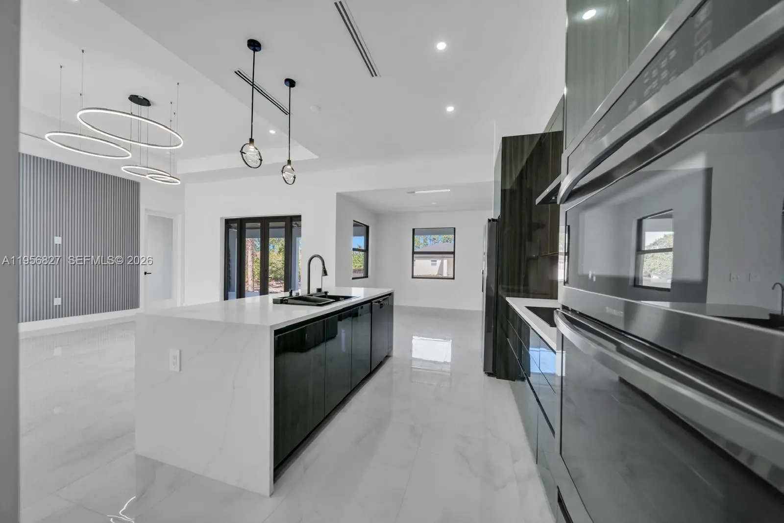 Your Dream Home ! Experience modern Florida luxury in this beautifully designed 4 bedroom, 3 bath offering 1,950 sqft under air and 3000 total sqft. Each bedroom with custom closets and built-in drawers, each bath has Smart Toilets and beautiful finishes!This exceptional home is a open-concept layout with high ceilings, A Dream Modern Kitchen is the master piece, features a waterfall island with quartz countertops and High-quality appliances. You can have you own wine collection because we have creat it ! The primary suite offers a dual walk-in closets. Additional features include impact windows and doors, a full laundry room, epoxy-coated garage floors, an extra large two car garage, a side garage access door and a sprinkler system. Step outside to an expansive covered lanai with outdoor kitchen perfect for entertaining and offering ample space for a future pool. This is definitely your dream house !!!!