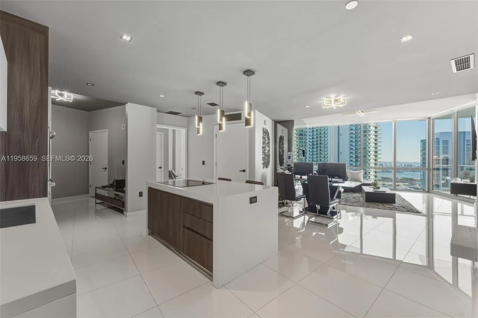 STUNNING water+ bay views, high-floor, and a beautifully upgraded interior, all offered as one of the best-priced residences in the building! Residence 4303 at Paramount Miami Worldcenter delivers a refined, design forward living experience high above the city with expansive covered balcony and private elevator entrance. This premium residence features a striking glass wall fireplace, custom drop ceilings with integrated LED lighting, exterior balcony LED lighting for evening ambiance, and fully built-out custom closets, offering a truly turnkey opportunity. Located within Miami Worldcenter, Paramount offers unmatched walkability and long-term value. Residents are steps from world-class shopping, dining, and entertainment including the Apple Store, Lucky Strike Bowling, Club Studio, Sephora, and Maple & Ash. Waterfront Museum Park is within walking distance, while immediate access to the Kaseya Center places concerts and sporting events just outside your door!! The building is known for one of the most expansive amenity collections in Miami, featuring a resort-style pool deck, 5 total pools, two-story fitness and wellness facilities, spa with sauna and massage rooms, theater, golf simulator, boxing ring, basketball court, yoga and boxing studios, private lounges, co-working spaces, children’s play areas, and 24-hour concierge, valet, and security. Less than 10 minutes from Brickell and under 15 minutes to Miami International Airport.