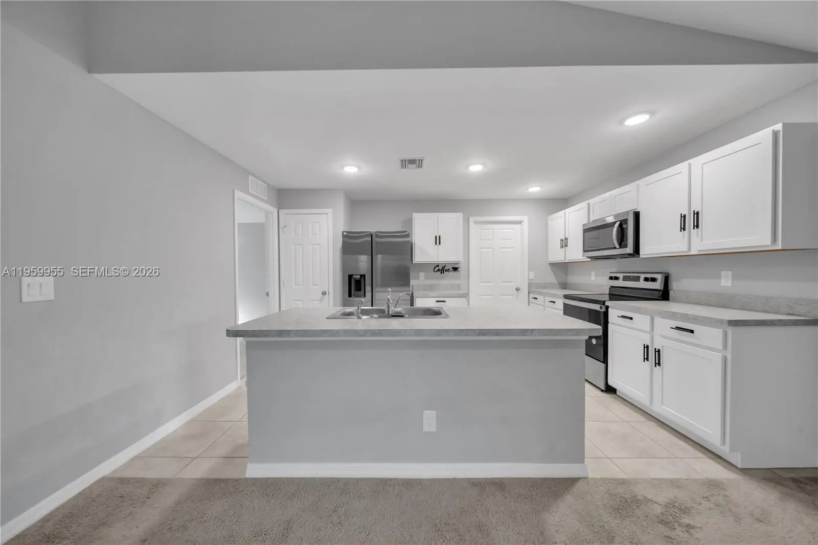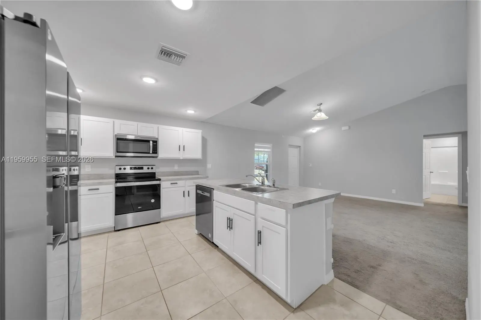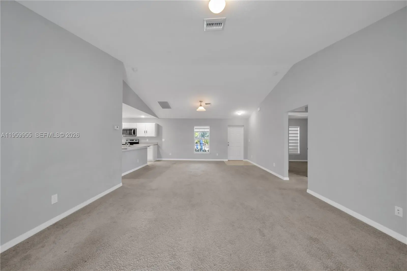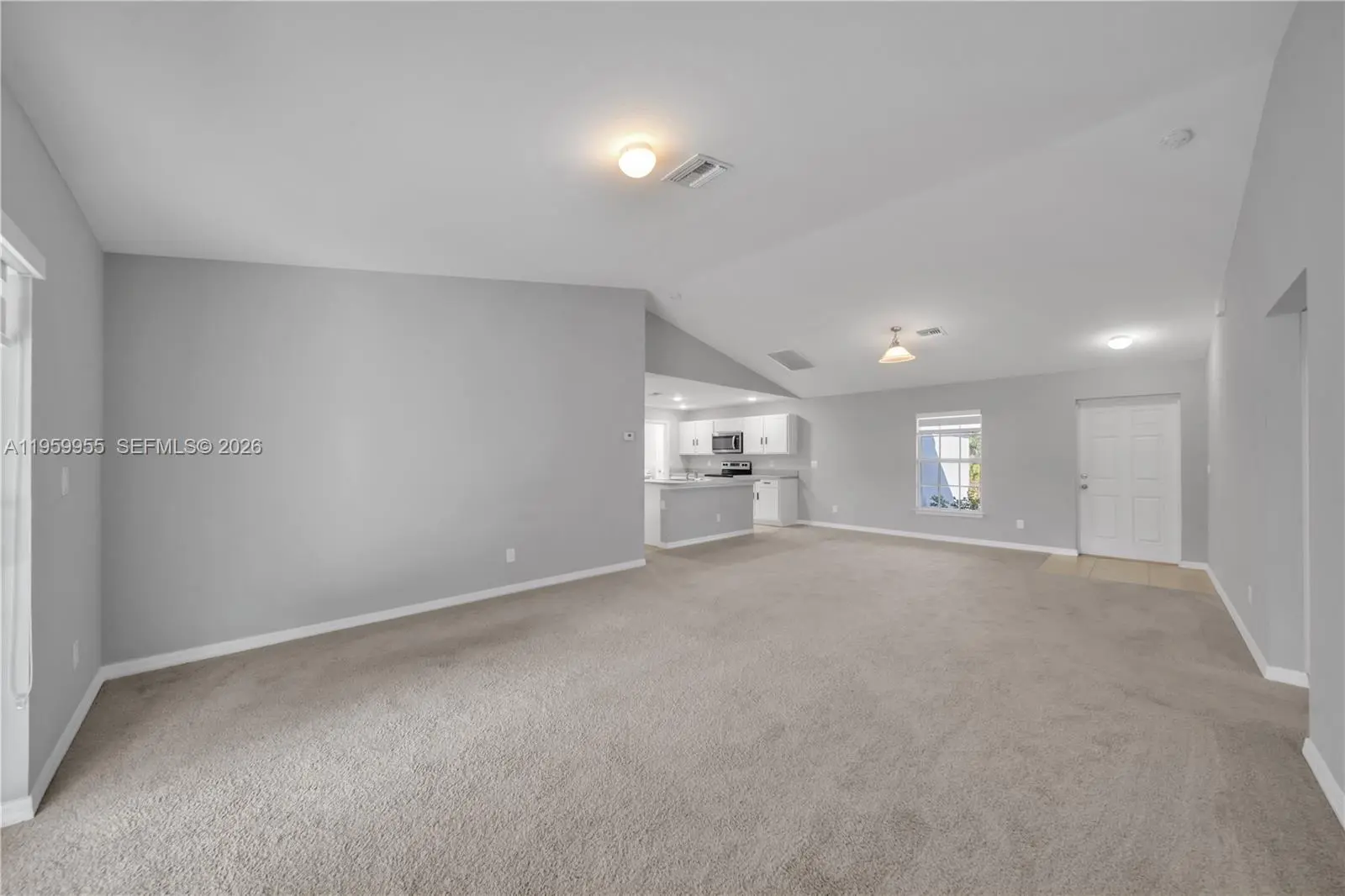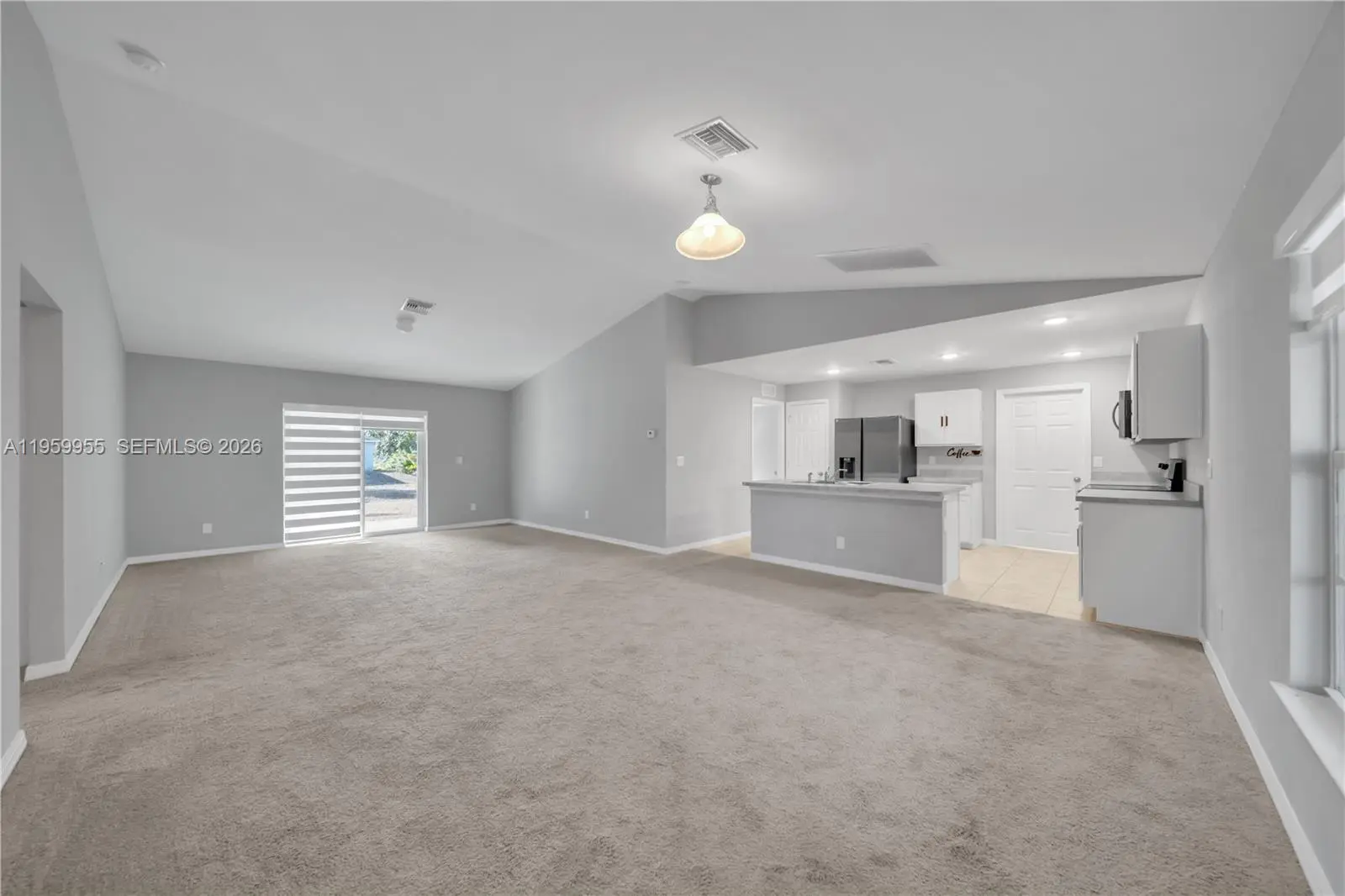Beautiful 3-bedroom, 2-bath home featuring an open-concept layout with cathedral ceilings that enhance the sense of space and natural light. Built with durable concrete block construction, the home offers a modern kitchen with an island and stainless steel appliances, along with a covered lanai ideal for enjoying the Florida lifestyle. The garage has been converted into additional finished living space, providing flexible use options such as a guest area, home office, or multi-purpose room. All information is deemed reliable but not guaranteed.