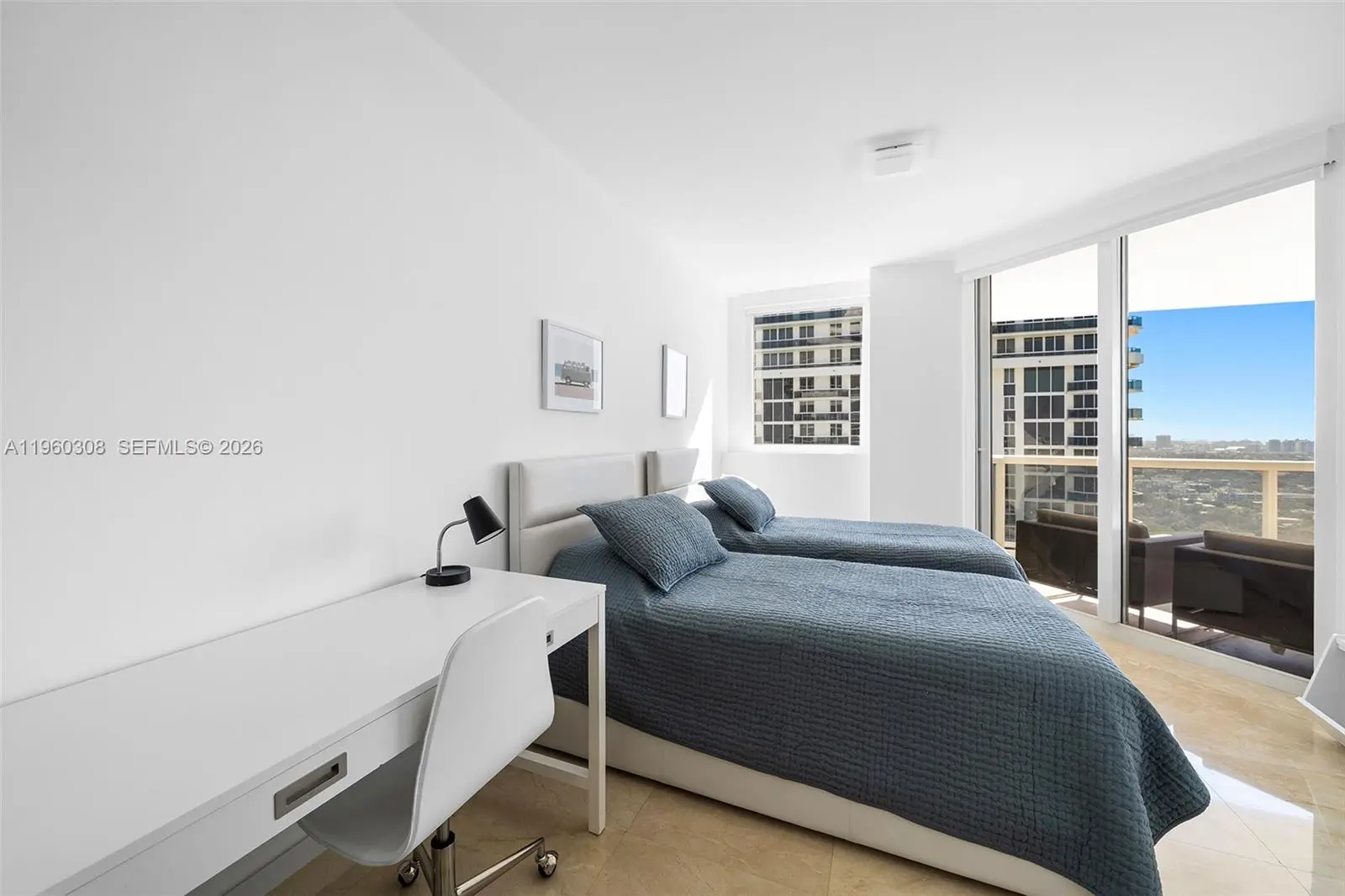 This residence boasts upgrades throughout and breathtaking ocean, bay, and city skyline views. This fully furnished 2-bedroom, 2-bath residence includes a den that can be used as a third bedroom. Floor-to-ceiling glass brings in abundant natural light and opens to a large terrace. The newly renovated kitchen is both beautiful and functional, open to a spacious living and dining area. The primary suite features balcony access, custom-made closets, and a large en suite bathroom with dual sinks, a jacuzzi, and a separate shower. Residents enjoy resort-style amenities including a three-story fitness center, pool, beach service, café, tennis courts, fitness classes, and more.