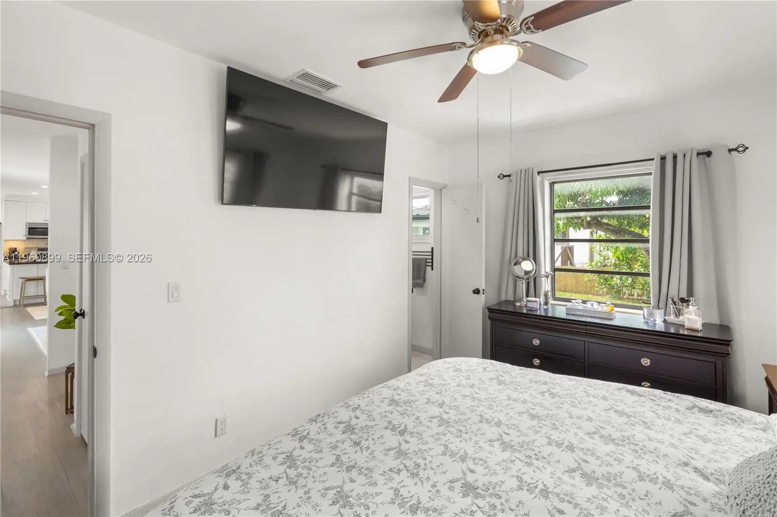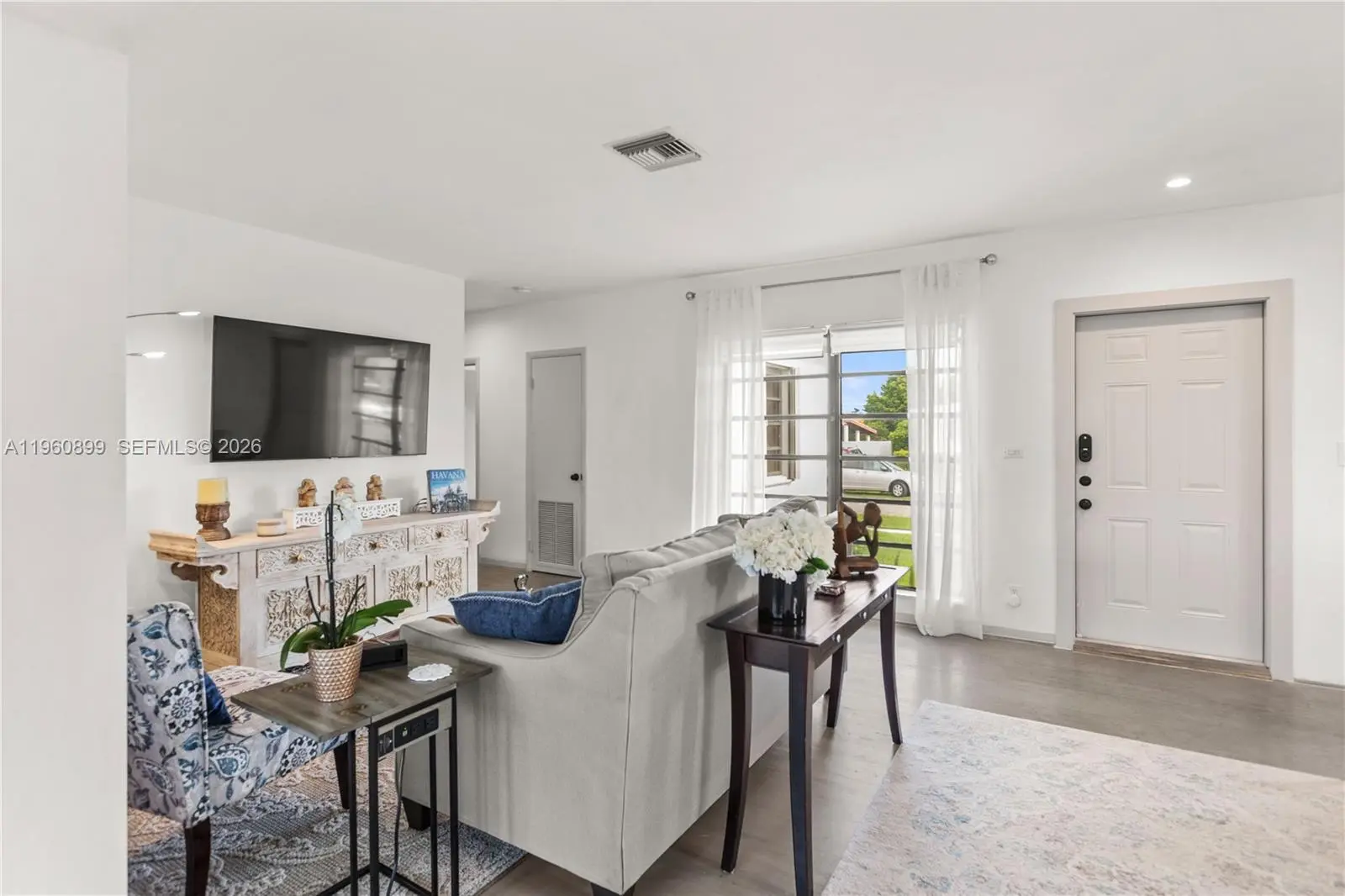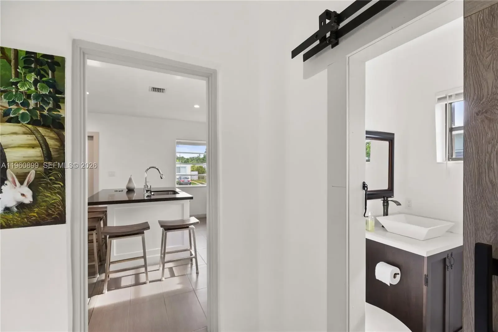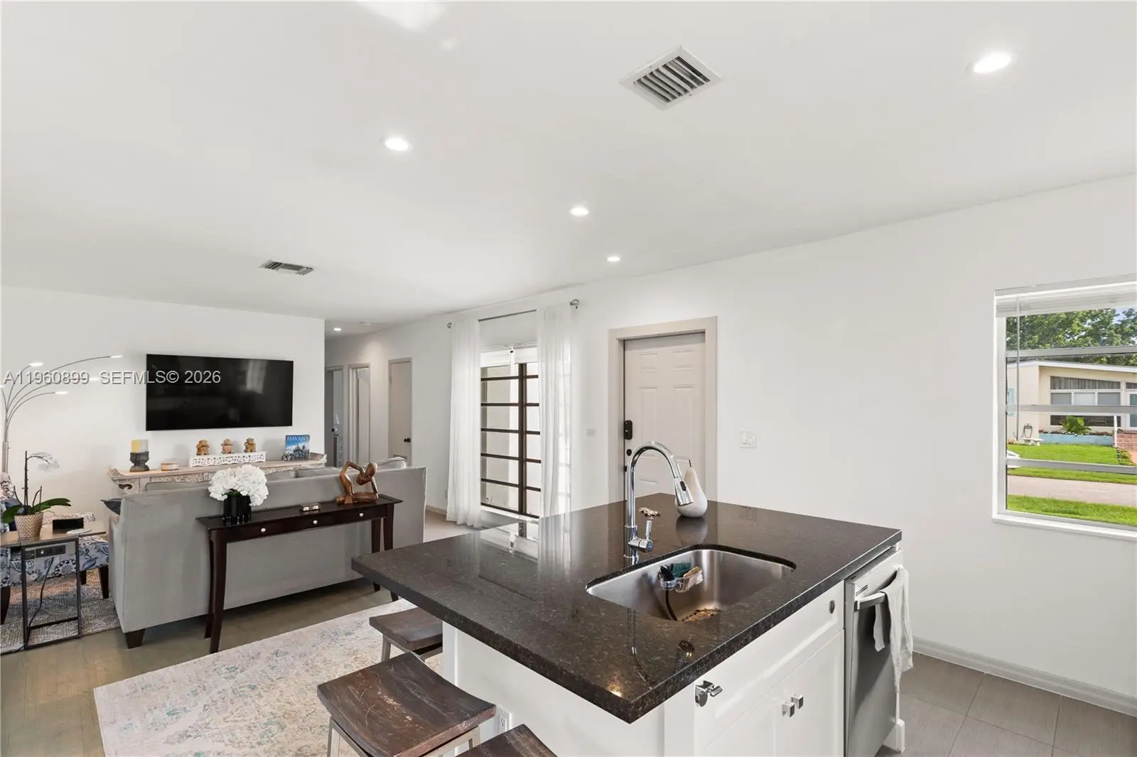 Fabulous fully remodeled 3/2.5 single family home in highly sought after school area. Walking distance from top public & private schools. Open floor plan, solid hardwood floors and ceramic tile. Kitchen features modern custom cabinets, Samsung stainless steel appliances, five burner gas stove, dishwasher & French door refrigerator. Kitchen island seats 5 and provides additional storage to the two built-in pantries. Behind the stylish double barn doors you will find the guest bathroom & laundry with full size washer, dryer and tankless water heater. Spacious fenced-in back yard is great for entertaining & for kids to play. Actual area is 1,417sqft & adjusted area is 1,329 sqft.