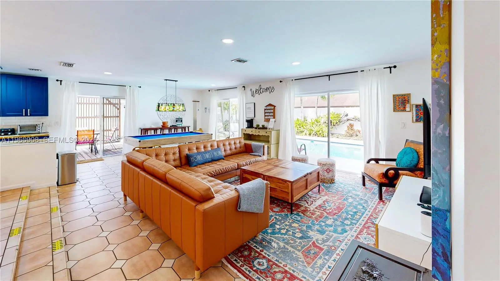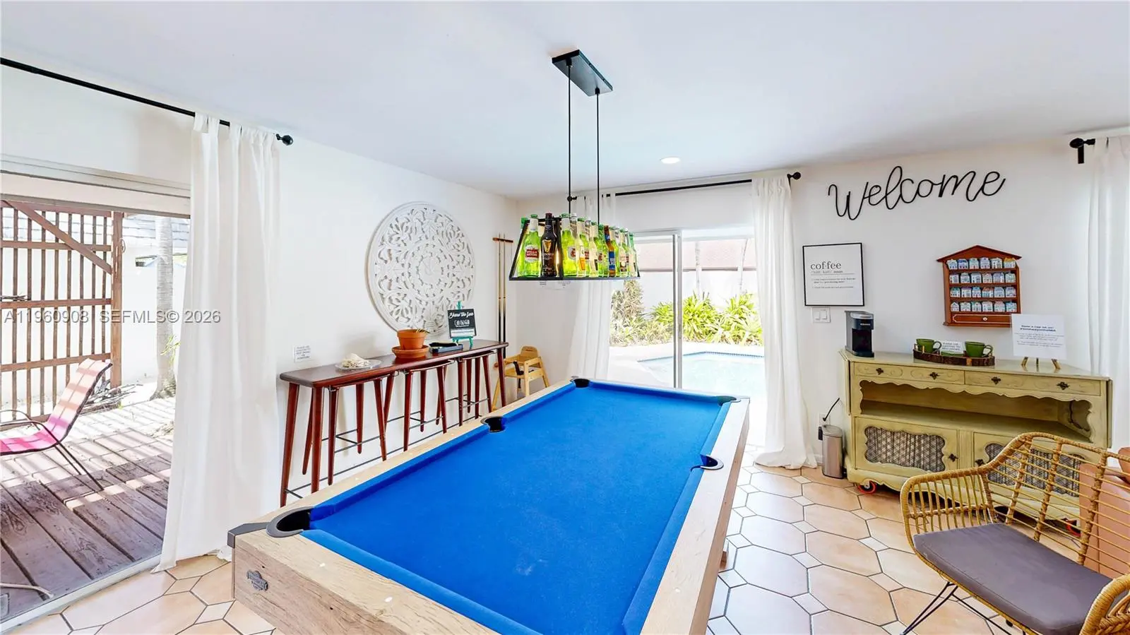 Welcome to this private corner-lot home in the heart of desirable West Kendall/Calusa, where comfortable living meets income-producing potential. This spacious 4-bedroom, 2-bath residence offers an open-concept layout ideal for everyday living and entertaining. All bedrooms feature direct exterior access, providing privacy and flexibility throughout the home. Enjoy a tranquil private courtyard and lush backyard oasis, fully enclosed by solid perimeter walls. Relax in the heated in-ground pool and separate jacuzzi, perfect for gatherings, weekend retreats, or hosting guests. The home includes a versatile fourth bedroom with its own private exterior entrance, ideal for guests, extended family, a home office, or potential studio/efficiency use. The layout supports multi-generational living, including possible in-law quarters with a separate entrance. A furnished turnkey option is available for buyers interested in continuing established short-term rental operations, with forward bookings and proven revenue history. Furniture is not included in the list price but may be purchased separately. With strong curb appeal, a prime corner-lot location, and mature landscaping, this property offers both lifestyle and investment value in one of West Kendall’s most sought-after neighborhoods.