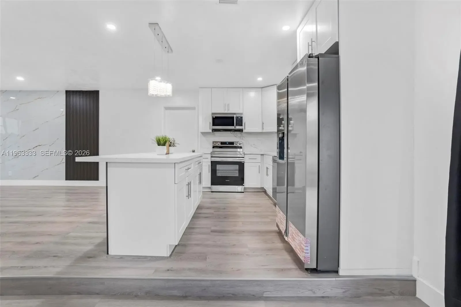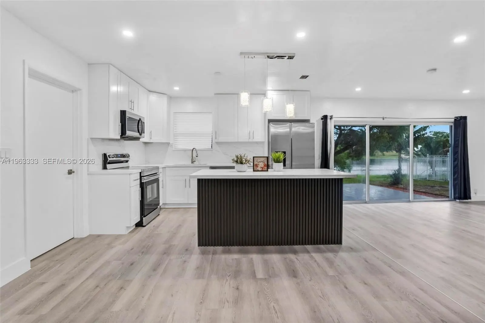 This completely remodeled 4-bedroom, 2-bath single family home is the turn-key retreat you’ve been searching for. With a brand-new roof, impact front door, updated plumbing and electrical, and remodeled bathrooms, no detail has been overlooked. The kitchen is a showstopper — featuring brand new appliances, custom wood cabinets, and stunning quartz countertops. Enjoy new luxury flooring throughout every room, including the beautifully converted garage offering a private fourth bedroom with separate entry — ideal for guests, in-laws, or rental income! Insurance discounts available thanks to storm protection features = LOWER MONTHLY PAYMENT. Unwind in your backyard as the sun sets over the tranquil lake — your private daily escape. This home checks every box and won’t last long. Schedule your private showing today and make it yours before someone else does!