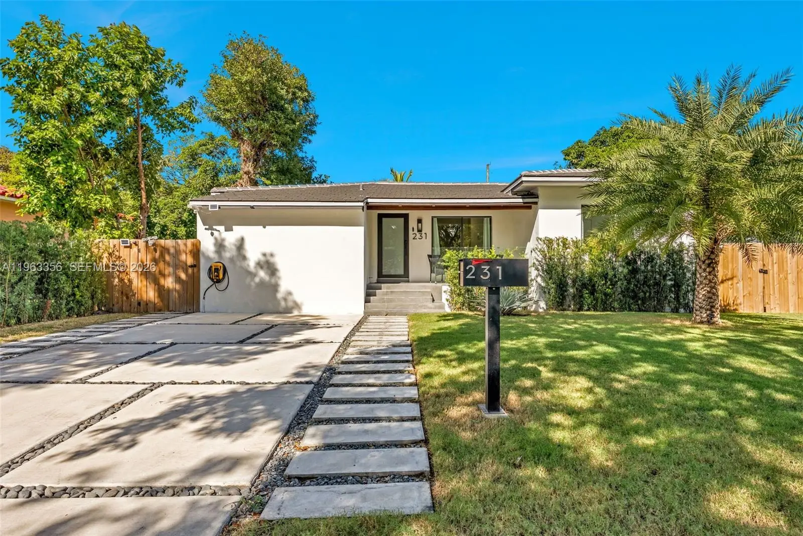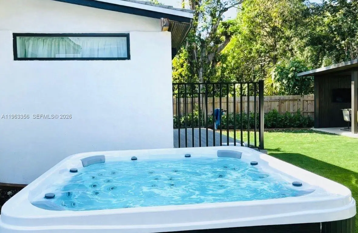 Located just two blocks from the Design District, this beautifully remodeled home sits on a spacious 7,475 sq.ft. lot. The exterior features lush Bermuda grass and podocarpus hedges for complete privacy. A modern driveway includes an electric vehicle charging station for added convenience. Inside, enjoy hurricane-impact windows and doors, a new barrel roof, new HVAC system, and a fully renovated kitchen with new cabinets, countertops, and appliances—plus a new washer and dryer. The fully fenced backyard is an entertainer’s dream, boasting a modern pergola with a built-in BBQ, refrigerator, sink and a BRAND NEW JACUZZI JUST INSTALLED. The yard is completely covered in high-quality turf, offering a versatile outdoor space perfect for gatherings and relaxation.