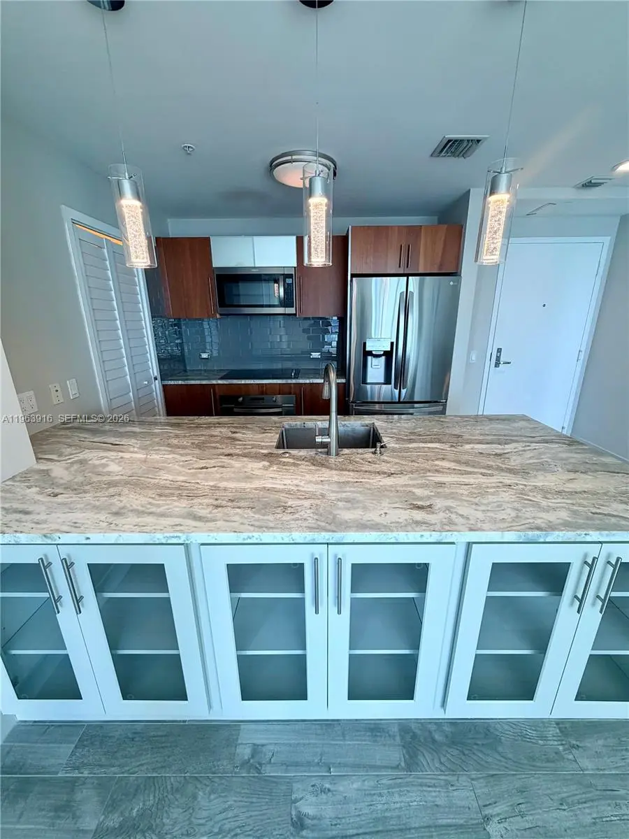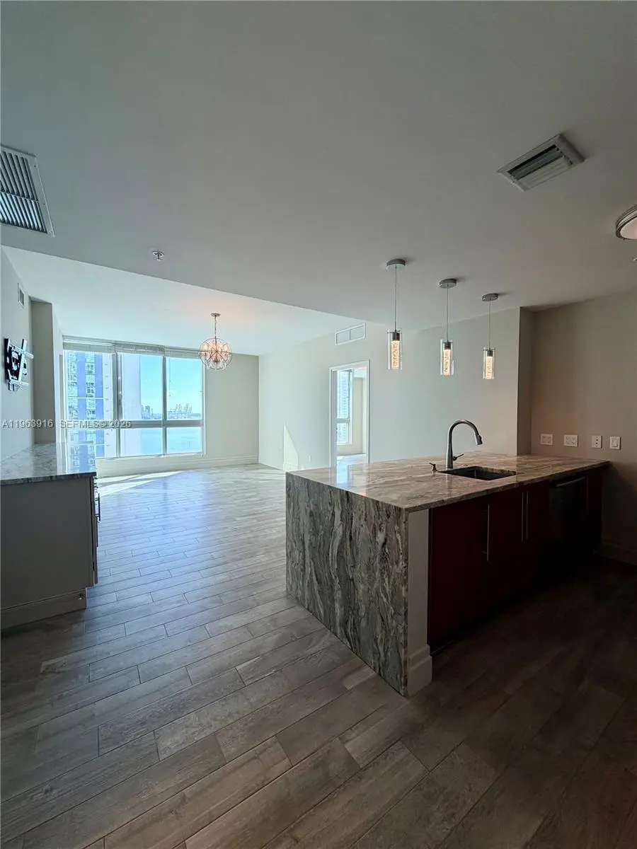 Enjoy stunning direct water views from the moment you enter and from every room in this beautifully renovated residence. This tastefully upgraded unit features Italian tile floors that look like wood, abundant storage, a spacious kitchen with island and high-end stone finishes, pantry closet, upgraded appliances, and a newer washer and dryer. Built-out closets and elegant glass accent shelving add both function and style. Impeccably maintained, freshly painted, and in pristine, move-in-ready condition. Ideally located in Downtown Miami just one block from Brickell, this building offers unbeatable walkability — one block to Whole Foods, Bayfront Park, and the free Metromover; four blocks to Bayside Marketplace; five blocks to Brickell City Centre; and countless dining, shopping, and entertainment options just steps away. Full-service building amenities include 24-hour security, gated garage with one assigned parking space, expansive fitness center, billiards room, business center, party room, sauna, and a resort-style pool currently being renovated and expected to reopen by late Spring. Rent includes one parking space, basic cable, internet, water, trash, and full access to all amenities. A rare opportunity to lease a high-quality, exceptionally maintained residence in an unbeatable location.