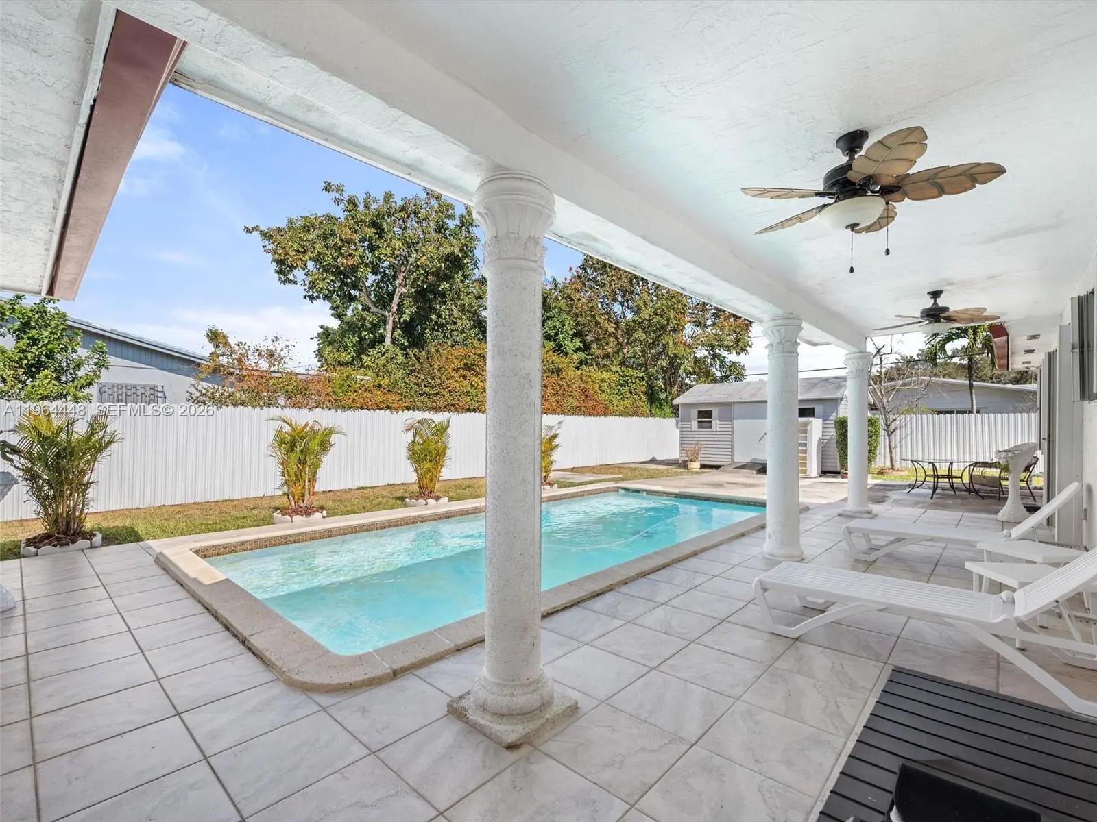 Beautiful and spacious pool home featuring all tile floors throughout for easy maintenance and a modern look. Bright interior with recessed high-hat lighting, spacious living areas, and plenty of natural light. Equipped with accordion shutters for added storm protection and an aluminum fence for privacy and security. Perfect for enjoying Florida living year-round!