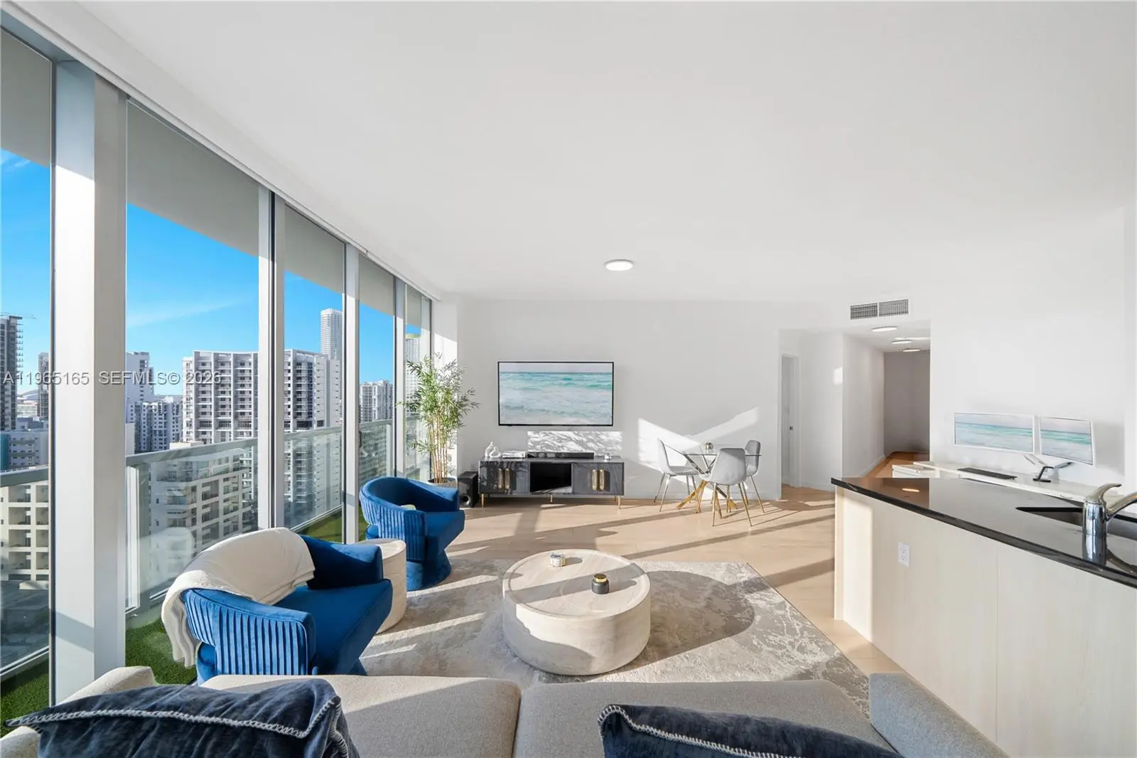 Experience gorgeous sunsets every evening from this prime corner residence at Axis Brickell. This 2 Bed / 2 Bath home offers 1,107 SqFt of bright, well designed living space with coveted Southwestern exposure that fills the interiors with natural light. The split floor plan provides ideal privacy, while the open living area flows onto a spacious wraparound terrace with sweeping city views and golden-hour skies. Enjoy updated appliances, indoor outdoor flow, and an unbeatable location in the heart of Brickell, just steps from top dining, shopping, and transit. Resort-style amenities include a pool, his-and-hers spas, fitness center, Pilates studio, billiard room and more. One assigned parking space included.