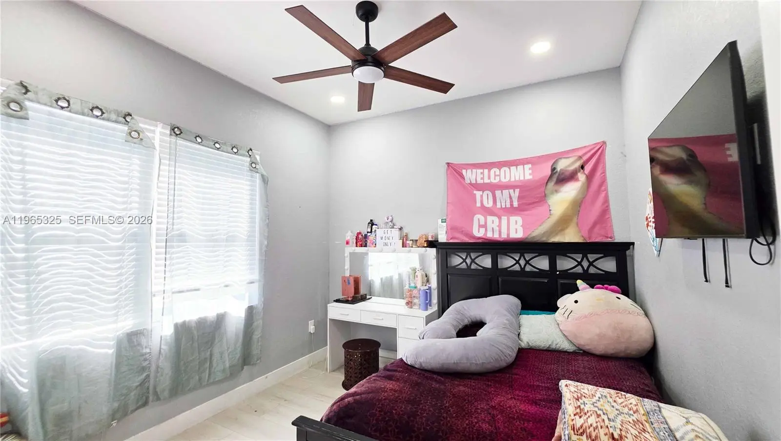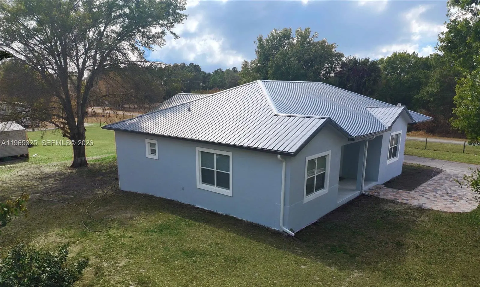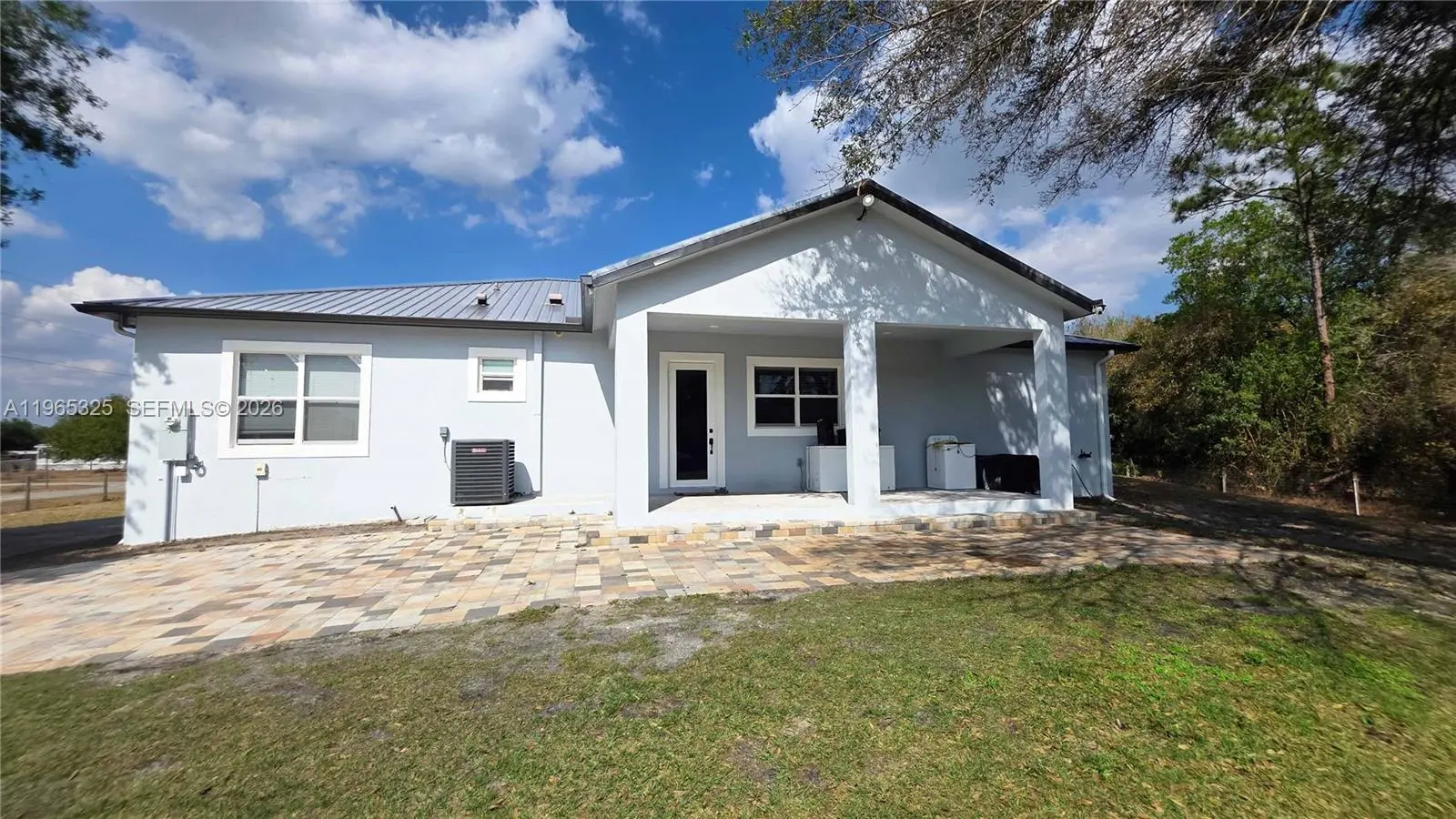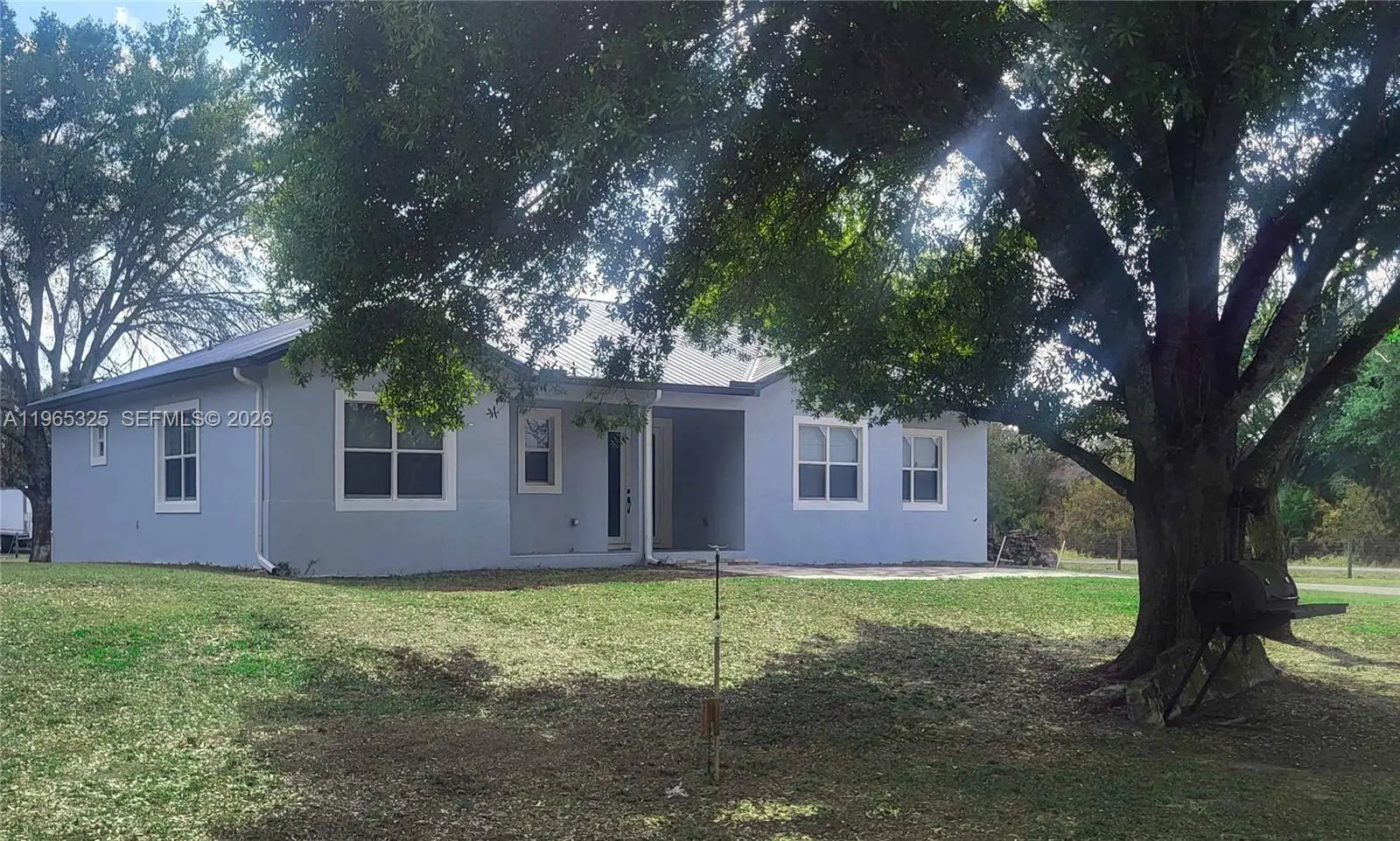 Discover this stunning 2024-built home in Montura Ranch Estate, Florida, featuring 2,142 sq. ft. of living space. This concrete home blends modern design with luxurious finishes and a functional layout. The living area is exceptionally spacious, perfect for family gatherings and entertaining, complemented by high ceilings that create an open, bright atmosphere. The home offers three bedrooms, two full bathrooms, and a versatile den that can also serve as a Florida room or additional workspace. The master bedroom measures 13x25 ft, with a spacious ensuite including a shower, soaking tub, and double vanity. The kitchen boasts wood cabinets and quartz countertops, along with high-end stainless steel appliances. Other highlights include a front porch, smoke detectors, a five-ton AC system, tile flooring, paved driveway, and an elegant gated entrance. All this sits on a private 1.25-acre lot, fully fenced and featuring fruit trees such as coconut, papaya, guava, and passion fruit, creating your own tropical oasis. With no HOA fees, this home offers comfort, privacy, and style in every corner.