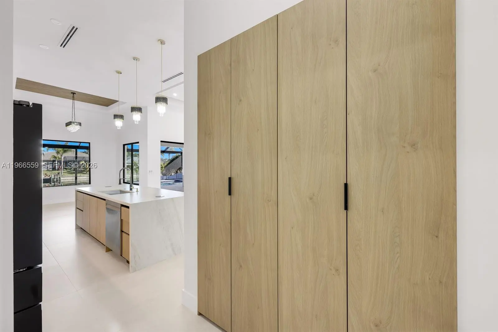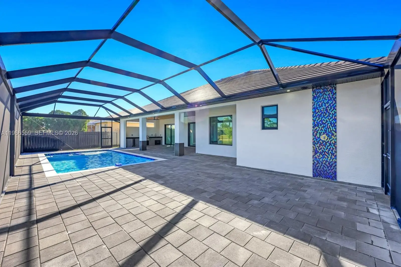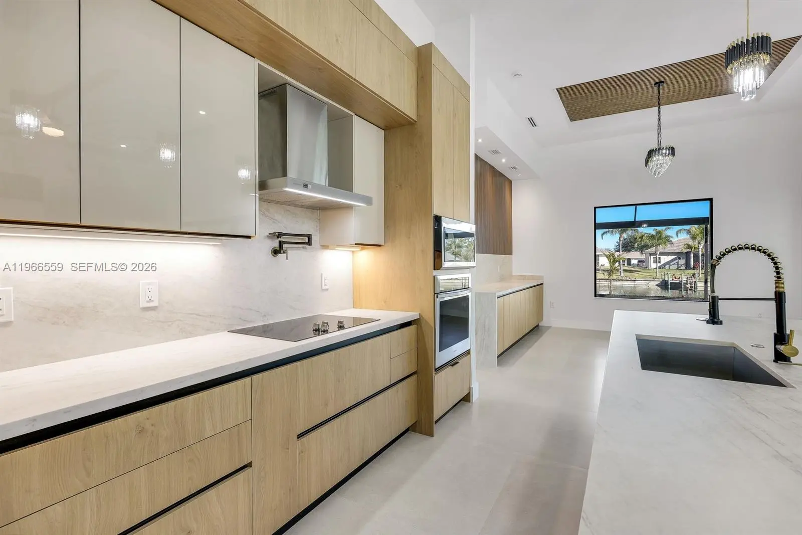 Welcome to this modern waterfront luxury home that features 4BED, 3BATH residence with a 3 car garage and over 2,200sqft of refined living space, ideally located in one of Cape Coral’s most desirable waterfront neighborhoods. Designed for comfort, efficiency, and style, the home features soaring 13 foot ceilings, 40x40 thick Spanish matte tile flooring throughout, and a durable tile roof, all complemented by abundant natural light and expansive water views of a 125-foot-wide canal with seawall and concrete built in sitting area overlooking waterfront views perfect for entertaining and bbqs. The open concept layout centers around a chef’s kitchen equipped with Samsung’s newest suite of smart appliances, built-in microwave/oven combo, and Wi-Fi connectivity, home prewired ready to install security cameras. Outdoor living shines on the expansive lanai with a fully equipped Florida kitchen and dual grill setups overlooking a private 15x30 heated saltwater pool, perfect for year round enjoyment. Seamless elegant inspired bathrooms features smart toilets, a fully automated sprinkler system, and an EcoSmart tankless water heater. All city water and sewer assessments are paid in full, adding significant value, and the home’s prime location offers peaceful waterfront living just minutes from shopping, dining, and everyday conveniences making this thoughtfully designed property ideal as a full time residence or luxury vacation retreat.