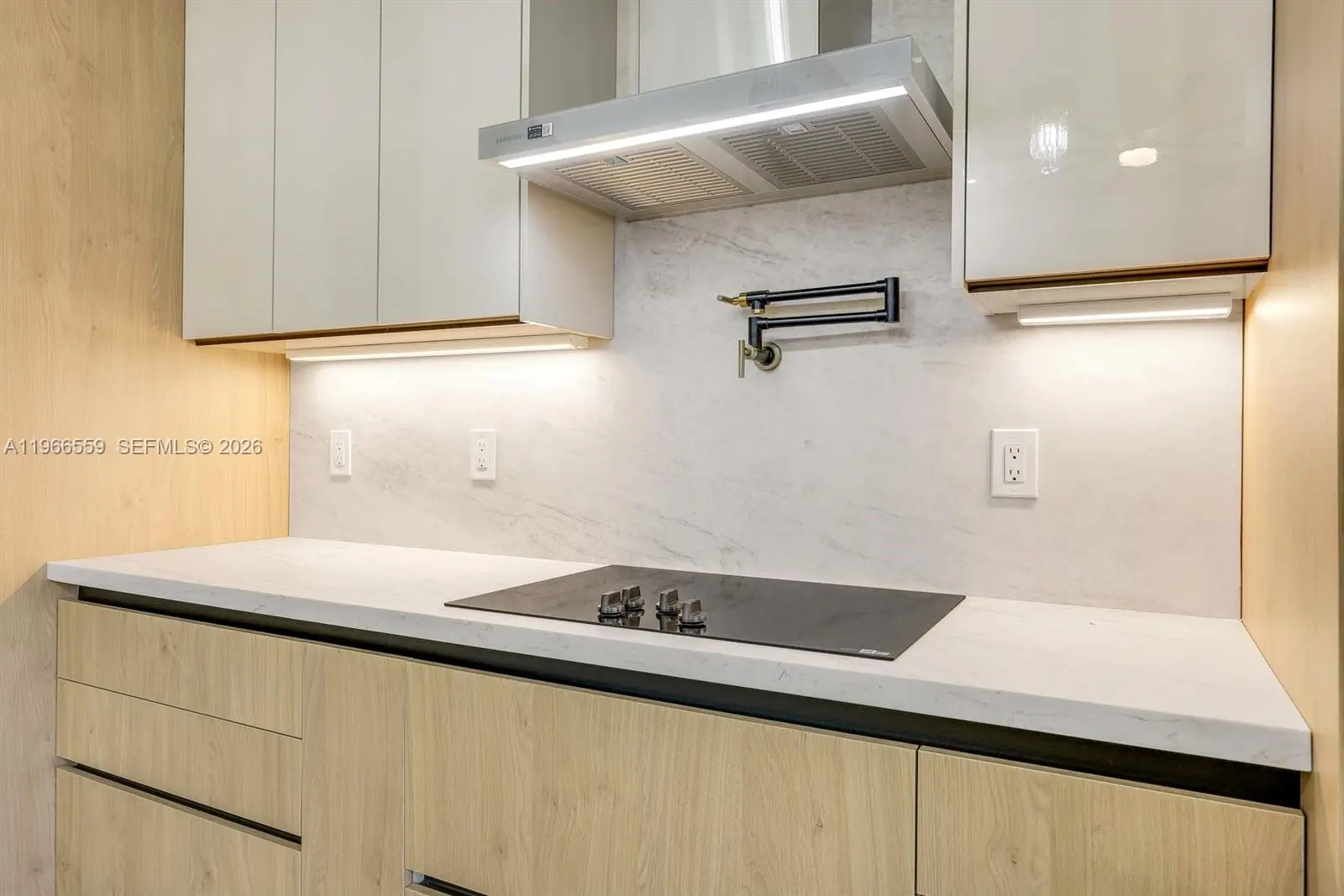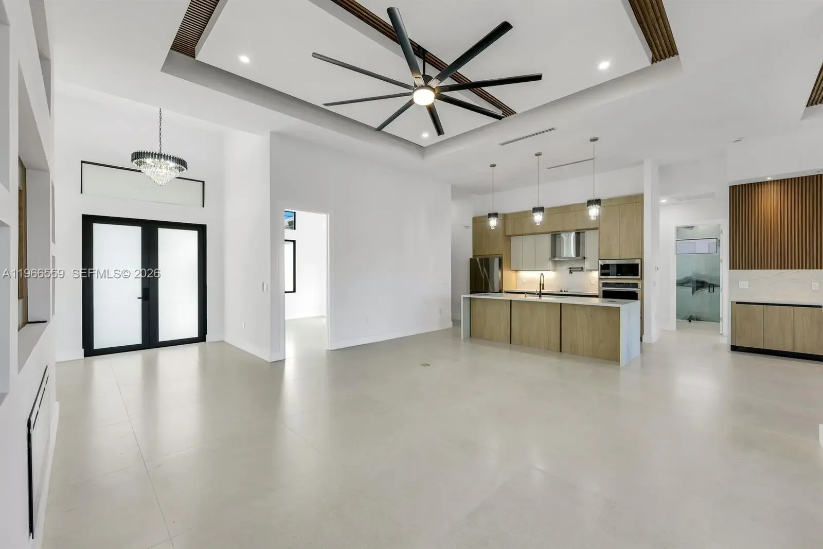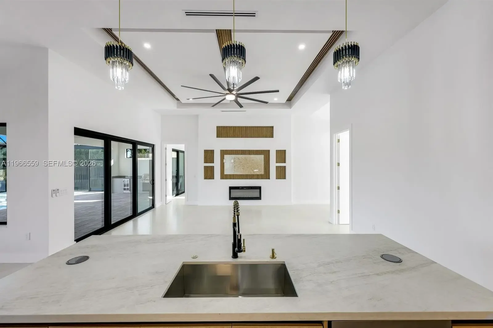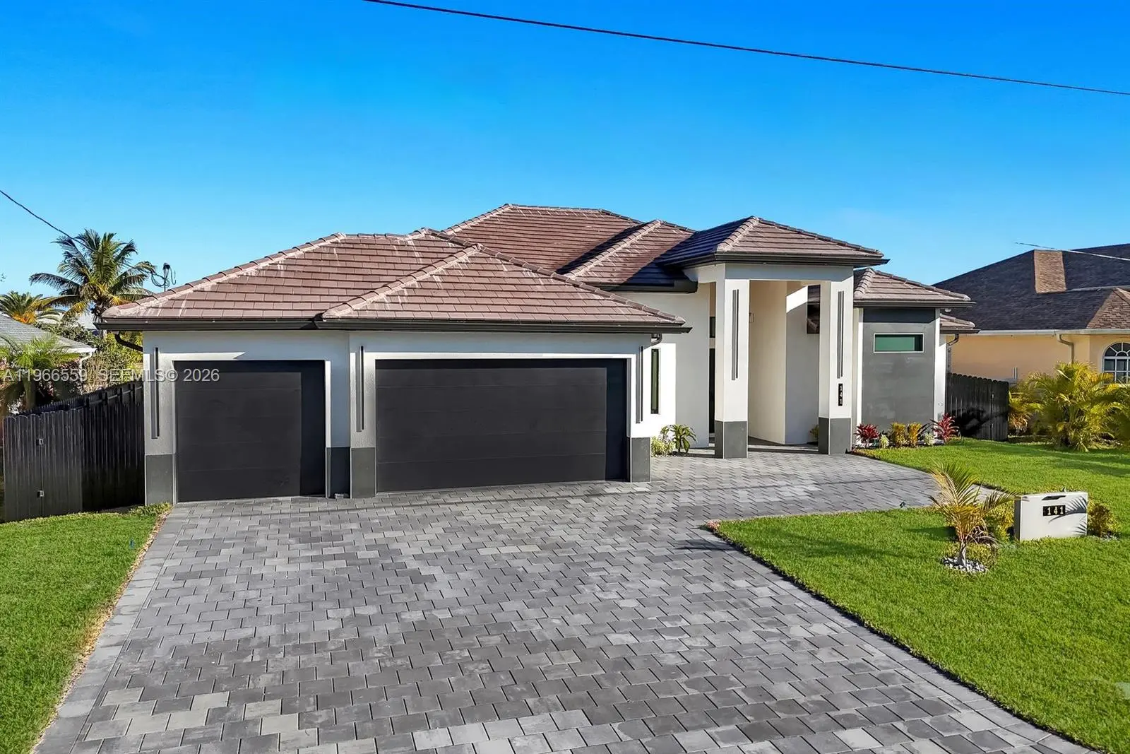 Welcome to this modern waterfront luxury home that features 4BED, 3BATH residence with a 3 car garage and over 2,200sqft of refined living space, ideally located in one of Cape Coral’s most desirable waterfront neighborhoods. Designed for comfort, efficiency, and style, the home features soaring 13 foot ceilings, 40x40 thick Spanish matte tile flooring throughout, and a durable tile roof, all complemented by abundant natural light and expansive water views of a 125-foot-wide canal with seawall and concrete built in sitting area overlooking waterfront views perfect for entertaining and bbqs. The open concept layout centers around a chef’s kitchen equipped with Samsung’s newest suite of smart appliances, built-in microwave/oven combo, and Wi-Fi connectivity, home prewired ready to install security cameras. Outdoor living shines on the expansive lanai with a fully equipped Florida kitchen and dual grill setups overlooking a private 15x30 heated saltwater pool, perfect for year round enjoyment. Seamless elegant inspired bathrooms features smart toilets, a fully automated sprinkler system, and an EcoSmart tankless water heater. All city water and sewer assessments are paid in full, adding significant value, and the home’s prime location offers peaceful waterfront living just minutes from shopping, dining, and everyday conveniences making this thoughtfully designed property ideal as a full time residence or luxury vacation retreat.
