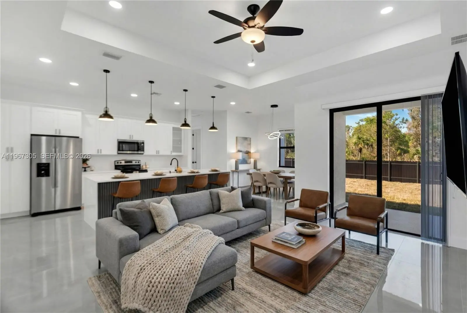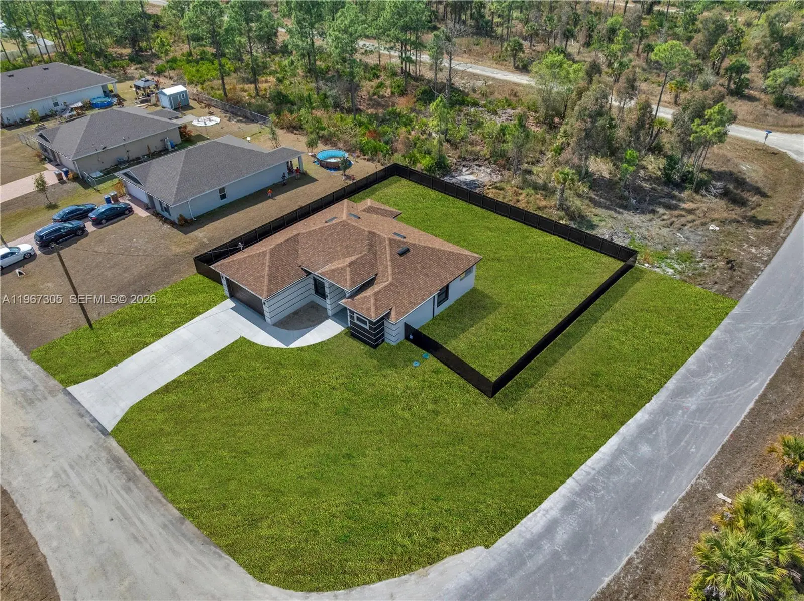 Situated in a prime, tranquil neighborhood, this impressive 4-bedroom, 2-bath home delivers comfort, privacy, and a modern aesthetic you deserve. The kitchen's sleek design is optimized for both everyday use and entertaining, making it a standout feature that enhances your lifestyle. The primary suite is a standout element of this home, featuring his-and-hers walk-in closets and a dual-head shower—designed for those who value both style and functionality. You will appreciate the spacious screened lanai, already set up for an outdoor kitchen, which is perfect for both relaxation and hosting gatherings with friends and family. Located on a desirable 0.30-acre corner lot, the fully fenced backyard offers ample space and privacy. At the same time, the convenient side gate access is ideal for your work equipment, truck, boat, or trailer.