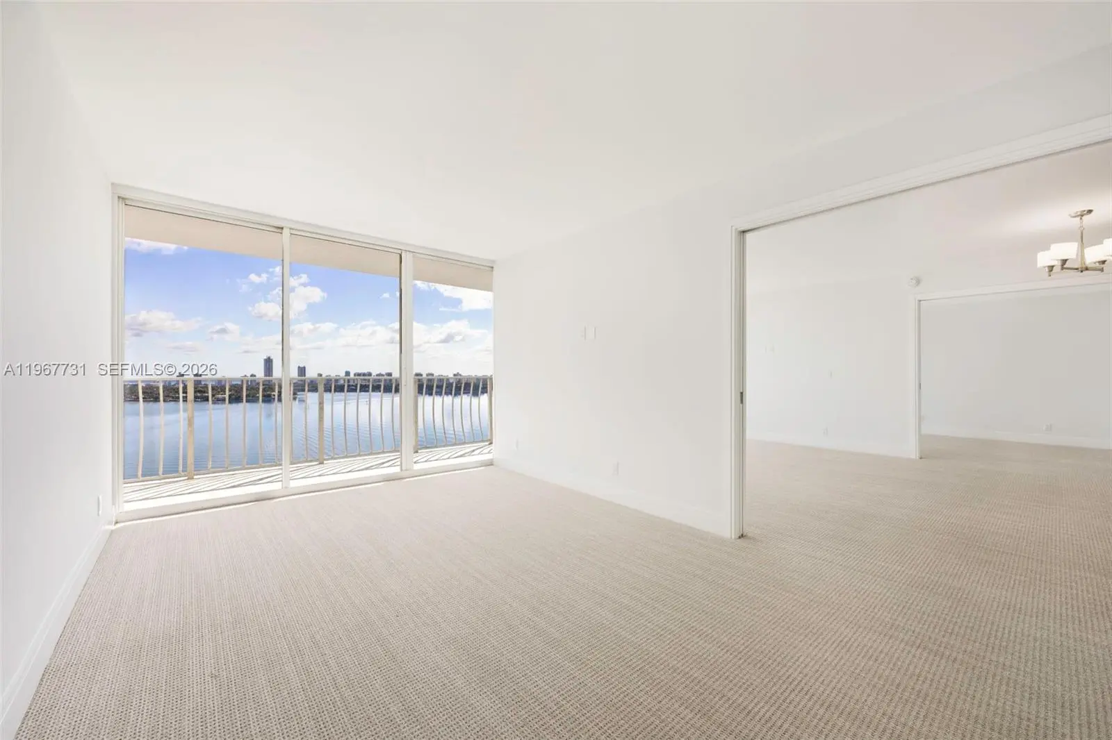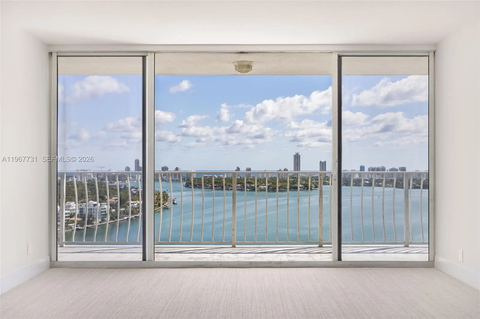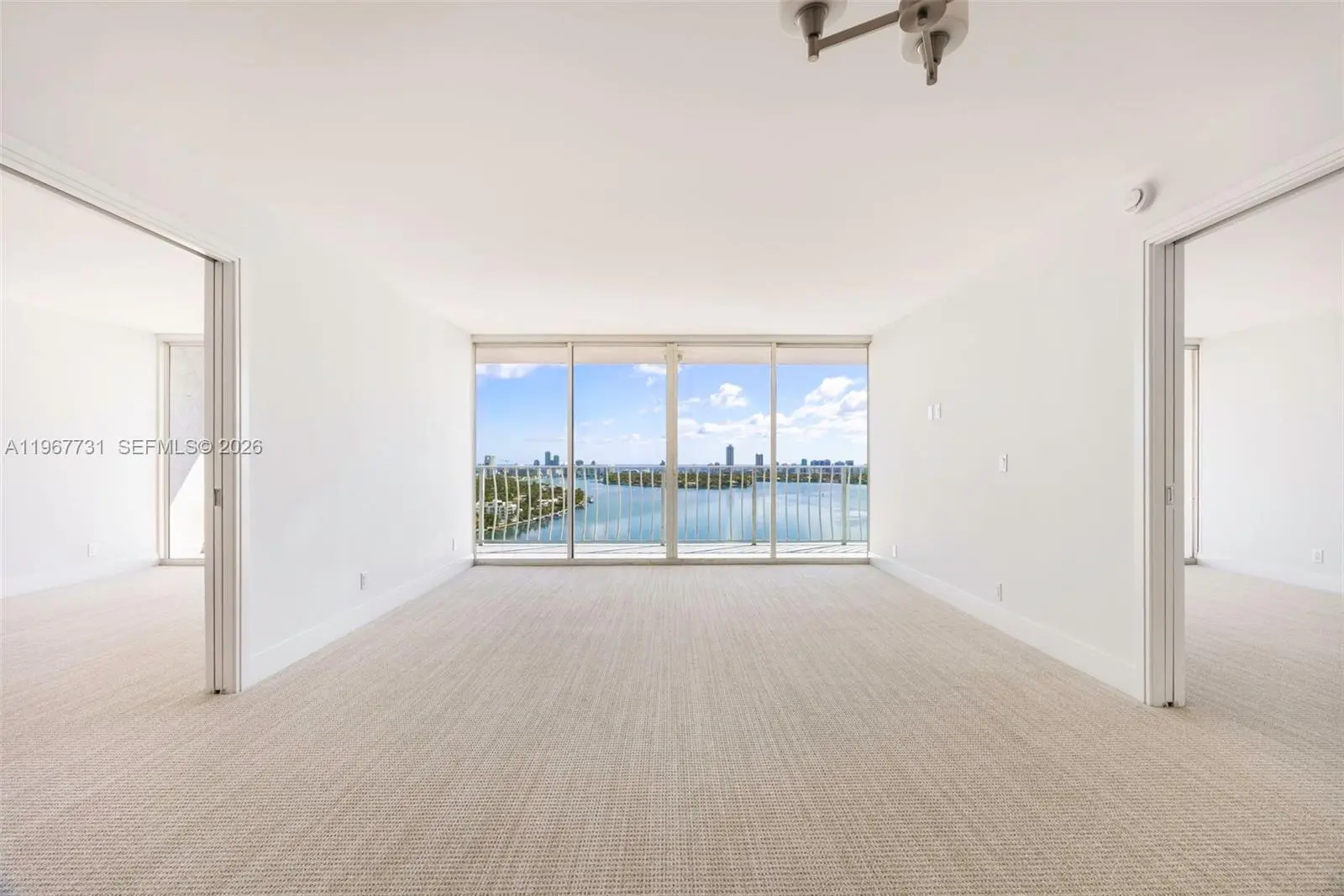 The most desirable line in the building. Enjoy unobstructed Biscayne Bay views from every room in this beautifully updated 23rd-floor residence at Grandview Palace. This line captures sweeping water vistas and exceptional natural light. Expansive living areas open through solid wood pocket doors to a full-length balcony, creating seamless indoor-outdoor living. Split floor plan offers privacy and functionality. This turnkey 2BR/2BA features high-end finishes throughout, including new flooring, updated bathrooms, and a sleek kitchen with granite countertops and stainless steel appliances. Tankless water heater, in-unit washer/dryer, and 2 assigned parking spaces. Resort-style amenities: Olympic-size pool, Jacuzzi, marina, 24-hour security, dining, retail, and salon. Prime North Bay Village location.