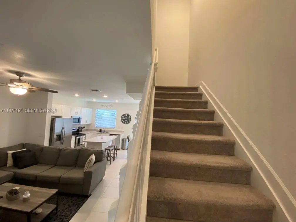 A home configured to give you options. Home has 2 master suites upstairs and bedroom and full bath downstairs. Good for MULTI-GENERATION use, buy with a FRIEND OR ROOMMATE or for YOURSELF. Extras You’ll Love: A washer and dryer are included, smart home wired, 2 assigned parking spots right in front of the unit, gated community with a clubhouse, fitness, pool and kid-friendly play areas and 2 huge shopping centers down the street. The first floor features a fully tiled space with an open layout, combining the family room, dining area, and kitchen with stainless steel appliances.