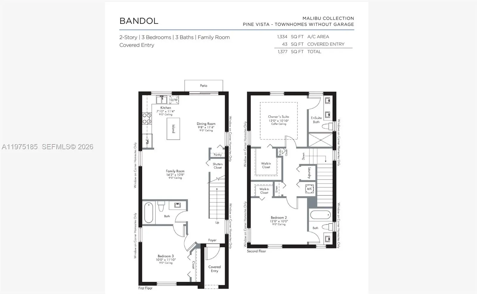 - 3 Bed, 3 Bath, 1,328 SqFt