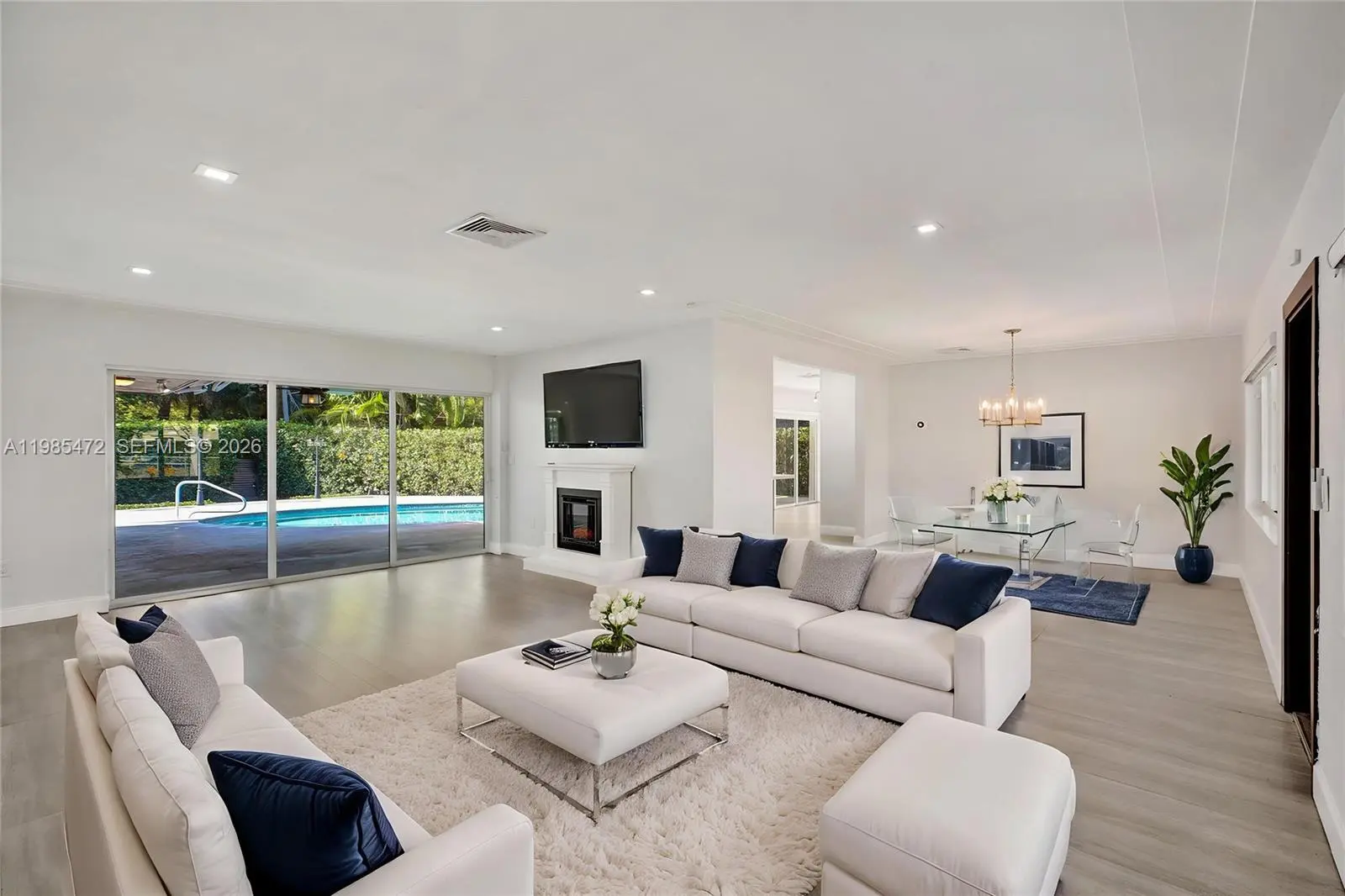A truly rare offering in one of the most coveted pockets of North Miami Shores—this exceptional residence has been tightly held for over three decades & is now available for the most discerning buyer! Thoughtfully reimagined with a refined eye for design and livability, the home spans over 3,200 total SFT, offering four bedrooms and three impeccably appointed bathrooms. A seamless, open-concept layout anchors the residence, centered around an Italian-inspired chef’s kitchen featuring bespoke cabinetry, a generous island, pristine white quartz surfaces, top-tier appliances, and a gas range. Overlooking the living spaces, a resort-style Diamond Brite pool is framed by lush, mature landscaping, creating a private sanctuary / Zen-like ambiance. A covered patio and gazebo set the stage for sophisticated gatherings. A split-bedroom floor plan with soaring ceilings and recessed lighting elevate the home’s airy, modern aesthetic. Extensive capital improvements—exceeding $250,000—offer peace of mind and effortless ownership, including a newer roof (2015), plumbing (2018), electrical panel (2017), central A/C (2019), & pool with equipment (2022). Additional mini-split systems (2025) provide tailored climate control throughout. The property is further enhanced by full impact windows & doors, a spacious circular driveway, & a one-car garage or possible fifth bedroom, private office, or studio. For those who expect nothing but the exceptional, this is a once-in-a-generation opportunity.