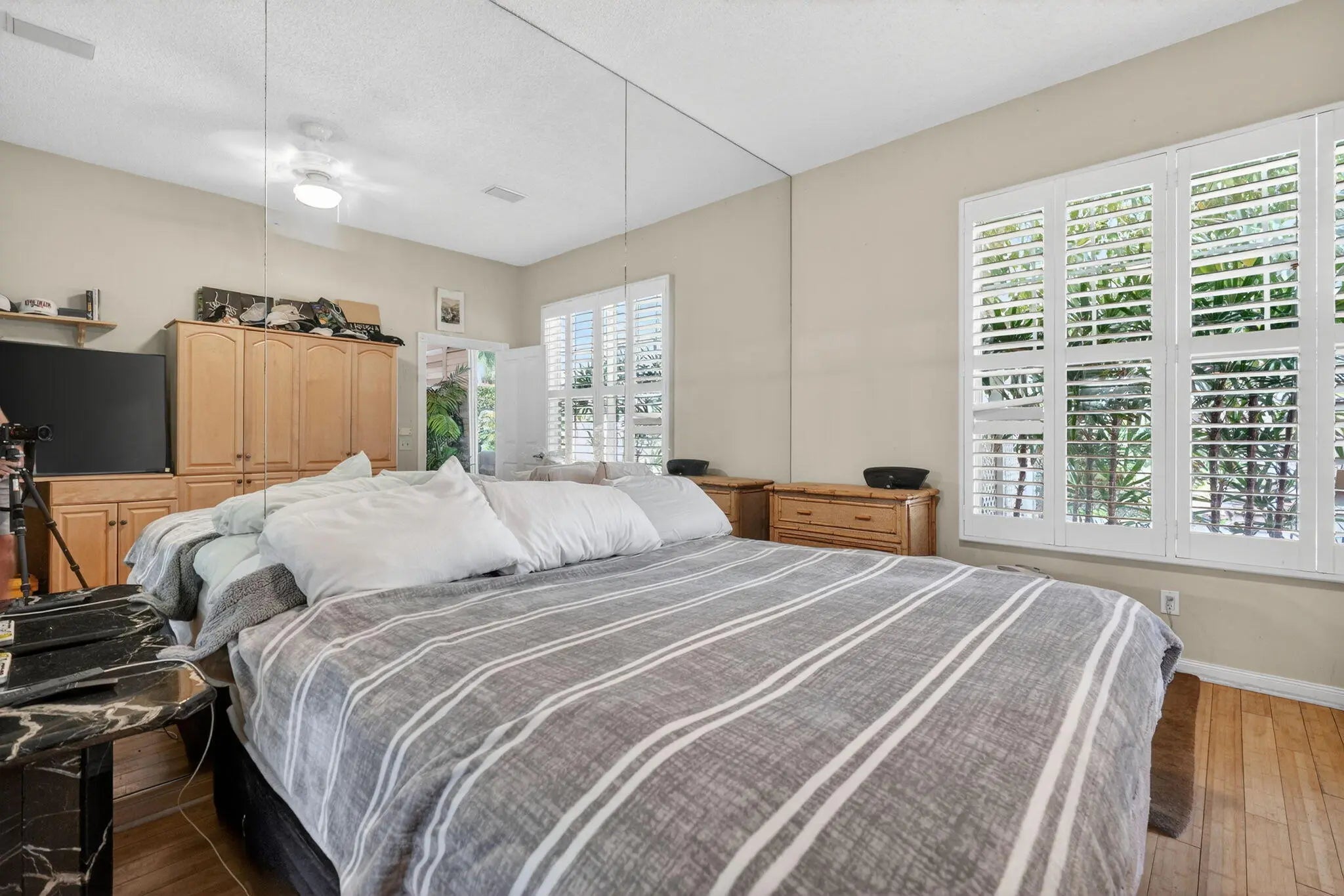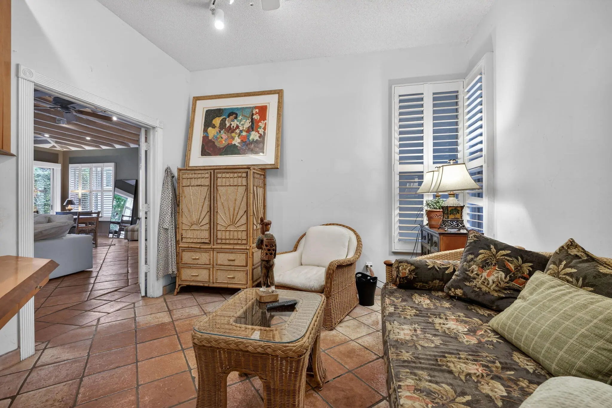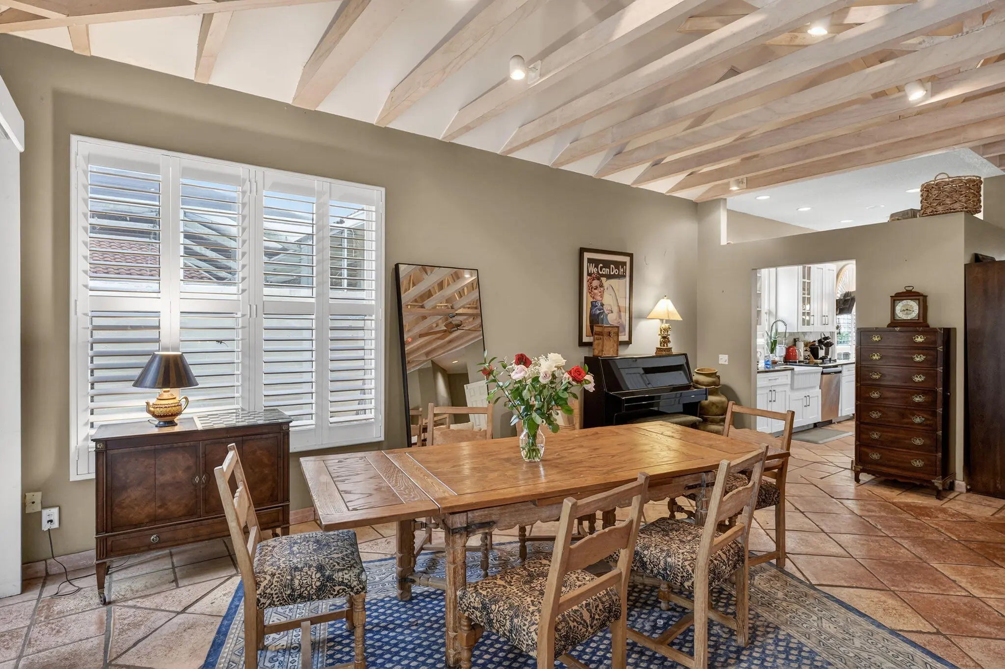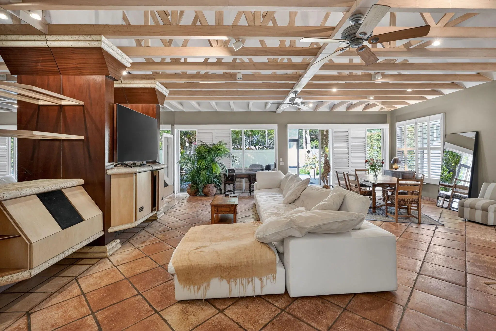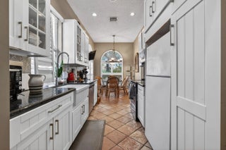 Welcome to the heart of Palm Beach Gardens! This one-of-a-kind home is located in a prestigious manned gated community known for its majestic oak-lined streets, lush landscaping, and peaceful atmosphere. The standout feature is the stunning main living area with dramatic soaring ceilings. The beams and trusses are wrapped in a light wood finish, creating a warm architectural look while concealing ductwork for a clean, elegant design. The ceiling rises all the way to the roofline, giving the space a bright, open feel. The home also features a newer roof and AC and private pool with new pump and filter. Residents enjoy resort-style amenities located just minutes from world-class dining, golf and TGL SOFI stadium, shopping, marinas, and beaches!